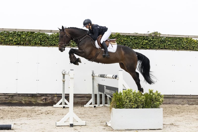 Seems like a nice amateur horse with good willingness and a calm character. Is only recently under saddle. Jumps with a good way and moves nicely. Suitable for multiple disciplines. Sire Clarimo Junior – 1.40m level. Modern son of Clarimo (1.60m) with attitude and technique. Dam Charming Star – 1.30m level. Damline Granddam Superstar. From this line come: G-Star – 1.45m Big Star – 1.50m Further in the line: Baronescha – 1.60m, Castello – 1.45m, Exploir – 1.40m and multiple horses at 1.30m level. Approved stallion: Verdi TN – 1.70m.