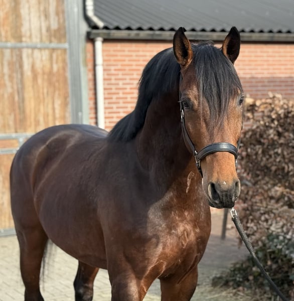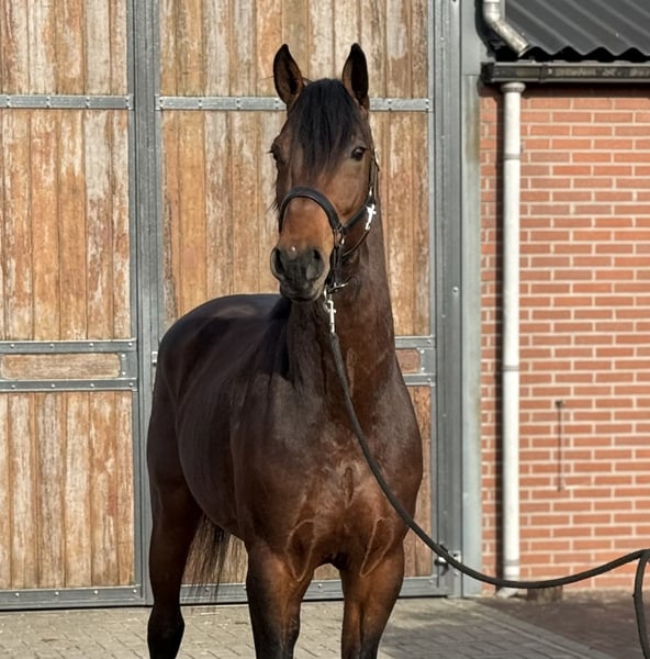 Mister Brown si distingue immediatamente per il suo bel tipo e il suo aspetto robusto. Questo giovane è stato castrato da circa tre settimane, da qui la sua espressione da stallone forte. Ciò che colpisce è il suo talento nel salto. Salta esplosivamente da terra, è prudente e ha una buona tecnica. Ha anche l’attitudine giusta: per natura cerca la barriera e mostra entusiasmo verso il salto. La sua linea materna ha già prodotto diversi cavalli da salto di successo a livello internazionale. Ad esempio, sua nonna Zaffira di Arezzo (s. Zandor Z) è la sorella piena di Zarco di Arezzo, che salta a livello internazionale fino a 150 cm. Zaffira ha inoltre prodotto il stallone approvato Don di Arezzo Z (s. Dominator), che compete a livello internazionale fino a 1,50 m. Questa linea materna ha anche dato origine al stallone approvato Quinten, che ha gareggiato a livello di 1,60 m. Per interesse, si prega di chiamare o scrivere su WhatsApp: +39 643197337
