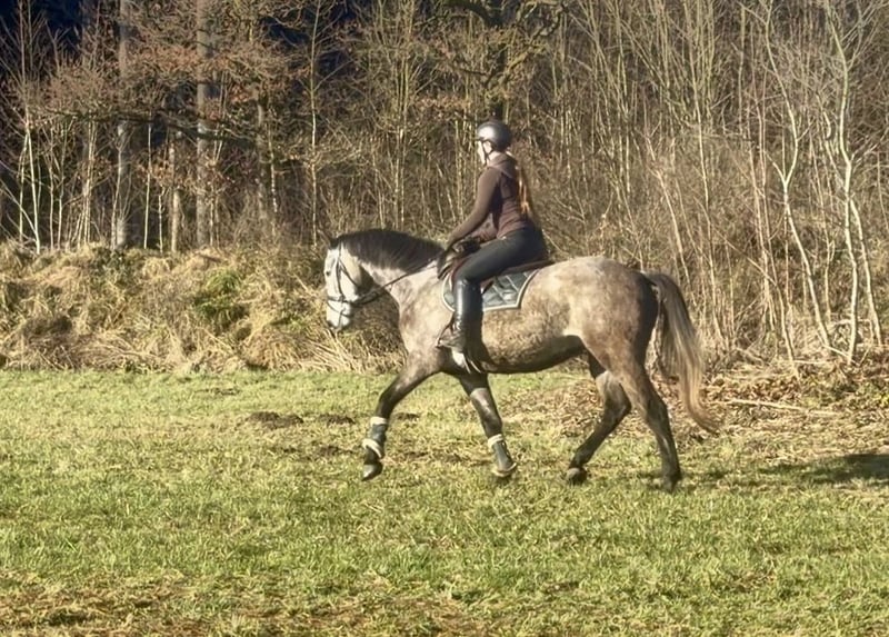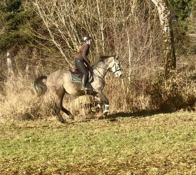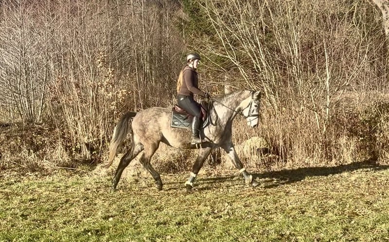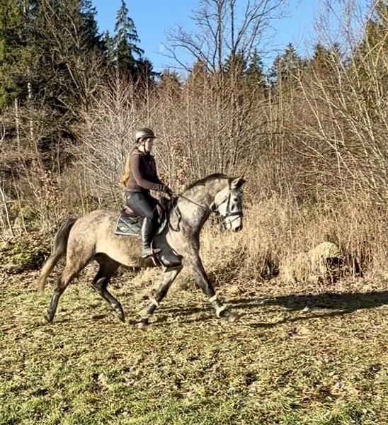 Fredi is a handsome 2021-born gelding registered with the Anglo European Studbook. Currently, he is a grey approximately 16.0 hands tall. This young horse has been lightly backed and is now looking for a rider who can further challenge and develop him. Fredi is very well-behaved both in-hand and when socializing with other horses. He is in excellent health and has never been shod. For more information, please contact me via WhatsApp or by phone at: +43 660 3632373. Location: Pelmberg 15 / Upper Austria Viewing and test riding are available by appointment. Transport of the horse can be arranged if needed.