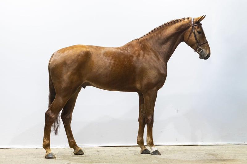 Two months under saddle and still clearly developing. He requires further training and is not yet suitable for amateur riders. What immediately stands out is his beautiful jumping style. Large-framed, each jump appears the same: correct, balanced, and with good technique. He remains light-footed for such a large horse. A modern El Barone with presence, scope, and quality, who, with proper education, can develop into a very promising sport horse. His sire, El Barone 111 Z (1.60 m), is by Emerald van ’t Ruytershof (1.60 m) out of a Libero H damline. El Barone has achieved top placings at 1.55 m–1.60 m levels in Valkenswaard, Oslo, and Stockholm. Among his offspring are already Entertainer Z (1.60 m), Ransome 111 (1.50 m), and Eyeball vd Moervelde Z (1.40 m). Proven Grand Prix scope is firmly established within this sire line. RONALDO VE Blacktype Pedigree Dam Gentle (by Al Capone, 1.60 m) produced Magnum VE (by Harley VDL), who competes at 1.45 m level with international placings. Second dam Minea (by Iroko, 1.60 m) produced several horses at 1.30 m–1.35 m, including Aminea, Ecapone, and Eminea. Third dam Cinea (by Nimmerdor) descends from a strong performance family. From this line come: Daddycool GO (1.60 m, CSI3*) Godfather GO (1.55 m, CSI2*) Rubynea (1.60 m, approved SF stallion) Ness G Ninea (1.60 m) Ziestro GO (1.40 m, approved AES) Crescendo-GO (1.45 m, approved AES) Numerous performers at 1.35 m–1.50 m levels and several approved stallions. A damline consistently producing horses at 1.45 m–1.60 m levels, with proven scope, resilience, and performance genetics.