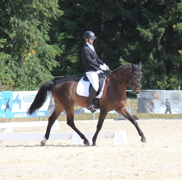 Aufgrund gesundheitlicher Probleme muss ich meinen 2016 geborenen Wallach, Sweet Sensation, verkaufen. Der 168cm große Wallach besticht besonders durch seine tollen GGA und seine Menschen bezogene Art. Bis LM ausgebildet, wurde er bereits bis zur Klasse L auf Turnieren vorgestellt. Aufgrund seiner intelligenten Art fällt es ihm sehr leicht unter einem geschickten und konsequenten Reiter neue Lektionen zu lernen und diese sofort umzusetzen. Sensi liebt es außerdem alleine oder in der Gruppe ausreiten zu gehen. Hier geht er immer mutig voran. Minimaler Befund in der HWS. Da er kein Freund von Pollen sowie Heustaub ist, bekommt er aktuell bedampftes Heu. Dies beeinträchtigt ihn im täglichen Training jedoch nicht. Unbedampftes Heu hat er in jüngerer Vergangenheit auch sehr gut vertragen. Bei Interesse oder Fragen einfach melden unter +43 664 9271045.