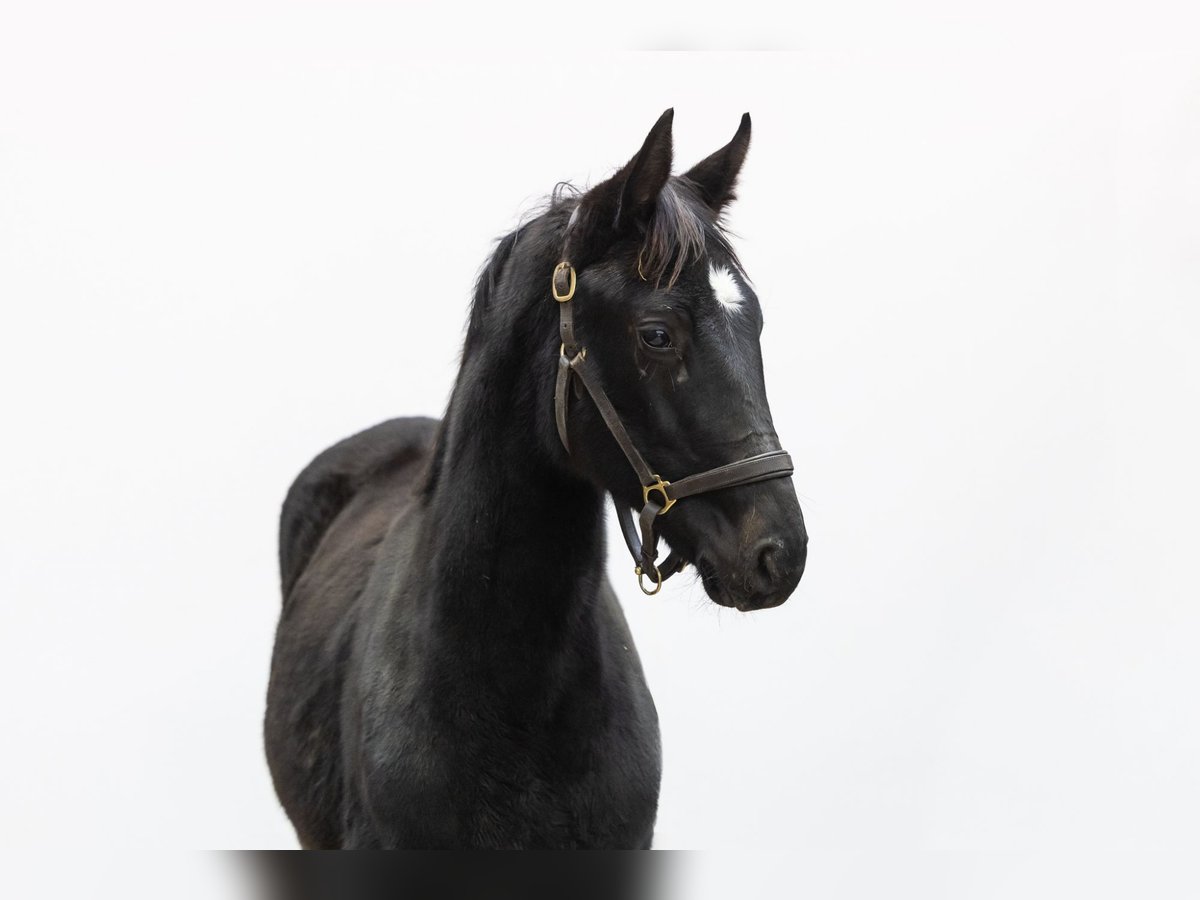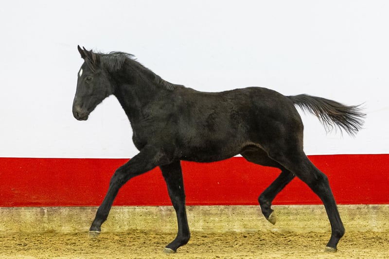 Dartien will turn one next year, but already is a horse to fall in love with. He is black, has a very attractive model and is long-lined and correctly built. He is very light-footed, well put together and shows a nice uphill frame, which later gives a confident feeling when riding with good front. In movement he shows a good trot and a well-carrying canter with plenty of balance. Over the jump he shows good technique and appears very easy with his scope. A very complete yearling, exactly the type we like to see. Sire Dorian Grey TN Z, by Dominator 2000 Z, competes at 1.40 m level and has international results in Vejer de la Frontera and Bonheiden. Dominator 2000 Z himself competed at 1.70 m Grand Prix level and is known for passing on scope, mentality and size, qualities clearly visible in Dartien. The damline is built for sport. Dam Sofia Cartien is by Stolzenberg, who himself competed at 1.45 m level and is known for producing rideable sport horses. Further down the damline, several horses performed above 1.30 m level, including Delisa at 1.45 m and Shmookh at 1.40 m. This family has produced sport horses over several generations, confirming the reliability of the line Dartien combines youthful presence, correct conformation, good movement and natural jumping technique with a sport-oriented pedigree, making him a very interesting young prospect for the future.