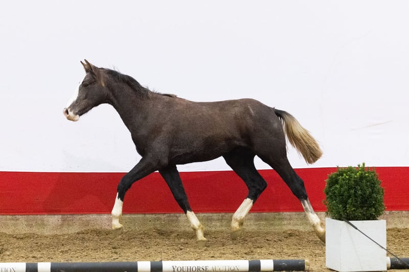 Wat een prachtige jaarling is dit met zijn vier witte voeten, blonde staart en mooie manier van springen. Wie legt Tallan vast voor de toekomst? Vader is Telstar JM TN (Ermitage Kalone), een zesjarige hengst die afkomstig is uit de stam van Jus de Pomme en O’Bailey van het Brouwershof. Moeder De Nacht Wacht (Vaillant) is een KWPN-elitemerrie en halfzus van de 1.60m Grand Prix-hengst Rocky W, gerede door Kaitlin Campbell (USA), en een 1.40m springpaard. Grootmoeder Mona Liza (Corofino x Lincoln) behaalde de predikaten ster, preferent en prestatie