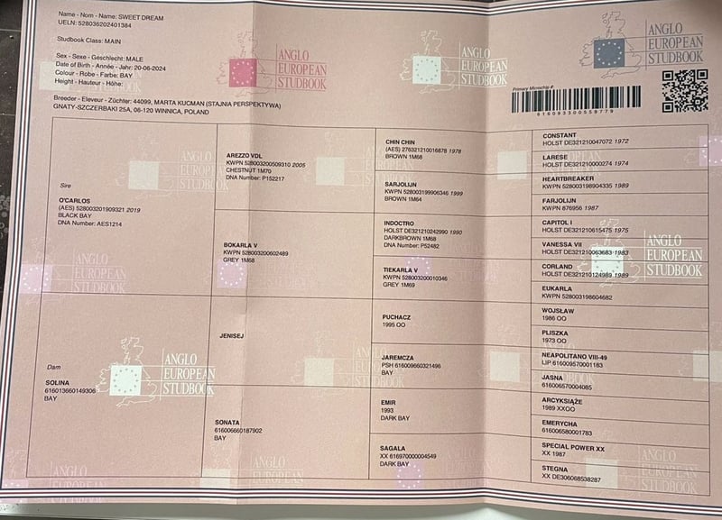 Zum Verkauf steht ein wunderschöner Hengst der Rasse Anglo European Studbook, geboren im Jahr 2024. Dunkelbraun, perfekt für den Springsport. Hervorragende Konstitution und sportliches Potenzial. Ideal für Reiter, die nach einem jungen, vielversprechenden Springpferd für den Wettkampf suchen. Wir laden Sie ein, uns für weitere Informationen zu kontaktieren und einen Besichtigungstermin zu vereinbaren.