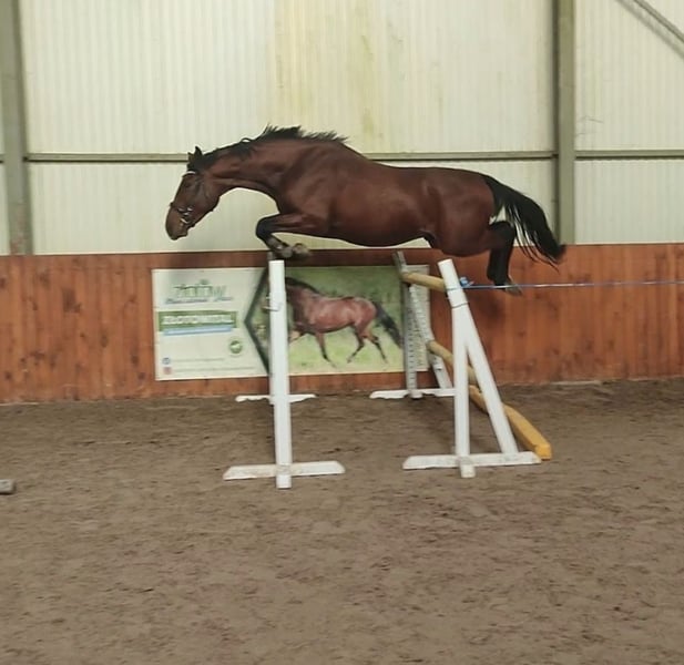 Three-year-old AES stallion Current height: 16.1 hh (approximately 167 cm, aiming for 16.3 hh / 170 cm) Light and agile in movement, flexible Ideal prospect for eventing, show jumping, and dressage Mixed dressage and jumping pedigree Sire: Floridos S Dam: Horizon His sire’s lineage includes renowned horses such as Nevados S and Concert. On the dam’s side, notable ancestors include Laurentio, Blue Hors Hotline, and Sandro Hit. This combination of bloodlines gives him a versatile talent, complemented by a wonderful temperament—"teddy bear" type. He loves human contact but can be somewhat dominant in the herd. Raised in a herd (geldings and stallions). Safe to handle and groom. Tied in a stable, accustomed to transport, lunged with saddle, and prepared for saddle work. On-site castration available. Located in the Greater Poland region near Piła. Contact phone: 500-085-223 Videos available on WhatsApp.