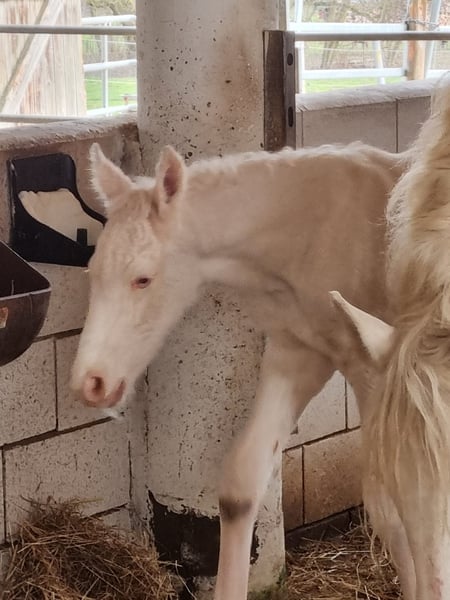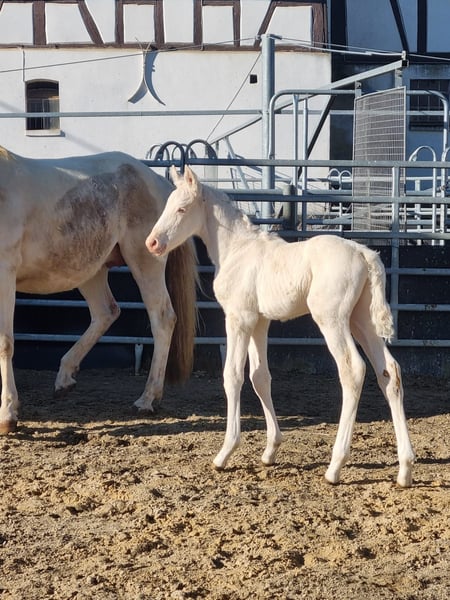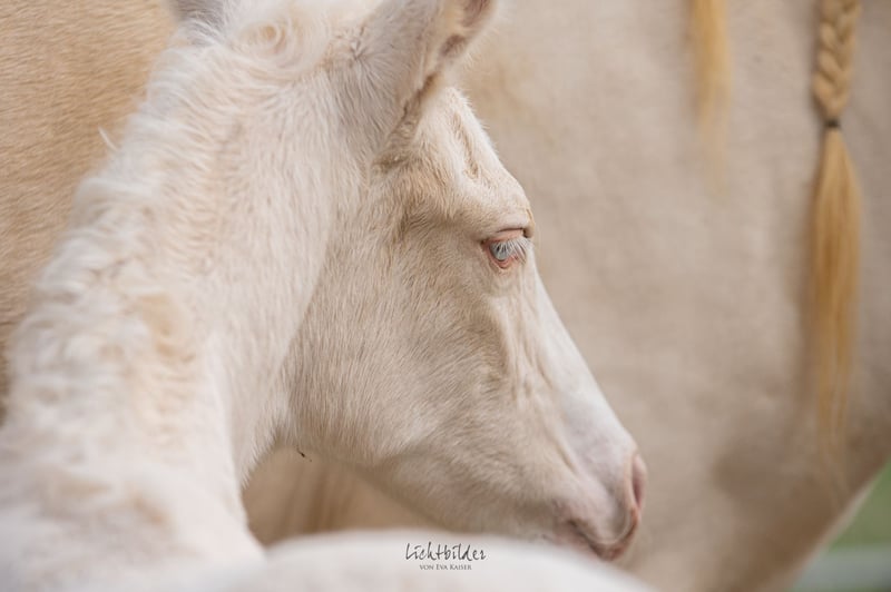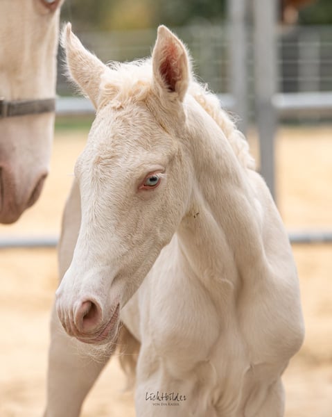 Zum Verkauf steht ein korrekt gebautes, kräftiges Hengstfohlen, das durch seine außergewöhnliche Präsenz besticht. Er zeigt bereits jetzt eine gute Aufrichtung und eine stabile Statur, die ihn später als großrahmiges Dressurpferd auszeichnen wird. Besonders hervorzuheben ist seine exklusive Optik: In der seltenen, genetisch abgesicherten Farbe Doppel-Creme-Dun ist er eine absolute Rarität. Er ist der Vollbruder zum bereits gekörten und leistungsgeprüften Alvao. Die sportliche Qualität dieses Fohlens ist über beide Elternteile auf höchstem Niveau abgesichert. Das gezielte Crossbreed vereint das Beste aus zwei Welten: Der Vater: Ein Lusitano-Hengst, der selbst im S-Dressursport bis auf internationalem Parkett erfolgreich ist. Er gibt seine natürliche Versammlungsbereitschaft, die enorme Rittigkeit und seine sportliche Härte weiter. Die Mutterseite: Hier sorgte der Muttervater (Frederiksborger) für Furore. Er bewies seine Qualität direkt im Vergleich mit modernen Warmblütern: Er absolvierte seine Hengstleistungsprüfung mit der Note 7,8 und siegte in einer Qualifikation zum Bundeschampionat mit der Note 8,2 gegen ein starkes Warmblutfeld. Die Vorzüge dieser Anpaarung: Dieses Crossbreed-Konzept zielt darauf ab, die barocke Eleganz und Versammlungsfähigkeit des Lusitanos mit dem sportlichen Warmblutpferd und der Gelassenheit des Frederiksborger-Blutes zu kreuzen. Das Ergebnis ist ein modernes, leistungsbereites Dressurpferd, das durch seine Robustheit und ein besonders sitzbequemes Gebäude besticht. Die Fakten auf einen Blick: Typ: Großwerdendes Dressur-Crossbreed mit kräftiger Statur. Farbe: Doppel-Creme-Dun. Vater: Lusitano, S-erfolgreich & international platziert. Muttervater: HLP 7,8 / BuCha-Quali-Sieger 8,2 gegen Warmblüter. Verwandtschaft: Vollbruder gekört & leistungsgeprüft. Ein Nachwuchspferd für Reiter, die Wert auf ein korrektes Gebäude, internationale Leistungsgenetik und eine besondere Jacke legen. ACHTUNG: Die korrekte Farbe war in der Auswahl nicht vorhanden. Sie lautet doppelcreme - dun (homozygot creme, heterozygot dun)
