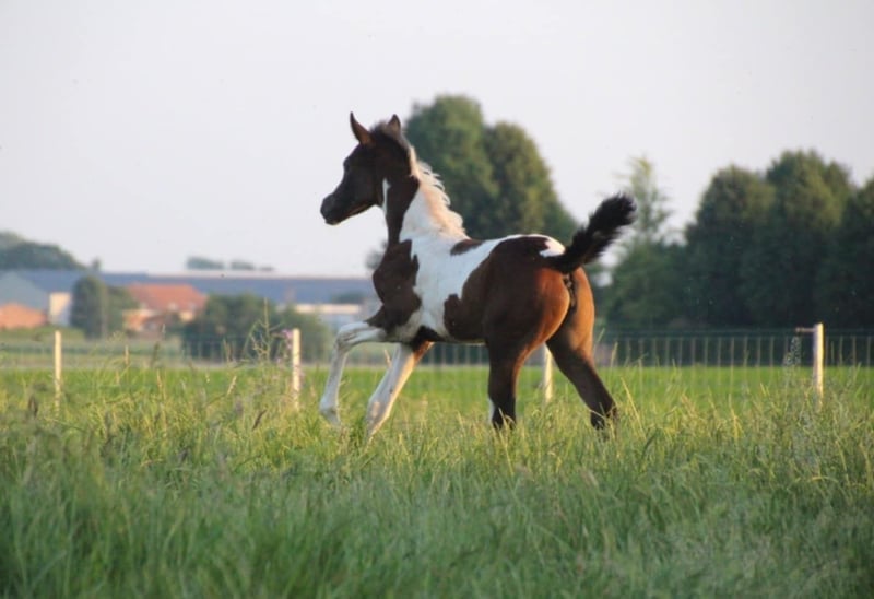 Prachtig merrieveulentje Haar vader is de helaas recent overleden allround hengst Reddy Wally Ter Linden (BWP) van Eddy Wally, die mooie resultaten behaalde op jumping en eventing. Haar moeder is FL Mir Amira (Arabische volbloed), dochter van Profender K.A. (multi internationaal kampioen, waaronder ook 3x Belgisch Kampioen.), zijn volle broer en zoon lopen endurance +80km Lijken ons leuke lijnen voor een sportief allround mensgericht paardje met de nodige uithouding. Beide ouders hebben een zeer goed karakter. Moeder is 1m60, vader 1m62. Wadira beschikt over AES stamboek papier. Het is fijn als we haar wat verder kunnen blijven volgen Ze mag reeds haar mama verlaten. Ze is lief van karakter, sociaal en wandelt mooi mee aan touw.