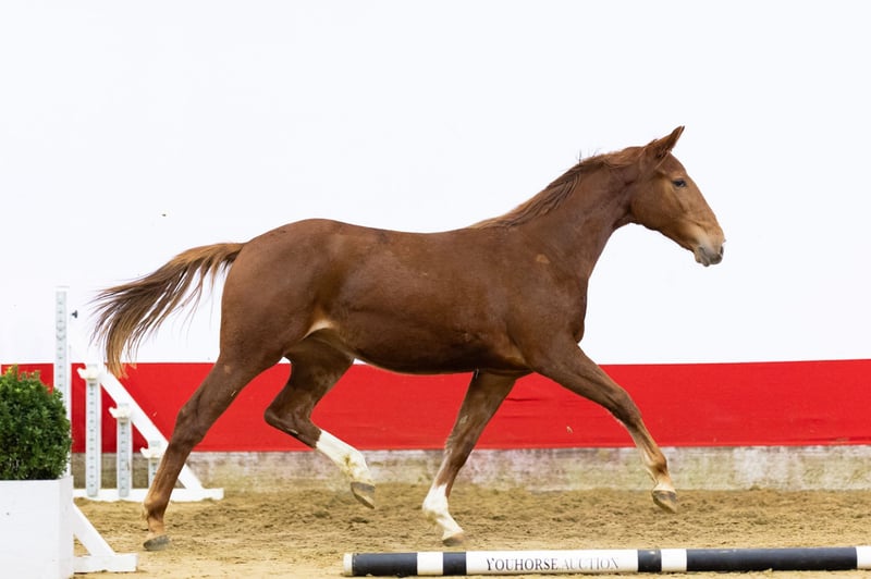 A very complete horse with balance, canter and quality Bubbles is a very complete horse with a very good canter, a lot of balance and plenty of go. He jumps very well from behind and shows a lot of power off the ground. He moves easily and canters well. Coming straight from the group housing and still very green. In handling, he currently only accepts a halter and nothing more. Despite this, he clearly shows a lot of quality over the jump. In our opinion, a very complete horse. Sire Bamako de Muze (Darco x Fragance de Chalus) competed at international 1.60m Grand Prix level and is a BWP Ambassador. He is a proven top sire with an exceptional list of Grand Prix offspring, including Don Juan van de Donkhoeve (1.70m), Kasanova de la Pomme (1.70m) and Bretling du Paradis Z (1.60m). Through Darco and Jalisco B, this line carries elite performance genetics from the very top of the sport. Damline The dam is Ginger WZ (Andiamo), herself active in sport and descending from a strong KWPN family. Andiamo competed at 1.60m level and is known for passing on scope, attitude and rideability. The second dam Pepper H (Holland) competed at 1.35m level and produced several sport horses, including: – Ulano-H (Celano), approved AES stallion, 1.50m – Felix BC (Carthino Z), international 1.45m The third dam Midnight Color (Haarlem) also produced sport horses at higher levels, with offspring competing at 1.30m and 1.35m. Further back in the damline we find Dotosa (Uddel), with among others: – Jumping Jack (Casimir), 1.30m – Noenke (Holland), 1.30m A damline that consistently produces sport horses at 1.30m level and higher, combined with proven sires.