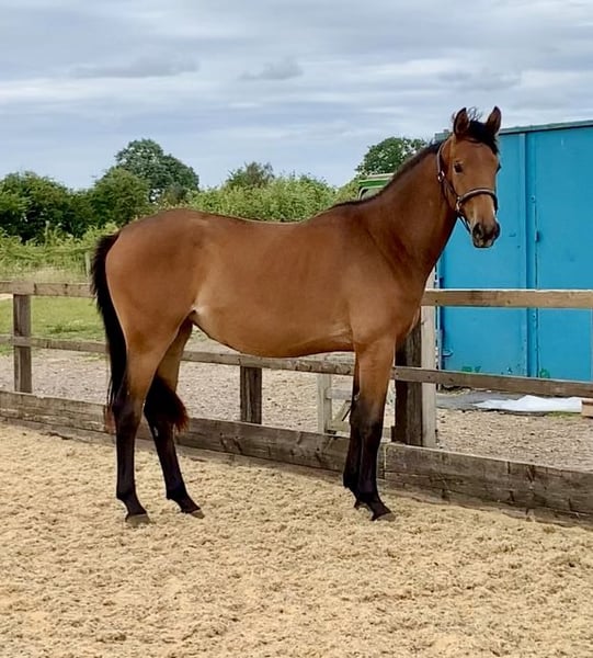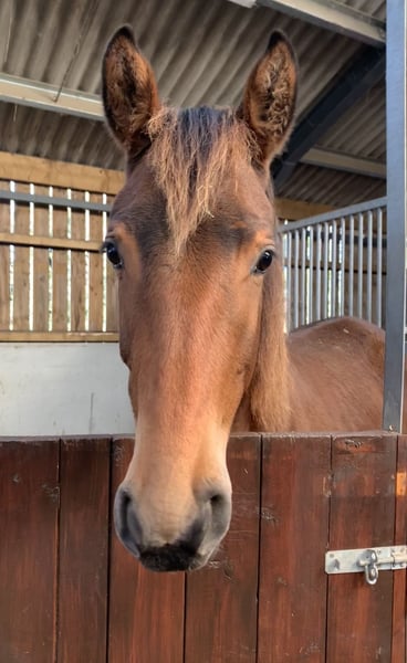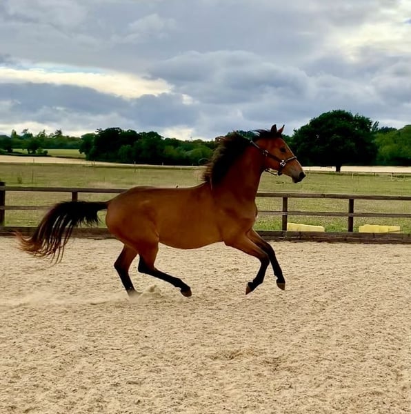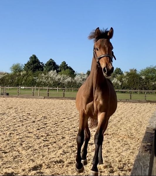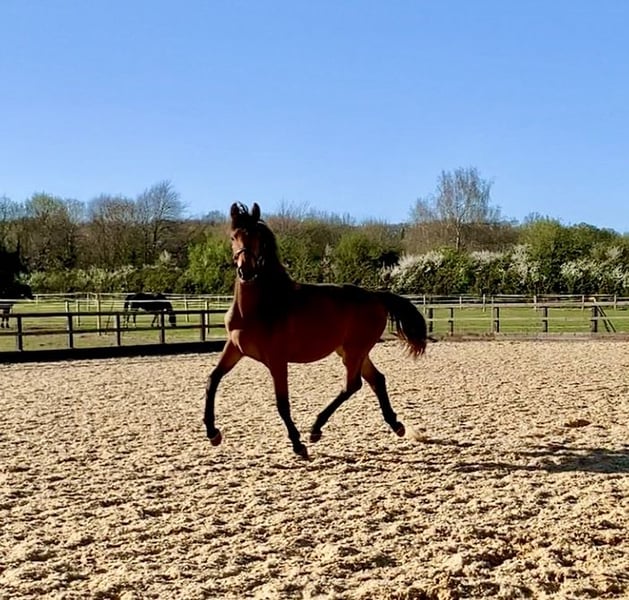 Morricone III (Millennium x Rubin Royal x De Niro) x Flashpoint (Ampere) x Ferro •Super exciting prospect with 3 elegant, uphill and elastic gaits •Lovely temperament - sweet, straightforward, trainable and friendly. Well handled and good for farrier etc. •Very pretty and well put together. Currently standing at 16hh with a solid frame, to make approx 17hh •Excellent pedigree featuring an impressive accolade of many Olympic/Grand Prix relatives Bred with temperament, trainability and longevity in mind, she will no doubt be a star for the future. Notable relatives include Morricone III (now competed by Gareth Hughes), Millennium (half brother to Jessica Von Bredow Werndl's TSF Dalera), Rubin Royal, De Niro, Ampere, Rousseau, Olympic Ferro, Flemingh, Donnerhall and more. Very sad sale of this special filly who will only go to the best of homes. Available through no fault of her own. Gloucestershire, UK based