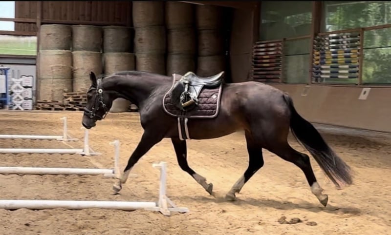 Klacz | 3,5 roku | 1,61 m Ta młoda klacz pochodzi świeżo z hodowli i obecnie jest delikatnie oswajana. Od początku wykazuje współpracującą, towarzyską i chętną do nauki postawę – prawdziwa klacz z sercem i dużym potencjałem. Zastosowanie: Wszechstronność (z perspektywą na ujeżdżenie i skoki) Charakter: kochana, bezproblemowa, z dużym sercem Idealny koń dla młodych jeźdźców, którzy chcą sami kształtować swoją przyszłość w sporcie. Obecnie stoi w 78166 w pobliżu Donaueschingen.