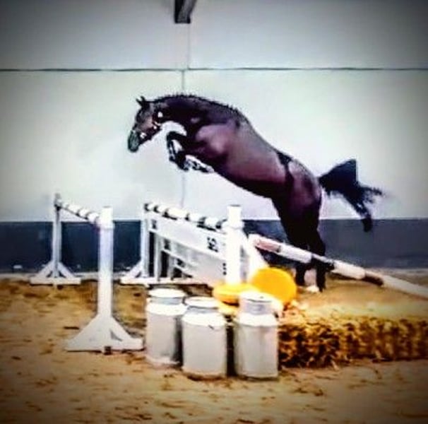 💥Are you ready to take off? "Merle S," a superlative young horse, is looking for her FOREVER HOME... She seeks a home where her high-quality nature is appreciated and where she will NOT be used as a sport tool. She wants to live a horse-appropriate life – with pasture, paddock, etc. Of course, she should continue to be developed in sports, as she has the best prerequisites for the big tour. This granddaughter of "Chacco Blue" has an extraordinary jumping ability with excellent manners, leaving nothing to be desired. She is easy and light to ride, neither crazy nor does she get hot in the course. Merle is always 100% with her rider. She is currently jumping about 1.20m under saddle. She has a pleasant go, wants to avoid mistakes, and is a winner type. Merle is still inexperienced but feels great to ride. No stops, no refusals. Last month, she also stepped onto the winner's podium with 2 competition starts. Overall, a high-quality horse of the finest kind and absolutely reliable. She goes very well out on trails, whether alone or in a group. Of course, the price reflects her quality. Her pedigree needs no words and speaks for the highest quality of this beautiful black mare.🤩 This filly is also highly interesting for breeders. If you like this exceptional horse, please contact me with your phone number so I can get in touch with you as soon as possible.