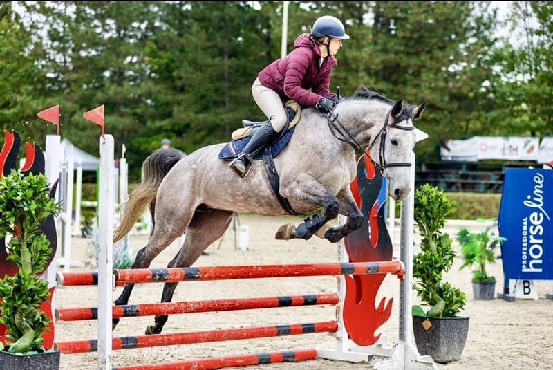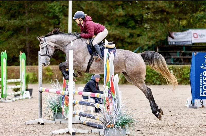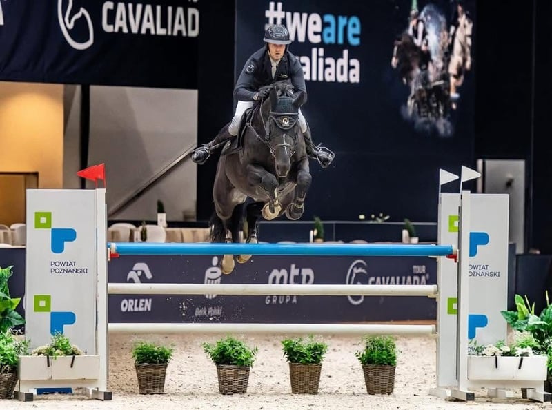 For sale: a five-year-old mare named Night Pearl-S by Dark’Ann, competing in CSI3. Her dam, Nefretete, is a class P mare by Tungshy. The last two photos show her parents. The mare is registered with the British European Stud Book. She has participated in her first competitions, after training trips and outdoor riding. She shows potential for 130–140 cm show jumping competitions. Regularly vetted and vaccinated. Please feel free to contact me.