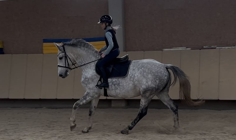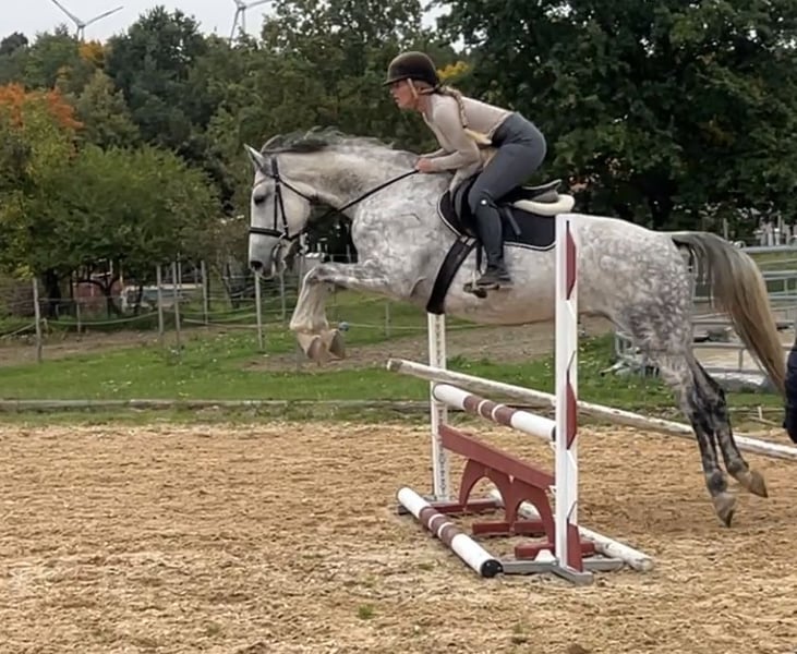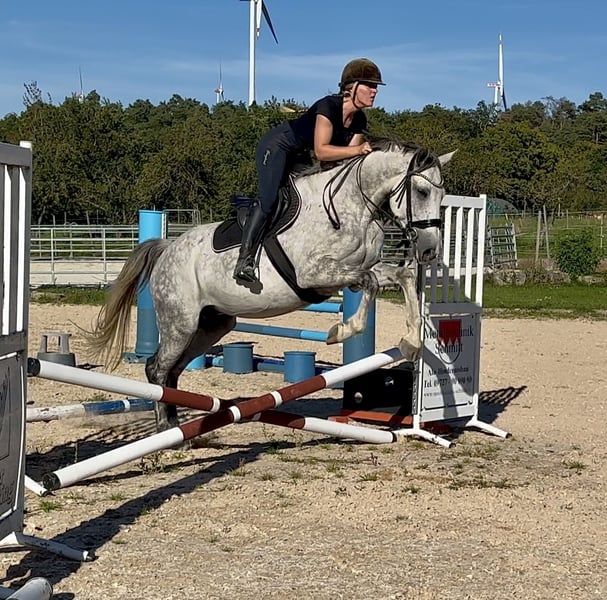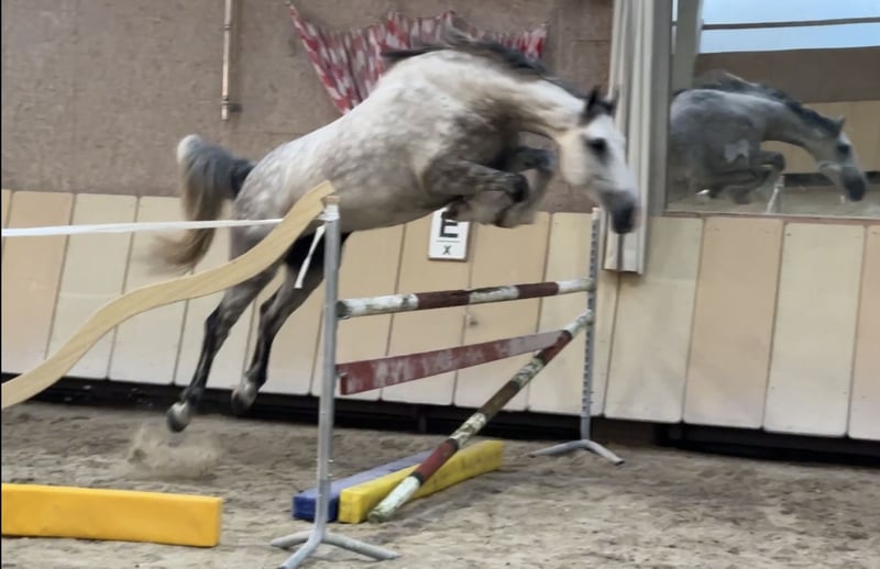 ⭐️ Sire: Comme il Faut, Cassini I, Stakkato, Cornet Obolensky, Come On, Ramiro Z, Ratina Z, Argentina Z… ⭐️ Born in 2018 ⭐️ Mare ⭐️ 16.1 hh ⭐️ Herd-compatible ⭐️ Load-trainable ⭐️ Farrier-friendly ⭐️ Ridden by children ⭐️ Well-behaved in the field ⭐️ Had three foals ⭐️ Würzburg area ⭐️ Transport available at additional cost ⭐️ Under saddle training possible ⭐️ Large pre-purchase veterinary exam (AKU) available for approx. €800 ⭐️ On consignment A very beautiful mare with an elegant, refined appearance. She is very well-behaved and easy to handle, even by children. Under saddle, she shows a lot of go and still needs to learn to use her body correctly musculature-wise. Her main focus is on relaxation. She makes quick progress in jumping, learns very fast, and is thoughtful. She enjoys working and wants to please. Several children have ridden her. In the field, she is also well-behaved and now leads young horses very calmly. Minor flaw: small scar on the left hind leg outside. Does not affect her. X-ray taken by interested party showed no issues. Will be corrected by the farrier. Despite high workload, she has never had problems. Only serious inquiries will be answered. Unreasonable or disrespectful inquiries will be ignored. Test rides cost €25, which will be deducted from the purchase price. Beginners only with experienced trainer supervision. Price will increase with further training.