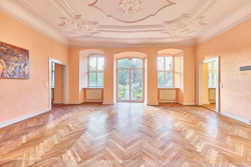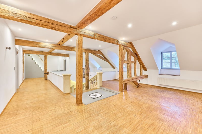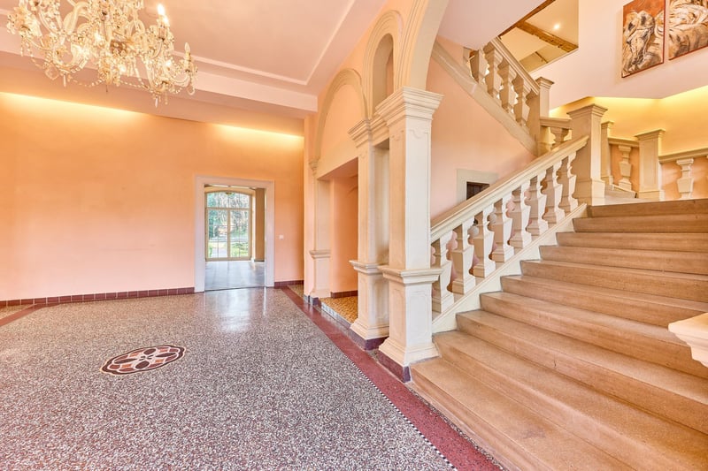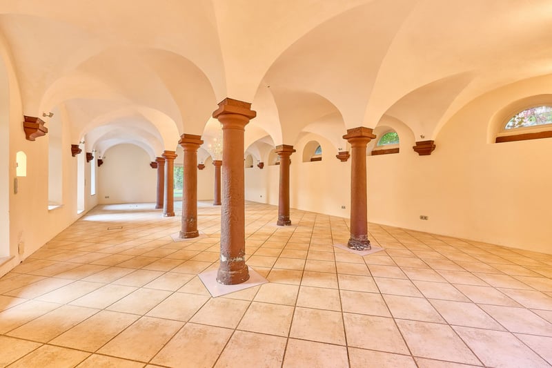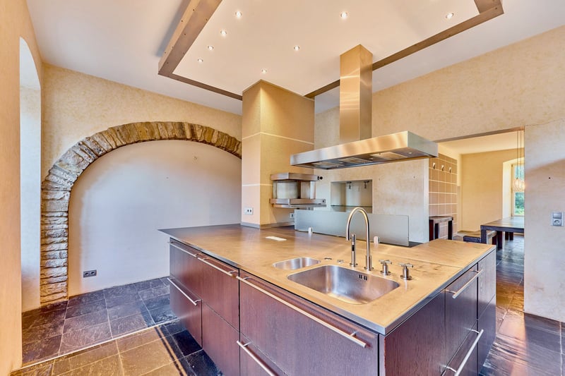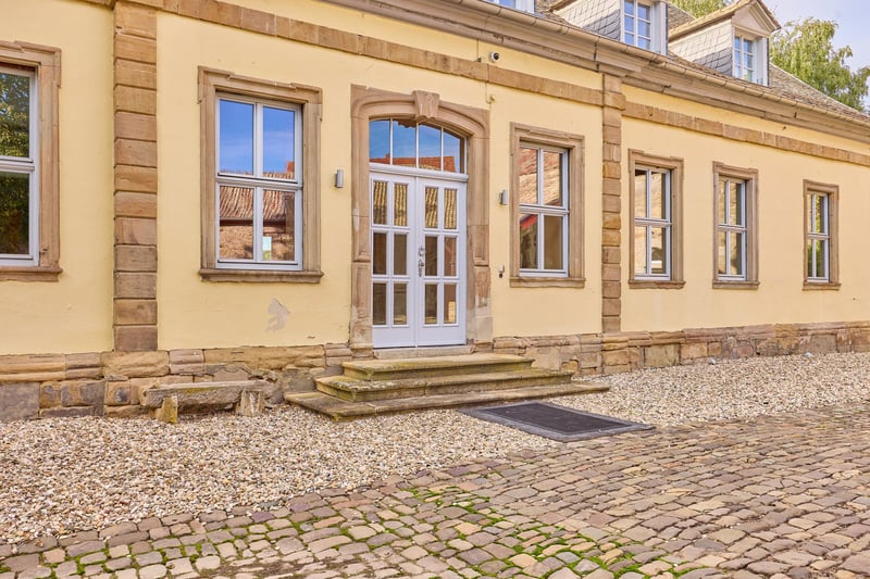 Equestrian Facility in Rheinhessen with Imposing Water Castle for Sale! *Price on Request* Property Description: Around 1724, Baron von Hunolstein commissioned the construction of this impressive water castle in Nieder-Wiesen, originally surrounded by a moat. Today, a picturesque stream runs through the romantic castle garden, emphasizing the historic charm of the estate. In subsequent years, outbuildings, the garden landscape, and in the 1990s, the riding facility were added. The entire complex, including the castle courtyard, is protected as a historic monument. The castle itself, with approximately 560 sqm of living space, was extensively renovated in 2001, modernized since, and combines historic character with luxurious modern amenities. High-quality materials, stucco ceilings, terrazzo mosaic flooring in the hallway, granite, and authentic hardwood parquet define the interior. The Poggenpohl kitchen is equipped with professional Gaggenau appliances, while the master bathroom features designer elements from Philippe Starck, a freestanding bathtub, and underfloor heating. A fireplace in the living area, oil central heating, video surveillance, and spacious park-like grounds with romantic seating areas enhance the exclusive living experience. The courtyard features a banquet hall of approximately 115 sqm with underfloor heating and indirect lighting, ideal for weddings or special events, with expansion potential in the attic. The estate is complemented by a guesthouse with six high-quality furnished apartments totaling around 200 sqm, each with its own kitchen and bathroom, two with terraces overlooking the castle garden. The riding facility includes a 20 x 40 m indoor riding arena, a 20 x 60 m dressage arena, paddock and box stalls, saddle rooms, rider’s lounge, and winter paddocks, as well as a listed, free-standing barn with approximately 720 sqm of footprint. The property spans approximately 18,711 sqm and combines historic ambiance, luxurious facilities, and versatile usage options into a unique, prestigious estate. Features: The Castle: - Built: 1722, fully renovated in 2001 - Living area: approx. 560 sqm plus 2,600 sqm of auxiliary spaces (outdoor areas, halls, etc.) - High-quality Poggenpohl kitchen with professional Gaggenau appliances, chocolate-brown fronts - Master bathroom (upper floor) fully fitted with designer elements by Philippe Starck, freestanding bathtub, black granite floor with underfloor heating - Heating: Oil central heating from 2001, fireplace in the living room - Terrazzo mosaic flooring in the hallway, stone staircase with balusters, elaborate stucco ceilings with allegorical depictions of the four seasons - Basement: fully cellarled (technology, heating, wine cellar) - Windows: double-glazed wooden windows - Floors: terrazzo mosaic (circa 1900), black granite, authentic hardwood parquet - Video surveillance system (13 cameras, app-controlled) - Premium electric gate technology - Park with romantic seating areas and views of the riding arena - Garage for cars in the courtyard, cobblestone paving, gravel driveway Photovoltaic System: - Commissioned: 2022 - For self-consumption - 24.80 kWp (62 modules) Inner Courtyard – Banquet Hall: - The banquet hall, with kitchen, restrooms, and staff room, offers approximately 115 sqm, underfloor heating, indirect lighting (ideal for weddings or birthdays) - Expansion potential above the banquet hall - Three indoor paddocks in the courtyard, rubber flooring, heated drinking troughs - Barn building (with PV system) includes two apartments for staff, each with a fitted kitchen, living room, bathroom, and separate sleeping area - Storage areas, feed room, barn doors separating the horse area - Former cattle stall behind the banquet hall, currently unused Stabling: - Six paddock boxes at the indoor riding arena (brand “Röwer & Rüb”) - One indoor box at the riding arena (brand “Röwer & Rüb”) - Five paddock boxes in a separate stable (adjacent), own saddle room, washing area - Rider’s lounge / social room with bar, view of the riding arena, saddle rooms, restrooms, blanket wash area - Pre-ride jump equipment storage Indoor Riding Arena: - Built circa 1990 - Dimensions: 20 x 40 meters - Irrigation system available - Surface: sand/fleece mixture - Equipped with lighting and mirrors - Roof: Eternit Dressage Arena: - Dimensions: 20 x 60 meters - Surface: sand/fleece mixture Additional Facilities: - Winter paddocks (sand), smaller grass paddocks - Former tennis court with tennis house - Free-standing, listed barn adjacent to the riding arena with a footprint of 720 sqm (great development potential, currently used as guest box stalls and hay storage) Guesthouse (Included): - Built: 1900, renovated in 2012 - Living area: approx. 200 sqm - Six fully furnished apartments, each with kitchen Location: Nieder-Wiesen is situated in the Alzey-Worms district of Rheinhessen, offering a quiet rural setting with good transport links. The B420 road and the A63 and A61 motorways provide quick access to Alzey, Mainz, Worms, and Kaiserslautern. Bus connections lead to Alzey station, from where regular train services connect to the Rhine-Main area. Frankfurt Airport is approximately 45 to 60 minutes away, ensuring excellent regional and international connectivity. Frankfurt-Hahn Airport in the Hunsrück region is reachable within about an hour. Nieder-Wiesen combines natural living with short distances to the economically strong regional centers. The community is characterized by its peaceful, rural atmosphere and high quality of life. It is especially attractive for families: a local kindergarten provides early childcare, while primary schools in nearby Erbes-Büdesheim or Alzey are easily accessible. Secondary schools such as Realschulen, Gymnasien, or comprehensive schools are also located in Alzey, keeping commuting short. Medical services are well-organized, with general practitioners, specialists, and several pharmacies in the