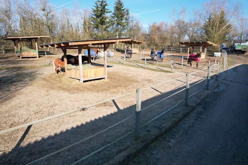 Raj dla miłośników koni - Twoja szansa na posiadanie ekskluzywnego ośrodka jeździeckiego! Dzięki łącznej powierzchni ok. 12 hektarów (z możliwością dalszego wypasu), ta nieruchomość oferuje wszystko, co sprawia, że serce entuzjastów sportów jeździeckich bije szybciej. Czy to dla ambitnych właścicieli koni, hodowców, czy jako lukratywna inwestycja - tutaj znajdziesz idealne warunki. Wysokiej jakości udogodnienia, pierwszorzędna infrastruktura i idylliczna lokalizacja czynią tę nieruchomość wyjątkową. Nowoczesna kryta ujeżdżalnia o wymiarach 20 x 40 metrów ma wysokiej jakości asfaltową podłogę HEUS i lustra jeździeckie firmy Equus Design, które mogą być opcjonalnie zakupione przez klub. Na krótszej tylnej ścianie hali znajduje się wszechstronny magazyn, który nadaje się również do wykorzystania jako otwarta stajnia. Całości dopełniają dwie galerie dla widzów. Duży budynek stajni jest optymalnie podzielony. Po prawej stronie znajduje się łącznie 15 boksów padokowych, w tym 13 boksów o wymiarach 3x4 m z przyległymi padokami 3x6 m, jeden boks padokowy z padokami 4x4 m i 4x6 m oraz kolejny z padokami 5x4 m i 5x6 m. Po lewej stronie skrzydła stajni znajduje się wygodna strefa pielęgnacyjna z solarium o regulowanej wysokości firmy Equus, bezpośredni dostęp do krytej ujeżdżalni, pomieszczenie socjalne z 15 przestronnymi szafkami wojskowymi oraz pomieszczenie paszowe z trzema zintegrowanymi silosami w suficie, z których każdy mieści 4-5 ton, zgniatacz owsa i wózek paszowy. Znajduje się tam również kolejny pokój z dodatkowymi szafkami wojskowymi i pięcioma przestronnymi boksami wewnętrznymi, każdy o wymiarach 3x4 metry, z których dwa mają wysokiej jakości duże stojaki na siano. Przed stajnią znajduje się zadaszona strefa pielęgnacji i zewnętrzna strefa pielęgnacji z możliwością spłukiwania. Poniżej stajni znajduje się duży zewnętrzny padok z dwoma drewnianymi stojakami na siano i dwoma namiotami pastwiskowymi o powierzchni około 700 m². Został on niedawno wybudowany w tym roku. Górne boksy zewnętrzne po przeciwnej stronie stajni składają się z sześciu przestronnych boksów, z których cztery mają wymiary 3,5 x 3,5 metra każdy, a dwa mają wymiary 5 x 3,5 metra. Niewielkie pomieszczenie gospodarcze z podłączeniem do wody i oddzielny magazyn siana zapewniają dodatkową przestrzeń do przechowywania. Istnieje również pięć padoków zewnętrznych, każdy o powierzchni około 300 m² i drewniane stojaki na siano. Istnieją dwie ujeżdżalnie do codziennych treningów: Górna ujeżdżalnia ma wymiary około 25x50m i ma nawierzchnię piaskową, podczas gdy dolna ujeżdżalnia ma wymiary około 25-35x55m i ma wysokiej jakości nawierzchnię piaskową HEUS Castle Park. Dolna arena ma białe ogrodzenie firmy Schmaus, nowoczesny system oświetlenia i praktyczną "chatę sędziego" do przechowywania materiału przeszkodowego. Przytulny salon dla jeźdźców o powierzchni około 50 m² oferuje bezpośredni widok na krytą arenę i jest wyposażony w projektor, ekran, stały blat barowy z kuchnią i dodatkowy piec opalany drewnem. Był on również wykorzystywany jako sala treningowa. Ogrzewane toalety męskie i damskie zapewniają dodatkowy komfort. Kolejne pomieszczenie obok hali służy jako magazyn z szafkami wojskowymi i zawiera pralkę, kocioł gazowy i zbiornik ciepłej wody. Znajduje się tam również cysterna o nieznanej wielkości. Przytulną część wypoczynkową uzupełnia zewnętrzny taras. Dwie galerie krytej ujeżdżalni oferują dalsze możliwości wykorzystania: Galeria 1 mieści mieszkanie dla personelu z 45-50 m² powierzchni mieszkalnej, klimatyzacją LG, ogrzewaniem gazowym i kuchnią Ikea, a także dodatkowe ogrzewane pomieszczenie o powierzchni 24 m². Galeria 2 służy jako dodatkowy obszar dla widzów z miejscem do przechowywania szafek i sprzętu. Obiekt obejmuje również dwa duże magazyny, które mogą być wykorzystywane na różne sposoby. Górny magazyn oferuje miejsce na siano i słomę oraz posiada warsztat w górnej części, a także dodatkowy parking i przestrzeń magazynową poniżej. Dolny magazyn może być również wykorzystywany do przechowywania siana/słomy lub jako otwarta stajnia. Obiekt jeździecki był regularnie modernizowany i konserwowany. Do najważniejszych inwestycji należy nowa konstrukcja dolnej ujeżdżalni z drenażem (2014 r.), renowacja podłogi ujeżdżalni (2016 r.), nowy kocioł gazowy (2018 r.) oraz gruntowne remonty, w tym ujeżdżalni (2020 r.) i mieszkania dla personelu z instalacją klimatyzacji (2023 r.). W ostatnich latach odnowiono również liczne ogrodzenia, zainstalowano nowe drewniane stojaki na siano i zakupiono nowoczesne systemy oświetleniowe. Chociaż na działce nie ma obecnie budynku mieszkalnego, jesteśmy przekonani, że można spełnić wszystkie wymagania, aby uzyskać pozwolenie na budowę. Skorzystaj z tej wyjątkowej okazji, aby zrealizować swoją wizję pierwszorzędnego obiektu jeździeckiego! Skontaktuj się z nami, aby uzyskać więcej informacji lub osobiście obejrzeć nieruchomość. Ważne fakty w skrócie: Wielkość działki: ok. 12 ha, opcjonalnie dalsze grunty rolne właściciela do zakupu lub dzierżawy. Ujeżdżalnia: 20x40m z podłogą HEUS quicksand, wysokiej jakości lustra ujeżdżalni Stajnie: 15 przestronnych boksów padokowych, 5 boksów wewnętrznych, 6 boksów zewnętrznych, otwarte stajnie dla dodatkowych koni Obiekty zewnętrzne: dwie areny jeździeckie (25x50m i 25-35x55m), duże padoki zewnętrzne, Komfort i infrastruktura: hala jeździecka z kuchnią i projektorem, ogrzewane zaplecze sanitarne, dwie galerie z pomieszczeniami dla personelu Nowoczesna technologia: system naświetlaczy, solarium z regulacją wysokości, zintegrowane silosy paszowe, zgniatacz owsa Pomieszczenia magazynowe: Dwie duże wiaty na siano, słomę i pomieszczenia warsztatowe Bieżąca modernizacja: Nowa podło