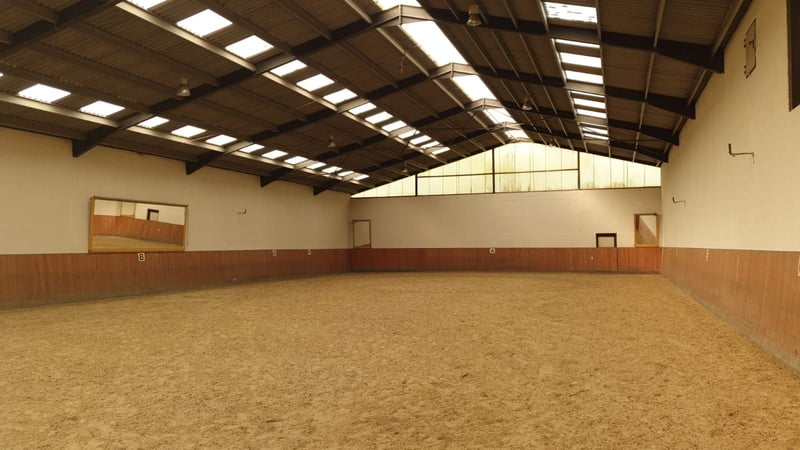 Un paradiso per gli amanti dei cavalli: la possibilità di possedere un esclusivo centro di equitazione! Con una superficie totale di circa 12 ettari (e la possibilità di ulteriori pascoli), questa proprietà offre tutto ciò che fa battere il cuore degli appassionati di sport equestri. Sia che si tratti di un ambizioso proprietario di cavalli, di un allevatore o di un investimento redditizio, qui troverete le condizioni perfette. Le strutture di alta qualità, le infrastrutture di prima classe e la posizione idilliaca rendono questa proprietà unica. Il moderno maneggio coperto, con un'area di 20 x 40 metri, è dotato di un pavimento in asfalto HEUS di alta qualità e di specchi per maneggi di Equus Design, che possono essere acquistati come optional dal club. Sul lato corto posteriore del padiglione si trova una versatile area di deposito, che può essere utilizzata anche come stalla aperta. Due gallerie per gli spettatori completano il quadro generale. L'ampio edificio della scuderia è suddiviso in modo ottimale. Sul lato destro si trovano in totale 15 box paddock, di cui 13 box di 3x4 m con paddock adiacenti di 3x6 m, un box paddock con paddock di 4x4 m e 4x6 m e un altro con paddock di 5x4 m e 5x6 m. Il lato sinistro dell'ala della scuderia offre una confortevole area di toelettatura con un solarium regolabile in altezza di Equus, l'accesso diretto all'arena di equitazione coperta, una sala di selleria con 15 spaziosi armadietti militari e una sala di alimentazione con tre silos integrati nel soffitto, ognuno dei quali può contenere 4-5 tonnellate, un frantoio per l'avena e un carrello per l'alimentazione. C'è anche un'altra sala attrezzi con altri armadietti militari e cinque spaziosi box al coperto, ciascuno di 3x4 metri, due dei quali con grandi rastrelliere per il fieno di alta qualità. Davanti alla scuderia si trova un'area coperta per la toelettatura e un'area esterna per la toelettatura con impianti di lavaggio. Sotto la stalla si trova un grande paddock all'aperto con due fienili in legno e due tende da pascolo per una superficie di circa 700 m². Quest'ultimo è stato costruito di recente, quest'anno. I box esterni superiori, sul lato opposto della stalla, comprendono sei ampi box, quattro dei quali di 3,5 x 3,5 metri e due di 5 x 3,5 metri. Una piccola sala attrezzi con attacco per l'acqua e un deposito per il fieno separato offrono ulteriore spazio di stoccaggio. Ci sono anche cinque paddock esterni, ciascuno con una superficie di circa 300 m² e rastrelliere per il fieno in legno. Ci sono due maneggi per l'allenamento quotidiano: Il maneggio superiore misura circa 25x50m e ha una superficie di sabbia, mentre il maneggio inferiore misura circa 25-35x55m e ha una superficie di sabbia HEUS castle park di alta qualità. L'arena inferiore è dotata di recinzioni bianche di Schmaus, di un moderno impianto di illuminazione e di una pratica "capanna del giudice" per il deposito del materiale per gli ostacoli. L'accogliente sala per i cavalieri, di circa 50 m², offre una vista diretta sull'arena interna ed è dotata di proiettore, schermo, bancone bar fisso con cucina e un'ulteriore stufa a legna. Questa sala è stata utilizzata anche come sala di allenamento. I servizi igienici riscaldati per uomini e donne offrono un ulteriore comfort. Un'altra stanza accanto al salone funge da deposito con armadietti militari e contiene una lavatrice, una caldaia a gas e un serbatoio di acqua calda. C'è anche una cisterna di dimensioni sconosciute. Una terrazza esterna completa l'accogliente area lounge. Le due gallerie del maneggio coperto offrono ulteriori possibilità di utilizzo: La galleria 1 ospita un appartamento per il personale con 45-50 m² di spazio abitativo, aria condizionata LG, riscaldamento a gas e una cucina Ikea, nonché un'ulteriore stanza riscaldata di 24 m². La Galleria 2 serve come ulteriore area per gli spettatori, con spazio per armadietti e attrezzature. La struttura comprende anche due grandi magazzini che possono essere utilizzati in vari modi. Il magazzino superiore offre spazio per il fieno e la paglia e dispone di un'officina nell'area superiore, nonché di ulteriori aree di parcheggio e stoccaggio al di sotto. Anche il magazzino inferiore può essere utilizzato per il deposito di fieno e paglia o come stalla aperta. L'impianto di equitazione è stato regolarmente ammodernato e sottoposto a manutenzione. Gli investimenti più importanti comprendono la nuova costruzione del maneggio inferiore con drenaggio (2014), il rifacimento del pavimento del maneggio (2016), una nuova caldaia a gas (2018) e ampi lavori di ristrutturazione, tra cui il salone di equitazione (2020) e l'appartamento del personale con l'installazione dell'aria condizionata (2023). Negli ultimi anni sono stati inoltre rinnovati numerosi recinti, installati nuovi portafieno in legno e acquistati moderni sistemi di illuminazione. Sebbene attualmente non vi siano edifici residenziali sul terreno, siamo convinti che tutti i requisiti potrebbero essere soddisfatti per ottenere la licenza edilizia. Approfittate di questa opportunità unica per realizzare la vostra visione di una struttura equestre di prima classe! Contattateci per ulteriori informazioni o per una visita personale. Fatti importanti in sintesi: Superficie dell'appezzamento: circa 12 ettari, con possibilità di acquistare o affittare altri terreni agricoli del proprietario. Maneggio: 20x40m con pavimento in sabbie mobili HEUS, specchi di alta qualità per il maneggio. Scuderie: 15 ampi box per paddock, 5 box al coperto, 6 box all'aperto, possibilità di stalle aperte per ulteriori cavalli Strutture esterne: due maneggi (25x50m e 25-35x55m), ampi paddock esterni, Comfort e infrastrutture: sala di equitazione con cucina e proiettore, servizi igienici riscaldati, due gallerie con alloggi per il personale Tecnologia moderna: impianto di illuminazione, solarium regolabile in altezza, silos per mangimi integrati, frantoio per avena Aree di
