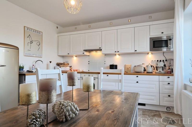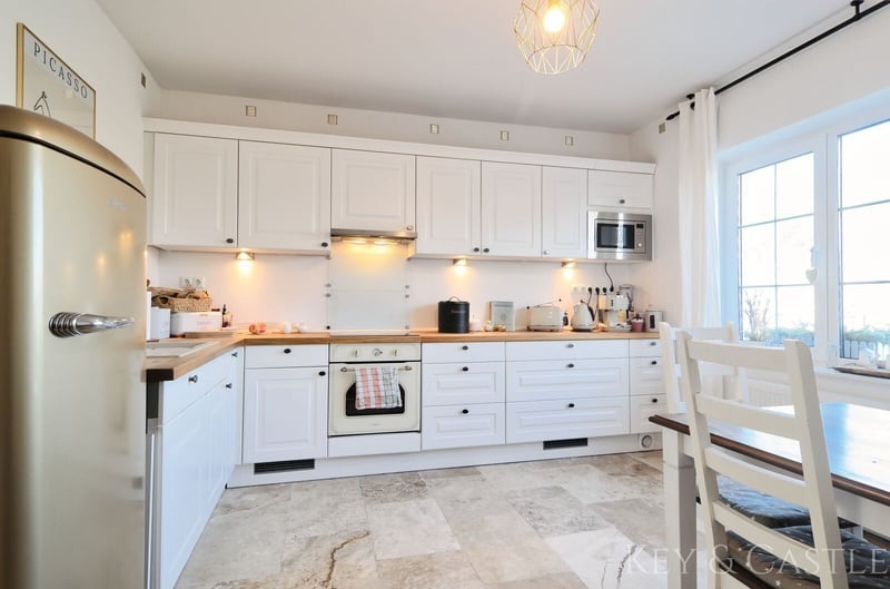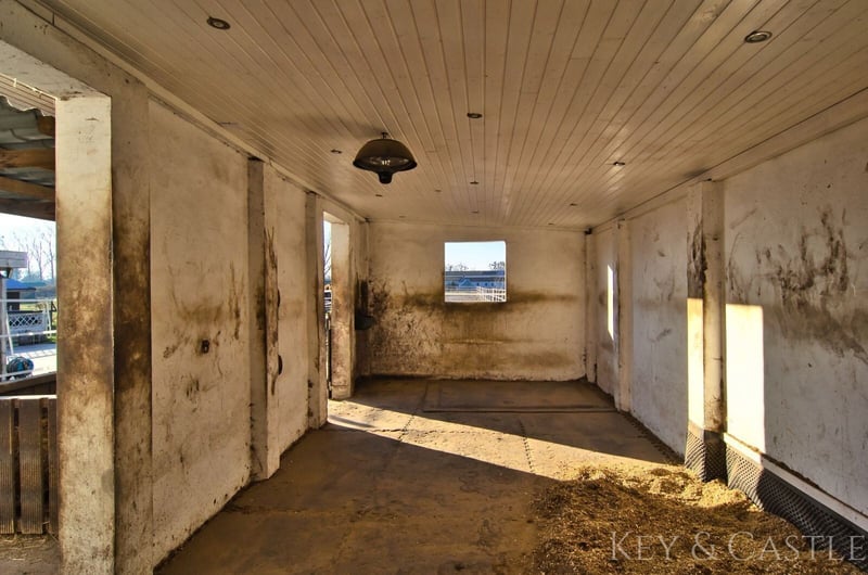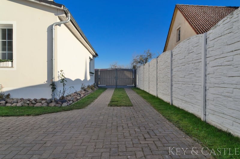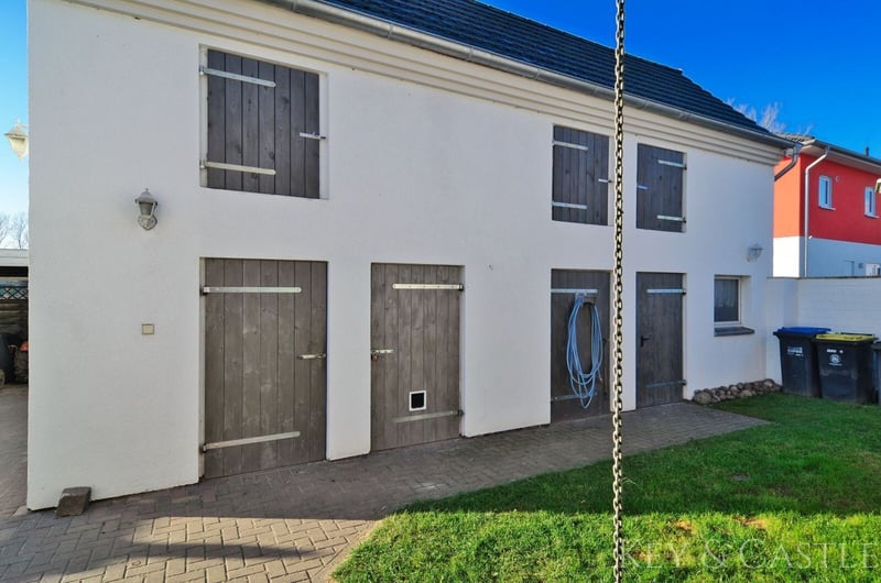 Property Description: This exceptionally well-maintained single-family home in Oberkrämer combines rural tranquility with exclusive living comfort. Originally built in 1936, the house was extensively renovated between 2017 and 2021 and now presents itself in nearly new condition. All renovation and refurbishment work was carried out with the utmost care and without compromise on quality and materials—an approach reflected in every detail. A particular highlight is the opportunity for horsekeeping directly at the property, complemented by a professionally renovated barn and stables. This makes the property ideal for horse enthusiasts who wish to combine living and hobby at the highest level. Horsekeeping & Outbuildings: A unique feature of this property is the direct horsekeeping at the house: - Fully renovated barn - Stables, feed room, and saddle room - Riding arena with two indoor riding halls just a few hundred meters away - Perfect conditions for private horsekeeping Property & Outdoor Area: The spacious plot of approximately 1,748 m² offers plenty of space for relaxation and leisure: - Pool (8 × 4 m, tiled) with pump and frost protection heater - High-quality terrace - Well-maintained garden - Quiet, natural setting This property is in an exceptionally well-kept, near-new condition. All renovation measures were executed with great care, and no expense was spared, which is clearly reflected in the quality of the materials used, craftsmanship, and overall ambiance. Move in and feel at home—no renovation needed. Features: - Major renovation of the main house in 2017 - Roof & facade renewed in 2018 - Barn fully renovated in 2019 - Terrace built in 2020 - Pool installation in 2021 - Exercise area 17 × 60 m - Paddock 8 × 20.5 m - Open stable with interior dimensions of 3.6 × 8.6 m - Extremely well-maintained, near-new condition - High-quality materials (including Travertine natural stone) - Horsekeeping possible directly at the house - Riding arena with two indoor riding halls in close proximity Living & Layout: The house offers approximately 130 m² of living space, distributed over the ground floor and an expanded attic, plus additional utility areas. The layout is spacious, open, and filled with natural light: - 4 rooms - Open living/dining area - Large, high-quality country-style fitted kitchen (new approx. €7,000) - Dressing room - Generous hallway - High ceilings (about 2.65 m) - Large windows providing excellent light conditions The floors are predominantly finished with high-quality Travertine natural stone, emphasizing the house’s exclusive character. Bathrooms & Equipment: The bathrooms were completely renovated during the major refurbishment and are finished to a high standard: - Modern, elegant bathrooms - Travertine in warm beige and brown tones - High-quality fixtures - Guest WC - Underfloor heating in key areas The stables, feed room, and saddle room were also upgraded with high-quality materials and are in excellent condition. The spacious paddock, measuring 17 × 60 m, was constructed with a sand-vlies mixture and is ideal for riding due to its size. Location: The property is situated in Oberkrämer in a quiet, idyllic residential area along a low-traffic street with a footpath and bike path. A bus stop is approximately 300 meters away, and schools and kindergartens are within walking distance. The nearby Krämerwald (about 1 km) offers diverse recreational opportunities. Shopping facilities can be found in the surrounding towns of Bötzow, Velten, Hennigsdorf, and Schönwalde. The buyer’s commission is 3.57% of the actual purchase price including statutory VAT. The commission is not included in the purchase price and is payable by the buyer to KEY & CASTLE GmbH (Walliser Str. 15, 13407 Berlin). It is due and payable at the notary appointment. This offer is subject to change and is made in accordance with our General Terms and Conditions.