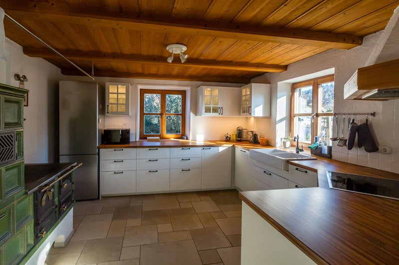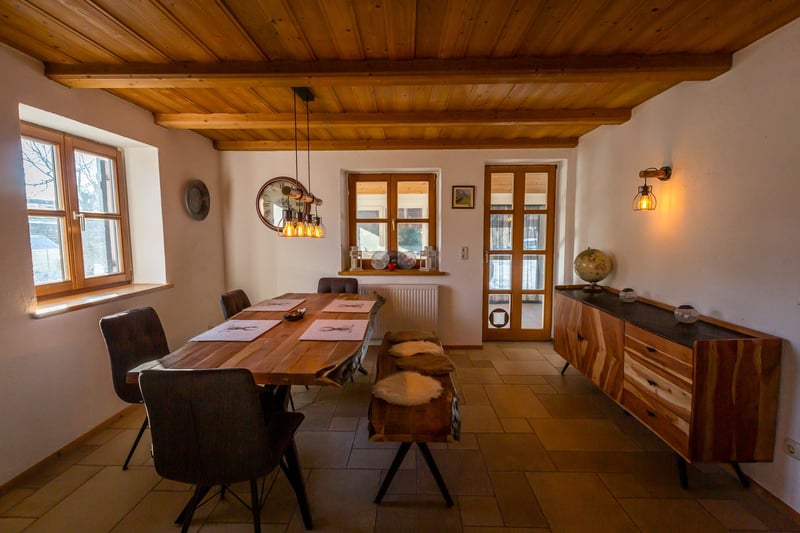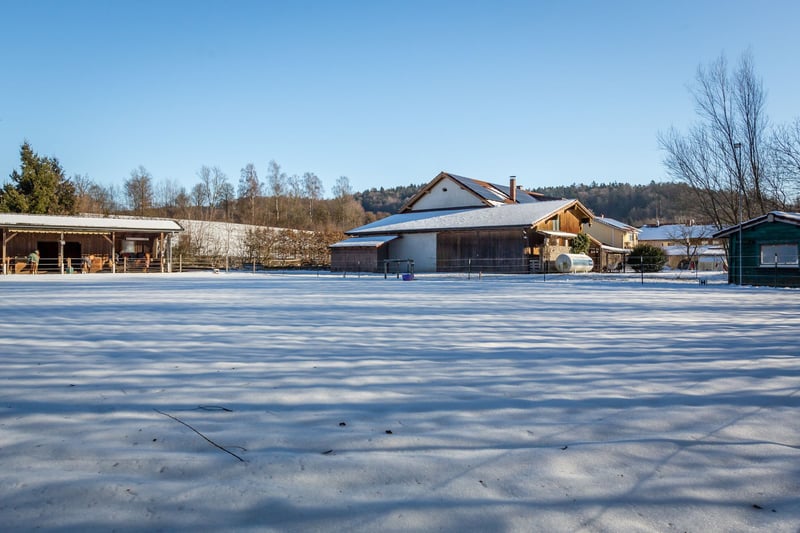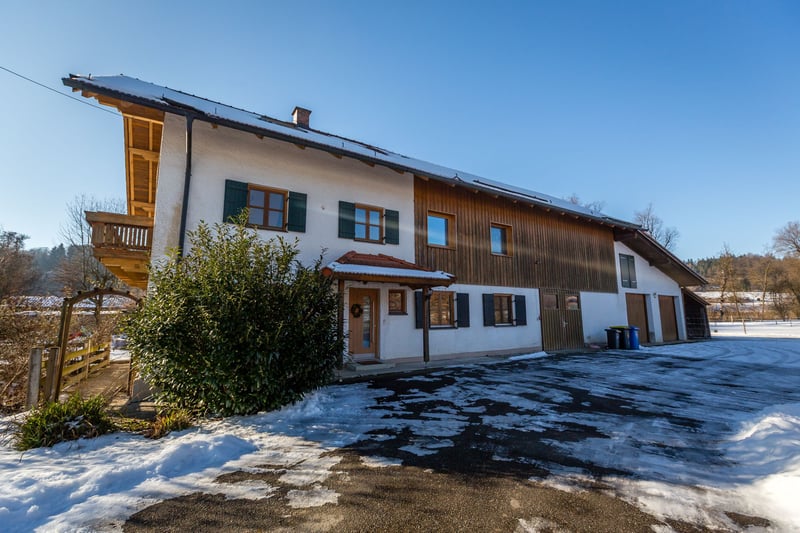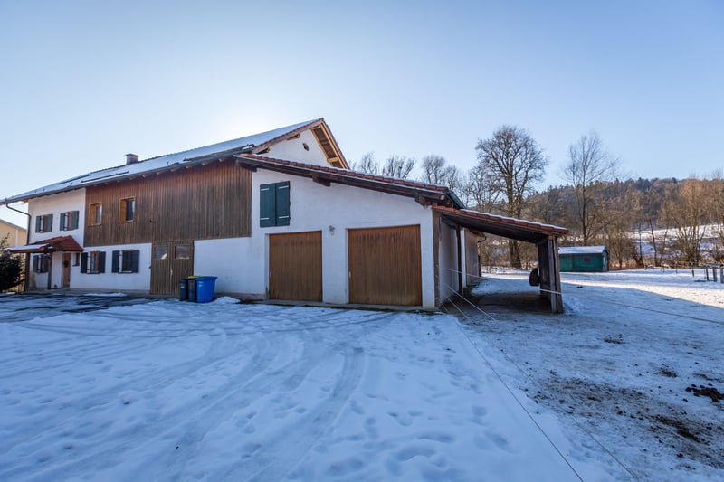 Einziehen, wohlfühlen und losreiten Dieses wunderschön gelegene Anwesen mit besonderem Charme liegt in freier Dorfrandlage und ist bereits ideal für die Pferdehaltung ausgelegt. Darüber hinaus eignet es sich hervorragend für Selbstversorger, Freiberufler oder Kleingewerbe – oder einfach als außergewöhnliches Familienzuhause auf dem Land. Direkt an der Grenze zu Oberbayern gelegen und mit Anschluss an die A94 ist München in etwa einer Stunde erreichbar. Kurzbeschreibung - idyllische Außenbereichslage am Türkenbach mit altem Laubbaumbestand - nur ein direkter Nachbar - ca. 11.006 m² arrondiertes, ebenes Grundstück - vollständig eingezäunter Pferdebereich mit befestigtem Paddock, Koppeln, Trail und Stallungen - Reitplatz 20 × 40 m mit hochwertigem Reitsand, Bewässerung und Flutlicht - Gemeindestraße am Grundstück; B20 ca. 100 m Luftlinie (höher gelegen, kaum hörbar) - Wohnhaus in Massivbauweise (Grundbaujahr ca. 1955), laufend modernisiert und erweitert - umfangreiche Sanierungen (u. a. Dach- und OG-Ausbau, Fenster, Haustüre, Bäder, Kleinkläranlage) - kein Renovierungsstau; wesentliche Wohnbereiche modern gestaltet - Kombination aus massiven Außenwänden (bis ca. 48 cm) und moderner Holzständerbauweise - Parkett-, Dielen-, Fliesen- und Laminatböden - Flüssiggas-Zentralheizung, Fußbodenheizung in Küche, Esszimmer und Bädern - Kachelofen mit Herd und Backrohr (autark nutzbar) sowie zusätzlicher Holzofen - öffentlicher Wasseranschluss und eigene Kleinkläranlage - großer Lagerbereich mit Ausbaupotenzial Raumaufteilung Wohnhaus: - EG: großes Wohnzimmer, offene neue Küche mit Esszimmer, neues Bad mit bodengleicher Dusche, Wintergarten (unbeheizt), überdachte Terrasse - OG: vier Zimmer, kleines Bad mit Wanne und WC - DG: Studio 1 neu ausgebaut; Studio 2 ausbauvorbereitet - KG: Vorrats- und Heizraum (teilunterkellert) Nebengebäude und Außenanlagen: - großzügige Werkstatt (ca. 48 m²), aktuell als Sattelkammer genutzt - zwei Garagen, eine mit elektrischem Rolltor und E-Ladestation - isolierte Scheune/Lagerhalle (ca. 55 m²) für Heu, Stroh, Pferdeanhänger - zusätzliche Lagerflächen - Reiterstübchen mit Blick auf den Reitplatz - uriges Jagdstüberl mit Keller - Unterstände, eingefriedeter Blumengarten, Gartenteich, Feuerstelle, Obstbäume - Flüssiggastank PV-Anlage - 9,9 kWp PV-Anlage mit 19,5 kWh Batteriespeicher (Bj. 2019) - Wallbox Spezielle Informationen zur Pferdehaltung: Der ausgebaute Pferdebereich bietet Platz für etwa 4 Pferde in Paddockboxen oder Offenstallhaltung. Der Pferdebereich wurde mit viel Sachverstand und Liebe zum Detail angelegt und bietet optimale Bedingungen für eine artgerechte, ganzjährige Haltung. - direkter Zugang von Boxen zu Paddock und Koppeln, optional über Trail - neu und Shetland-sicher eingezäunt - Stallgebäude mit betoniertem Boden, Waldbodeneinstreu und Paddockplatten/Gummimatten - befestigter, drainierter Paddock (kein Matsch) - frostsichere beheizte Tränke - überdachter Putzplatz, Waschplatz und betonierte Mistplatte - professionell gebauter Reitplatz mit Oberflächenentwässerung, Spezial-Reitsand mit Bewässerung und Flutlichtmast für gute Trainingsmöglichkeiten - direkter Zugang ins weitläufige Ausreitgelände, Ausritte bis zum Inn möglich - diverse Reitvereine in nur 10-20 Minuten erreichbar - Reiterstüberl - Scheune mit ausreichend Platz für Heu, Stroh, Pferdeanhänger und Reitplatzplaner - zuverlässige Heu-/Strohlieferanten und Abholer Pferdemist vorhanden Hinweis zur Lage am Bach Obwohl das Anwesen direkt am Türkenbach gelegen ist, läuft der Bach deutlich (mehrere Meter) unterhalb des Grundstücks. Daher war das Anwesen weder während des Hochwassers 2016 noch während der Überflutungen 2024 in irgendeiner Weise betroffen. Energieausweis Verbrauchsausweis, gültig bis 03.04.2032 Wesentlicher Energieträger: Flüssiggas und Stückholz Baujahr 1955 Energieklasse G Zur Umgebung Untertürken ist ländlich geprägtes Dorf in der niederbayerischen Gemeinde Zeilarn. Einkaufsmöglichkeiten finden Sie in Stammham (ca. 3 km, Dorfladen, Metzgerei), sowie in den Märkten Marktl (ca. 5 km) und Tann (ca. 7 km) mit Lebensmittelgeschäften, Discountern, Bäcker, Metzger, Apotheken, Ärzten, Banken usw. Die Umgebung bietet vielfältige Sport- und Freizeitmöglichkeiten (z.B. Wanderwege, Radwege, Badeseen, Golfplätze, Thermen usw.) Entfernungen von Untertürken: Simbach/Inn ca. 12 km Braunau/Oberösterreich ca. 15 km Burghausen ca. 15 km Eggenfelden ca. 20 km Kreisstadt Pfarrkirchen ca. 23 km Mühldorf ca. 34 km Bad Füssing ca. 38 km Bad Griesbach (Golf und Thermen) ca. 40 km Passau ca. 63 km Chiemsee ca. 65 km Salzburg ca. 75 km Flughafen München ca. 104 km München ca. 110 km Über die A94 (Anschluss Marktl, ca. 8 km) ist München in etwa einer Stunde erreichbar. Zusätzlich besteht ab dem Bahnhof Marktl (ca. 5 km) eine sehr gute und direkte Zuganbindung nach München – ideal für Pendler. Die derzeitigen Eigentümer arbeiten selbst in München und pendeln die Strecke mehrmals pro Woche.