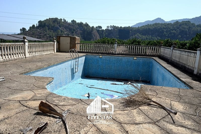 Majestic farmhouse between Xàtiva and Genovés, in the heart of the Cova Negra Natural Park and next to the River Albaida, an idyllic retreat with a fascinating history. Originally, King Alfonso XIII gave the property to Doctor Sumsi, his personal physician, who built the house in 1905. Since then, this country house has been home to important families and is now waiting to become the setting for new memories. The extensive grounds include 84,927 m2 of orange groves, which are irrigated by drip irrigation and provide a constant source of income, as well as 144,206 m2 of pine forests, scrubland and much more, inviting you to take peaceful walks. The 360-degree panoramic views of the Puig mountain, the river, the orange groves and the extensive pine forests and scrubland that surround the property create an atmosphere of peace and nature; a very tranquil area, ideal for enjoying country life with all modern amenities. In addition, the place offers a variety of outdoor activities such as hiking, climbing, cycling and fishing, ideal for nature and sports lovers. The house combines the tranquillity of the countryside with proximity to the main services: Train station and bus stops, pharmacies, supermarkets and stores, restaurants and bars, schools and colleges, health center and hospital are only around 5 minutes away by car. This farmhouse is more than just a property, it is an opportunity to live in a stunning natural setting, surrounded by history and with endless possibilities: walk through your own orange groves, explore the pine forests and the maquis or enjoy the tranquility of an afternoon on the terrace with spectacular views. This place is ideal for anyone looking for a life close to nature, whether as a family residence, country hotel or even a center for equestrian activities. With its large plot of land, the country house offers ideal conditions for keeping horses. There is enough space for a riding arena and paddocks. Direct access to the river and to Alboy - an ideal riding area for nature lovers. There is already a newly built, completely covered agricultural area next to the farmhouse - ideal for installing horse boxes. There is sufficient space for a feed store, equipment etc. -Year of construction: 1905 -Plot area: 299,133m2/house area 578m2 -Ground floor: -A cozy and spacious open kitchen with dining area, ideal for family gatherings. -A charming patio -2 multipurpose rooms. -One bathroom with shower -Large covered terrace, ideal for al fresco dining -An antique coal stove adds a touch of nostalgia -1 toilet -6 bedrooms -Dining room with fireplace -2 open loft spaces, versatile rooms that can be converted into studios, playrooms or creative workspaces. -Renovated windows and roof on the first floor -The rest of the house awaits your personal touch during renovation -Drinking water -Electric lighting and solar panels, ensuring sustainability and savings -10x6 tiled swimming pool The house is in a solid condition and only needs to be modernized. Roofs etc. have already been renewed! For further information please call +34 622 509 702 We speak German, English, Spanish!
