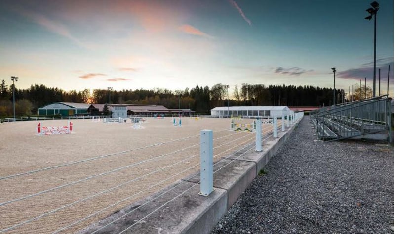 First-class equipped and traditional equestrian facility in the best location of Lamprechtshausen. Founded around 20 years ago, this facility has established an excellent reputation in the international equestrian industry. The area has been hosting prestigious show jumping competitions and renowned events for many years. Boarders also find a very good place for their animals here. The approximately 5-hectare area is located in the municipality of Lamprechtshausen, nestled in the green landscape of the northern Flachgau. The town center is only about 2 km from the facility, and the good local infrastructure offers everything for daily needs. The location is ideally accessible at the border to Upper Austria and Germany, with only about 25 minutes by car from the city of Salzburg. There are 4 high-quality equipped stable blocks with boxes for approximately 85 horses, which can be expanded with tent boxes during tournament operations. Two riding arenas with sand-textile surfaces, a dressage arena, and a jumping arena provide excellent training opportunities. The offer for riders and horses is complemented by a cozy rider's lounge, outdoor paddocks, heated tack rooms, and a lungeing area for up to 5 horses. In addition to an administration building with offices, there are 2 apartments available for staff accommodation, which can also be rented out for other purposes. The television and judges' tower provide the necessary conditions for national and international competitions. The entire property is in impeccable condition and can continue to operate as a professional facility for equestrian sports. The approximately 5-hectare area is located in the municipality of Lamprechtshausen, nestled in the green landscape of the northern Flachgau. The town center is only about 2 km from the facility, and the good local infrastructure offers everything for daily needs. The location is ideally accessible at the border to Upper Austria and Germany, with only about 25 minutes by car from the city of Salzburg.