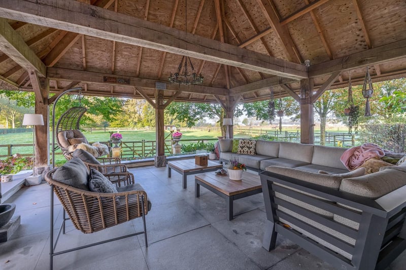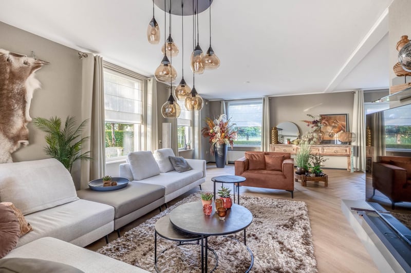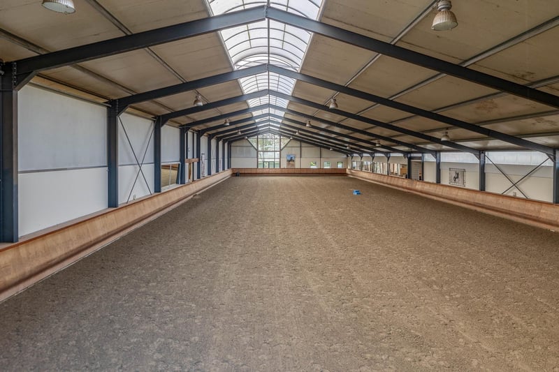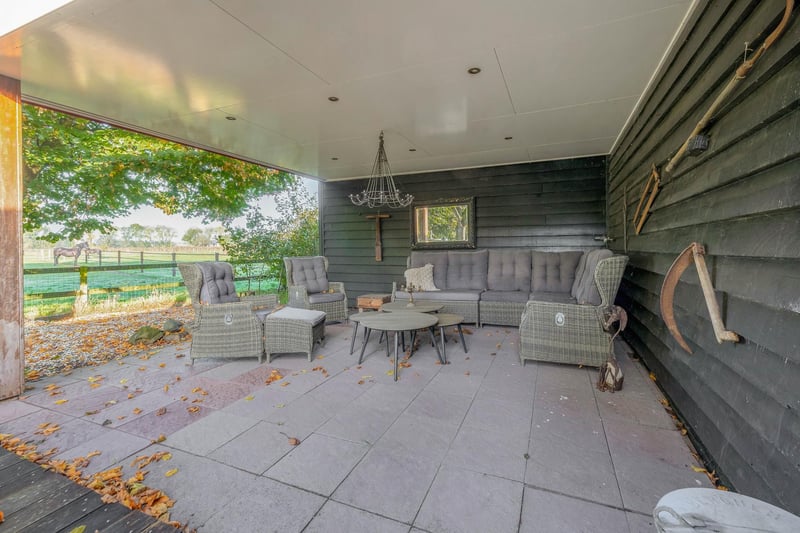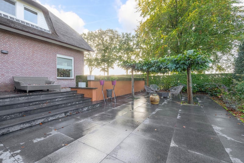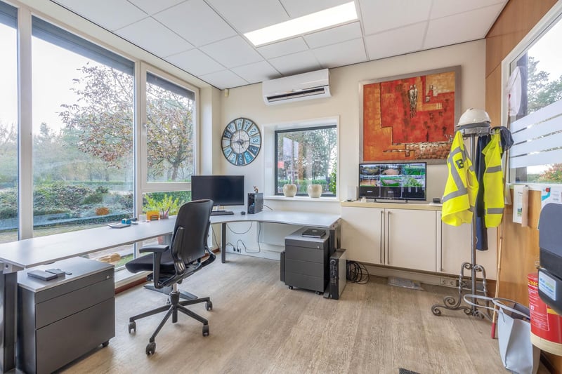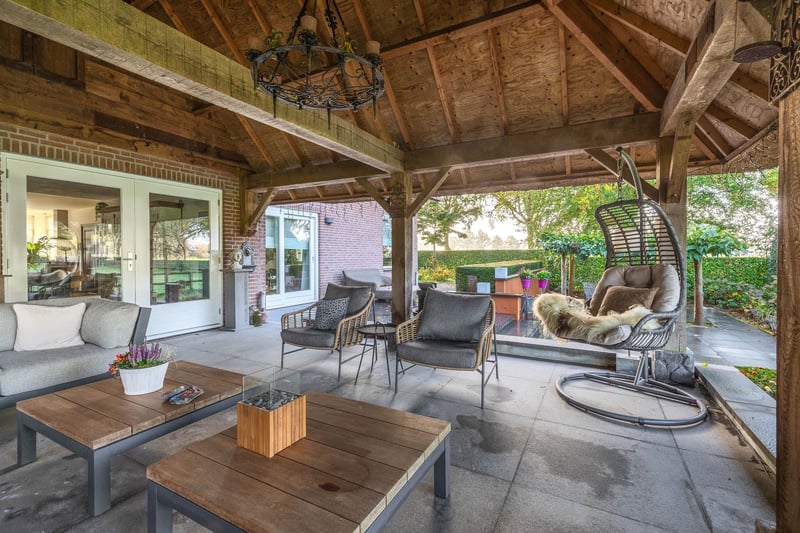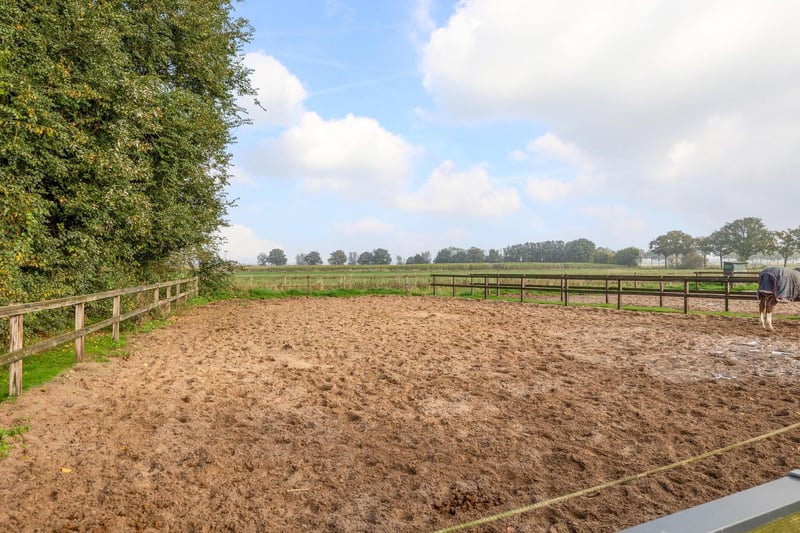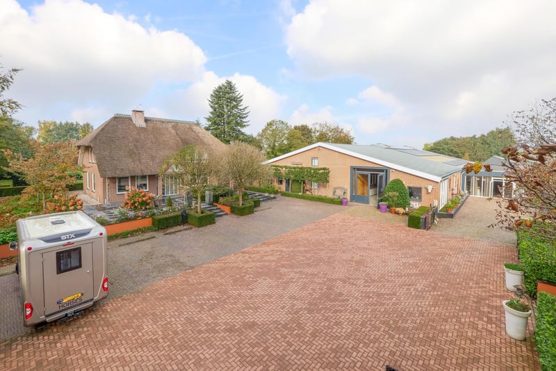 Complete equestrian accommodation including a detached house, flat, office area, a riding hall with indoor arena and a total of 31 horse boxes, an outdoor arena, covered treadmill, lunging circle, several paddocks, pasture, a storage/field barn and a detached shed. All this is situated on a spacious plot of over 4 hectares and offers plenty of opportunities for the professional horse lover! HOUSE The detached house includes an attractive living room, living kitchen, utility room and a cellar on the ground floor. The 1st floor has 3 generous bedrooms and a spacious bathroom. An attic space is located on the 2nd floor. The surrounding garden is beautifully landscaped and equipped with lawn, planting, trees and several terraces. Ground floor: The entrance hall features PVC flooring in herringbone pattern, partly brickwork/partly stucco walls and a stucco ceiling. The hall provides access to the living room, meter cupboard and via a fixed staircase there is access to the 1st floor. The hall has a PVC floor in herringbone pattern, partly masonry/ partly stucco walls and a stucco ceiling. The hall provides access to the living room, meter cupboard and via a fixed staircase there is access to the 1st floor. The spacious living kitchen is also equipped with the same PVC floor in herringbone pattern. The walls and ceiling have been plastered. The kitchen layout is in a U-shape with a storage island. The kitchen is further equipped with a dishwasher, combination microwave oven, sink, 5-burner gas hob and fridge. From the kitchen, there is access to the cellar. The cellar is fully tiled and equipped with a cuckoo and a window. There are fixed shelves and a wooden staircase. A hatch provides access to the space under the house. The practical utility room is partly tiled and the floor is covered with a tiled floor which has underfloor heating. Practical sliding cupboards provide storage space. This is where the central heating combi boiler, the underfloor heating unit and the connections for the washing equipment are located. From the utility room, there is access to the toilet room and the yard. The toilet room is fully tiled and further equipped with a hand basin and a floating toilet. 1st floor: The generous landing provides access to 3 spacious bedrooms and a bathroom. Bedroom I is carpeted, with sprayed walls and a sprayed ceiling. From this room, a fixed staircase provides access to the storage attic. The room further features a practical built-in wardrobe. Bedroom II is also finished with carpeted floors, sprayed walls and a sprayed ceiling. Fixed sliding wardrobes provide storage space. The spacious bathroom is fully tiled and further equipped with a bathtub, walk-in shower, washbasin with cabinet and a design radiator. The toilet room is fully tiled and equipped with a floating toilet. The very spacious master bedroom was formerly divided into two bedrooms. This is relatively easy to realise again. The room is finished with carpeting, spachtelputz walls and a sprayed ceiling. A practical closet and sliding wardrobes provide storage space. Many windows provide plenty of natural light. Garden: The garden surrounding the house is beautifully landscaped and well maintained. The garden is laid out with borders with perennials, trees, lawn and several terraces. At the front is a terrace, at the rear the terrace has a very beautiful and attractive canopy. This canopy is made of oak and has a glass wall. The roof is covered with reeds. The terrace offers beautiful views of the meadows. In short, a lovely place to be! A little further on is an aviary and another covered terrace. From here, too, there is a beautiful view of the meadows. EQUESTRIAN ACCOMMODATION The equestrian accommodation includes a detached riding hall with an indoor arena (approx. 20mtr. x 60mtr), a horse stable with a reception area and a total of 31 horse boxes divided over 2 stable areas, an office area, workshop and an adjoining flat. The stable section on the left side is equipped with 16 horse boxes. These stalls have partly hardwood / partly powder-coated and partly galvanised front walls. The partitions are of masonry and partly occupied. The doors the front walls are hinged. 2 stalls are equipped with partly plastic / partly galvanised front and partition walls and sliding doors. There is also 1 pony stall. There are 2 washing areas and a solarium. The washing areas are equipped with hot and cold water supply. From the stable area, there is access to a hall where the 2 saddle rooms are located. From this hall, there is also access to the reception area and indoor arena. The spacious reception area is finished with a tiled floor, part masonry/part stucco walls and a system ceiling. There is a toilet block consisting of a toilet room, disabled toilet and a portal with 2 washbasins. There is also a complete kitchen. The kitchen is equipped with an oven, combination microwave oven, dishwasher, built-in coffee maker, sink and hob. n the reception area, the meter cupboard is located. This is where the central heating combi boiler is located. The room also has an alarm system. From the reception area, there are lovely views of the indoor arena. French doors provide access to the yard. The adjoining indoor arena (approx. 20mtr. x 60mtr.) is equipped with an ebb and flow floor and a hardwood arena surround (Horsmans). A skylight in the ridge and windows in the end wall provide natural light and ventilation. Furthermore, the arena is equipped with a mirror wall. A rolling door at the rear wall provides access to the yard. From the indoor arena, there is access to the stable area on the right. This stable area has 13 horse stalls. These stalls (approx. 4mtr. x 3mtr.) are fitted with partly powder-coated / partly galvanised and hinged doors. The stalls are also equipped with an exterior hatch. There is also a tack room, washing area and solarium here. From this stable area, there is access to a canteen. This canteen is finished with l
