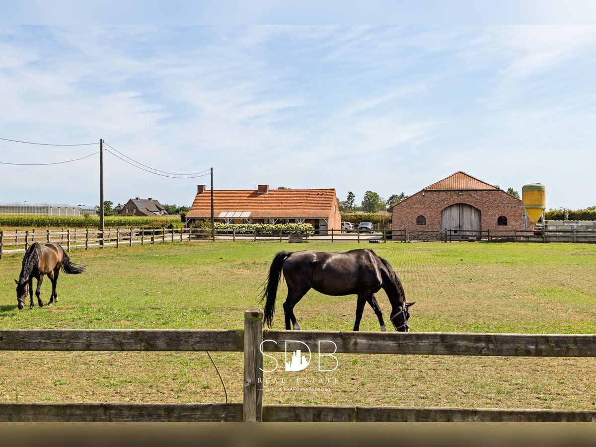 Te Weelde, ein ländlicher Stadtteil von Ravels, gelegen in der Provinz Antwerpen, finden wir dieses ländliche Wohnhaus mit Pferdeeinstellmöglichkeiten und Wiesen auf 25.910 m². Gelegen in den Kempen, einer der grünsten Regionen Flanderns, strahlt diese Umgebung ländliche Ruhe aus, mit ausgedehnten Wäldern und Heidegebieten in Gehweite. Beim Betreten des Hauses fällt sofort auf, dass sich alle Wohnräume im Erdgeschoss befinden. Dadurch ist das Haus äußerst zugänglich und praktisch in der Nutzung. Dennoch bietet ein vollwertiger Dachboden die Möglichkeit für zusätzlichen Wohnraum. Das Haus umfasst eine Eingangshalle, die Zugang zum geräumigen Wohnzimmer mit verschiedenen Fensterfronten bietet, wodurch man die natürliche Lichtdurchflutung in vollen Zügen genießen kann. Anschließend trifft man auf die lichtdurchflutete Küche, die mit einer Kücheninsel ausgestattet ist, und während des Kochens kann man die grasen Pferde auf den Wiesen in vollen Zügen genießen. An die Küche schließt sich ein gemütlicher Essbereich an. Neben der Küche befindet sich ein Abstellraum. Weiterhin umfasst das Haus 2 vollwertige Schlafzimmer. Ein drittes Zimmer kann flexibel als zusätzliches Schlafzimmer und/oder Hobbyraum genutzt werden. Zudem gibt es einen Wohnraum, der als Büro dient. Das Badezimmer ist mit einem Einzelwaschbecken und einer Dusche ausgestattet. Außen und angrenzend an die Terrasse befindet sich ein gemütlicher Wohnbereich im Freien mit Pool und Familiengarten. Und vor allem mit einem herrlichen Blick auf die Pferde um einen herum! Über einen geschlossenen Eingang gelangt man zur beeindruckenden Auffahrt, die entlang der Wiesen verläuft. Darüber hinaus ist dieses ländliche Haus mit einer Reitanlage ausgestattet. Diese Anlage verfügt über ein isoliertes Stallgebäude mit 9 Boxen, 2 Putzplätzen inkl. Solarium, Sattelkammer und verschiedenen multifunktionalen Räumen. In Bezug auf die Trainingsmöglichkeiten steht eine drainierte Außenreitbahn von 20x60 m zur Verfügung, eine Longe-Circle und ein Schrittmaschine für 4 Pferde. Schließlich gibt es 2,3 Hektar Wiesen, die vollständig mit einem Holzzaun eingezäunt und in verschiedene Parzellen unterteilt sind. Zudem sind Paddocks mit einem Laufstall und automatischen Tränken vorhanden. Das Anwesen ist durchdacht und kompakt angelegt, wobei alle Einrichtungen optimal aufeinander abgestimmt sind. Dies macht die tägliche Verwaltung einfach und effizient, mit einem reibungslosen Workflow rund um die Pferde. Das Eigentum ist mit einem fortschrittlichen Kamerasystem ausgestattet, ein exklusives Plus, das zur Privatsphäre und Sicherheit für Mensch und Tier beiträgt. Nicht nur die Unterkunft selbst verfügt über die notwendigen Trainingsmöglichkeiten, sondern auch die umliegende Umgebung. Das Haus liegt einen Steinwurf vom LRV in Weelde und der Reithalle Ravels entfernt, wo sich die größte Innenreitbahn Belgiens befindet. Zudem ist es fußläufig zu ausgedehnten Wäldern, Wander- und Reitwegen gelegen. Dieses Eigentum bietet eine Vielzahl von Möglichkeiten, sich professionell im Pferdesport auszudrücken. Ebenso kann sich hier jeder Lebensgenießer zu Hause fühlen, denn Ruhe, Privatsphäre und eine familiäre Atmosphäre sind die absoluten Vorzüge dieses wunderschönen Anwesens. Möchten Sie mehr Informationen zu diesem wunderschönen Eigentum?! Zögern Sie nicht, uns zu kontaktieren. Wir erzählen Ihnen gerne mehr! www.sdb.realestate
