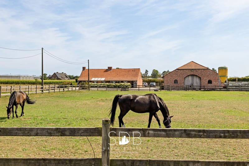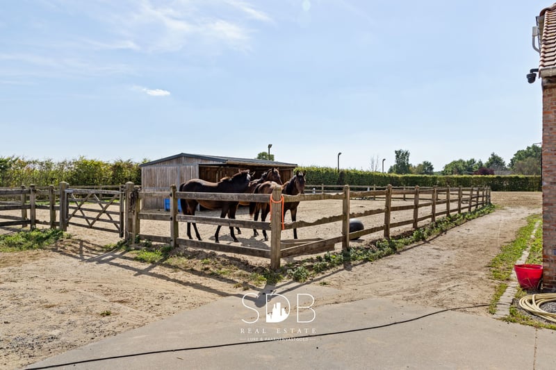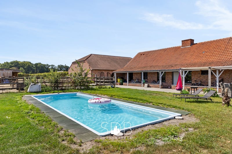 Te Weelde, a rural district of Ravels located in the province of Antwerp, we find this countryside property with equestrian facilities and grasslands on 25,910 m². Situated within the Kempen, in one of the greenest regions of Flanders, this area exudes rural tranquility, with extensive forests and heathlands within walking distance. Upon entering the property, it immediately becomes apparent that all living spaces are located on the ground floor. This makes the home extremely accessible and practical to use. Nevertheless, a fully-fledged attic space offers the possibility for additional living accommodation. The property includes an entrance hall that provides access to the spacious living room with various windows, allowing you to fully enjoy the natural light. Adjacent to this is the light-filled kitchen, which is equipped with a kitchen island, and while cooking, you can fully enjoy watching the grazing horses in the meadows. A cozy dining area connects to the kitchen. Next to the kitchen is a storage room. Furthermore, the property comprises 2 full-sized bedrooms, with a 3rd room that can be freely arranged as an extra bedroom and/or hobby room. Additionally, there is a living space that serves as an office. The bathroom is fitted with a single washbasin and a shower. Outside, adjacent to the terrace, is a comfy outdoor living area with a swimming pool and family garden. And especially with a stunning view of the horses around you! Through a private entrance, you reach the impressive driveway along the grasslands. This rural property is equipped with equestrian facilities. This facility includes an insulated stable building equipped with 9 boxes, 2 grooming areas including a solarium, a tack room, and various multifunctional spaces. In terms of training facilities, there is a drained outdoor arena available measuring 20x60m, a lunge circle, and a horse walker for 4 horses. Finally, there are 2.3 hectares of grasslands fully enclosed with wooden fencing and divided into various parcels. There are also paddocks equipped with a run-in shed and automatic waterers. The estate is thoughtfully and compactly designed, with all amenities optimally connected. This makes daily management simple and efficient, with a smooth workflow around the horses. The property is equipped with an advanced camera surveillance system, an exclusive surplus that contributes to privacy and safety for both humans and animals. Not only does the accommodation itself have the necessary training facilities, but the surrounding area does as well. The property is a stone's throw from the LRV in Weelde and the Ruiterhal Ravels, where the largest indoor arena in Belgium is located. Additionally, it is within walking distance of extensive forests, walking, and riding paths. This property offers a range of possibilities to express yourself professionally in the equestrian sector. Moreover, every life enthusiast can feel at home here, as peace, privacy, and a family atmosphere are the absolute assets of this beautiful property. Would you like more information about this beautiful property?! Do not hesitate to contact us. We would be happy to tell you more! www.sdb.realestate