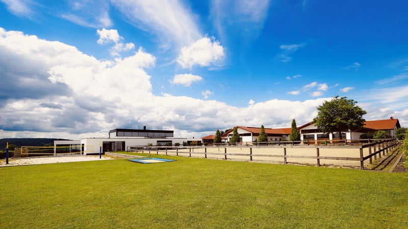 Dieses luxuriöse Anwesen nordöstlich Frankfurt verbindet anspruchsvolles Wohnen mit einer erstklassigen privaten Reitanlage. Die moderne Villa mit Wellnesslandschaft, Pool und großzügigen Wohnbereichen bietet ein Ambiente, das keine Wünsche offenlässt. Die hochwertig ausgestattete Reitanlage umfasst Paddockboxen, einen kleinen Offenstall, weitläufige Koppeln sowie Reitplätze im XXL-Format. Im Kopfbau der Reithalle befinden sich eine Betriebsleiterwohnung und ein stilvolles Gästeappartement – ideal für Familie, Personal oder Besucher. Ein Anwesen für Menschen, die Exklusivität, Ruhe und Pferdeliebe auf höchstem Niveau vereinen möchten. Lage: Hessen, Großraum Frankfurt, nordöstlich, gut angebunden an die A66 Die angegebene Lage ist nicht mit dem tatsächlichen Standort identisch um die Identität nicht preiszugeben. Sonstiges: EnEv ist in Vorbereitung. Der Kaufpreis versteht sich zzgl. 3,57% Maklercourtage inkl. MwSt. Das Inventar und die Maschinen sind nicht im Kaufpreis enthalten. Die angegebene Lage ist nicht mit dem tatsächlichen Standort identisch um die Identität nicht preiszugeben. Gerne stellen wir Ihnen ausführliche Informationen zur Verfügung. Bitte nehmen Sie Kontakt mit uns auf. Vielen Dank. Weitere Bilder dieses Objektes und weitere Immobilienangebote finden Sie auf www.wir-immobilien.com W.I.R. Immobilien - Ihr Fachimmobilienmakler für Reitsportanlagen und landwirtschaftliche Anwesen
