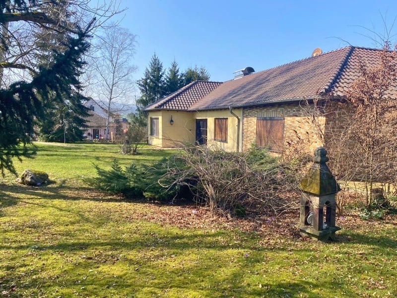 Welcome to this exceptional estate in Witzenhausen, perfectly combining dream living with professional horsekeeping. Located in a peaceful, natural setting, this well-maintained riding farm offers everything horse enthusiasts could wish for. The property impresses with a thoughtfully designed equestrian infrastructure, a park-like garden, and a cozy residence that provides ample space for the entire family and guests. Every detail has been carefully considered to blend functionality with a welcoming atmosphere. Highlights at a glance: - Equestrian Facilities: Professional riding arena (16x32 m) with sand/ fleece surface and arena mirror. - 10,000-liter rainwater cistern for arena irrigation and utility water. - 14 spacious stables – 9 paddock boxes plus 5 additional outdoor boxes. - The stable area is complemented by: * Tack room, utility room, separate WC, and a large hay and straw storage above the stables. - Property approx. 6,359 m² – approximately 3,000 m² of paved turnout areas for the horses. - Photovoltaic system with attractive feed-in tariff (details in the exposé). - Central oil heating. Living Comfort: The house, built in 1970 with solid construction, offers a total of approximately 410 m², including about 336 m² of living space and 74 m² of utility area. The layout spans the ground floor and basement, providing a total of 11 rooms. In the basement, there are two separate apartments totaling around 126 m², offering flexible use options such as guest accommodation, staff housing, or rental income. Additionally, the basement includes several functional auxiliary rooms, enhancing the practicality of the property, such as: - Garage with space for up to 4 vehicles, - Workshop, - Heating room, - Storage rooms, - Cloakroom. Besides the integrated garage, additional outdoor parking spaces are available for several vehicles. Location: The estate is situated in a quiet district of Witzenhausen, nestled in the picturesque landscape of the Werra Valley in the Werra-Meißner district. Despite its peaceful, natural setting, the property has excellent transport connections. The nearby A7 motorway and federal road B80 provide access to Kassel and Göttingen in about 30 minutes. The local train station offers hourly connections in both directions. The village itself features a primary school, kindergarten, and a grocery store. Forest and riding trails start directly from the estate. Key Data & Conditions: - Purchase Price: €980,000 - Commission: 2% plus applicable VAT (to be paid by the buyer) - Available from: By arrangement - Energy Certificate: Available for viewing Important Notes & Viewing: Please understand that, to protect the owners' privacy, detailed documents and the exact address will only be provided upon submission of your full contact details. Viewing appointments: Visits are only possible by prior arrangement and upon presentation of proof of funds or a financing confirmation. Request the Exposé: The complete exposé with additional images, floor plans, and technical data can be requested directly on our website: www.funken-reitsportimmobilien.ch