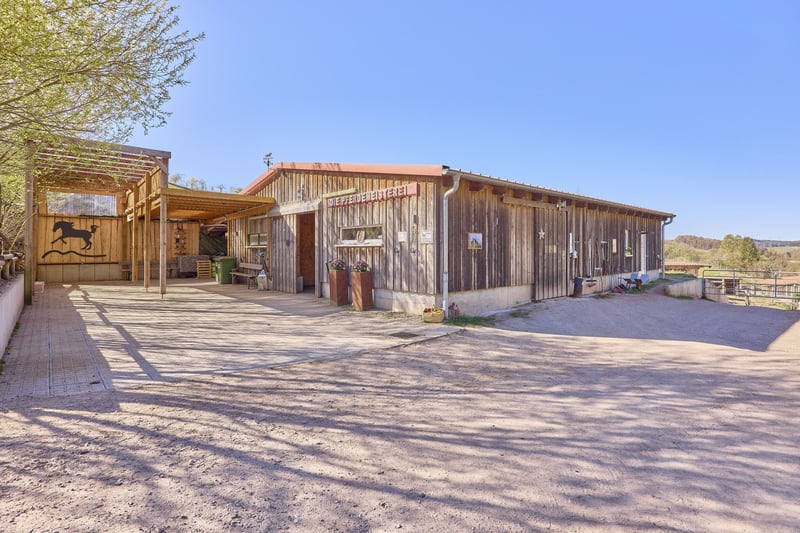 Bitte füllen Sie das nachfolgende Kontaktformular vollständig aus bevor Sie uns telefonisch kontaktieren. Vielen Dank für Ihr Verständnis! Reitanlage in Rheinland-Pfalz zu verkaufen – Aktivstall, modernes Wohnhaus, Reithalle & artgerechte Pensionspferdehaltung! Objektbeschreibung: Diese neuwertige und durchdacht angelegte Reitanlage in Rheinland-Pfalz im Donnersbergkreis bietet ideale Voraussetzungen für pferdegerechtes Leben und Arbeiten in ruhiger, naturnaher Umgebung. Im Zentrum des Anwesens befindet sich ein modernes Einfamilienhaus im Landhausstil, das 2016 erbaut wurde. Mit 161 m² Wohnfläche und als Niedrigenergiehaus KfW 70 bietet es zeitgemäße Architektur, hochwertige Materialien und ein gemütliches Wohnambiente. Es ist der ideale Lebensmittelpunkt – sowohl für die Betreiber:innen der Reitanlage als auch als komfortables Zuhause für die ganze Familie. Das Wohnhaus ist glücklicherweise etwas versetzt von der Reitanlage erbaut worden, sodass man genügend Privatsphäre genießt. Das Herzstück der Reitanlage bildet der rund 6.000 m² große HIT-Aktivstall, der 2019 mit 7 goldenen Sternen der LAG ausgezeichnet wurde. Hier finden bis zu 30 Pferde in einem gemischten Herdenverband optimale Bedingungen vor: überdachte Heu- und Wasserstationen (beheizt), eine großzügige Liegehalle, Sandwälzplatz, Barhufpfad sowie ein durchgehend matschfreier Auslauf mit Spiel- und Ruhebereichen. Für Reiter:innen ist die Anlage durchdacht ausgestattet: eine beheizte, alarmgesicherte Sattelkammer mit persönlichem Spind pro Pferd, ein Putzplatz mit Waschbox und Solarium sowie eine zweite Außendusche sorgen für Komfort im Alltag. Ein gemütliches Reiterstübchen mit Küchenzeile, Kamin, Leseecke und Sonnenterrasse mit Blick auf die Anlage lädt zum Verweilen ein oder kann für Seminare genutzt werden. Die Trainingsmöglichkeiten lassen keine Wünsche offen: eine helle, luftige Reithalle (20×40 m, 2022) und ein sanierter Roundpen (Ø 19 m, 2023) bieten ideale Bedingungen für das tägliche Training. Direkt angrenzend beginnt ein weitläufiges Ausreitgelände am Rande des Pfälzer Waldes mit abwechslungsreichen Wegen für Einsteiger und Fortgeschrittene. Das gesamte Anwesen erstreckt sich über ein Grundstück von 66.409 m² im Eigentum. Weitere gepachtete Flächen ergänzen die Anlage ideal, insbesondere für Weidewirtschaft und zusätzliche Flexibilität. Diese Reitanlage vereint hochwertiges Wohnen, professionelle Pferdehaltung und naturnahe Freizeitmöglichkeiten – ein Rundum-Paket für Pferdeliebhaber:innen, die Komfort, Funktionalität und Qualität schätzen. Ausstattung: Wohnhaus: - Baujahr: 2016 - Wohnfläche: 161 m² - Küche: Landhausküche aus 2016, Induktionsherd und Gaskochfeld - Heizung: Gas, Brennwerttherme, Solarthermie zur Warmwasserunterstützung, Fußbodenheizung, zusätzlicher Kaminofen - Bauweise: Holzständerbauweise, Niedrigenergiehaus KfW 70 - Fenster: Dreifachverglasung, Kunststoff, Sprossenfenster - Boden: Parkett und Fliesen - Unterkellerung: Nicht unterkellert - Garten mit Sonnenterrasse und überdachter Lounge - KFZ Stellplätze auf dem Grundstück HIT-Aktivstall: - 2019 mit 7 goldenen Sternen der LAG ausgezeichnet! - Baujahr: 2016 - Auslauffläche für Pferde: ca. 5.600 m² - Pferdeanzahl: 30 Pferde (davon 5 Paddockboxen zur Integration) - Kraftfutterautomat, Selektionstore, angrenzende Weidefläche, mehrere überdachte Wasser- und Heustationen (beheizt, Leitungswasser) - Großzügige Liegehalle mit angrenzender überdachter Mistplatte - Mehrere Sandwälzplätze, Barhufpfad mit unters. Bodenbeschaffenheiten - ca. 650 Meter langer Trail Reithalle: - Baujahr: 2022, Panoramareithalle - Reitfläche: 20 x 40 Meter - Boden: Nordseeboden - Hersteller: Hörmann (Leimbinder, Stahl) - Beregnungsanlage vorhanden Wirtschaftsgebäude: - Baujahr: 2016 - Sattelkammer (einbruchssichere Tür WK 2 mit elektrischem Schließzylinder) - Überdachte Putzplätze Indoor & Outdoor und Waschbox (Warmwasser) - Großes Reiterstübchen / Seminarraum mit Küche und WC, Technikraum, Deckenkammer, Futterkammer Gastpferdebereich (neben Reithalle): - Baujahr: 2016 - 4 Paddockboxen, wird derzeit aber als Offenstall genutzt (bietet jedoch eigentlich eine separate Stall-Einheit mit eigener Sattelkammer) - Ideal für Gastpferde z.B. bei Lehrgängen oder als Reha-Bereich - befestigter Offenstallbereich mit Heuraufe Longierzirkel: - Baujahr: 2023 - Durchmesser 19 Meter - Boden: Hackschnitzel Sand Gemisch Rundbogenhalle: - Baujahr: 2016 - Fläche: 250 m² / Platz für ca. 342 Rundballen - Geschotterter Untergrund, 3 Seiten geschlossen - Zelthalle Weiteres & Pachtflächen: - Sole-Inhalationszelt für 2 Pferde - Pferdedeckentrockner - ca. 1 ha Pachtwiesen Lage: Die Reitanlage befindet sich im westlichen Teil des Donnersbergkreises in Rheinland-Pfalz (Wartenberg-Rohrbach) – eingebettet in eine naturnahe Umgebung mit gleichzeitig hervorragender infrastruktureller Anbindung. Die nächstgelegene Autobahnauffahrt zur A63 liegt nur wenige Minuten entfernt und bietet eine schnelle Verbindung in Richtung Mainz, Kaiserslautern und zur A6. Der nahegelegene Bahnhof mit Anbindung an die Strecke Kaiserslautern–Bad Kreuznach sorgt zudem für eine gute Erreichbarkeit mit dem Zug. Die Umgebung zeichnet sich durch ein aktives, gut vernetztes Gemeindeleben aus. Trotz ihrer überschaubaren Größe bietet die Region vielfältige Vereinsaktivitäten, kulturelle Veranstaltungen und ein starkes ehrenamtliches Engagement. Von Sportvereinen über Dorffeste bis hin zu saisonalen Märkten – die soziale Struktur ist lebendig und familiär. Die landschaftlich reizvolle Lage im Nordpfälzer Bergland lädt zu Outdoor-Aktivitäten wie Wandern, Ausreiten und Radfahren ein und bietet Erholung direkt vor der Haustür. Die Nähe zur Stadt Kaiserslautern (ca. 15 Autominuten) verbindet das ländliche Leben mit den Vorteilen urbaner Infrastruktur – darunter Einkaufsmöglichkeiten, medizinische Versorgung, kulturelle Angebot