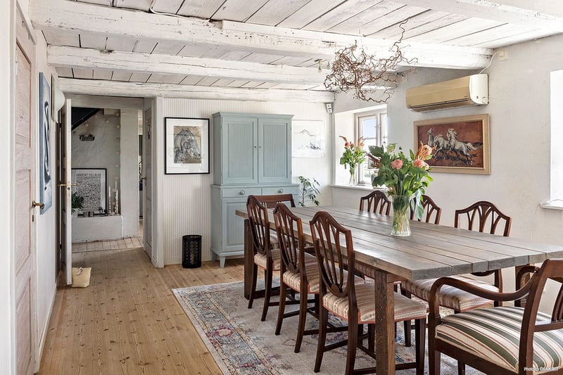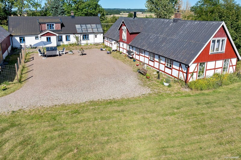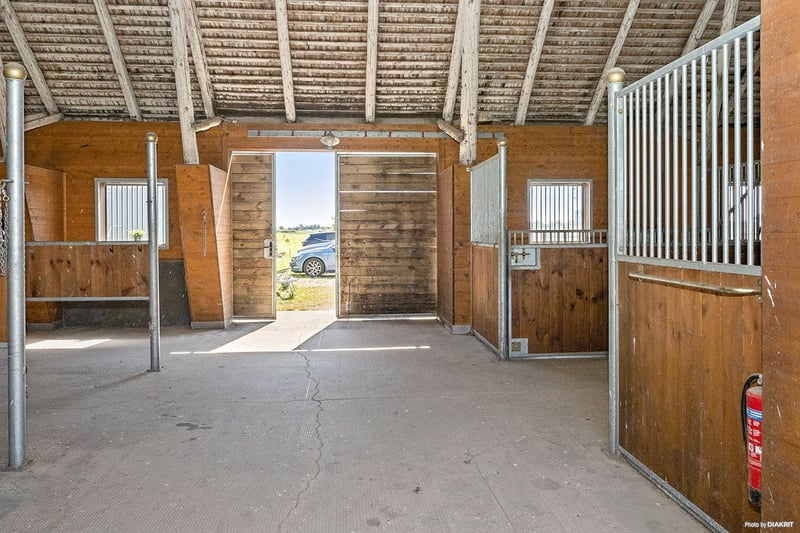 Charming residence with a spacious stable – perfect for entrepreneurship and equestrian life. A Rare Opportunity to Acquire a Complete Equestrian Property! This property offers a unique opportunity to acquire a fully equipped equestrian estate, featuring two residential homes, a modern stable building, a cozy guest cottage, and generous spaces for both humans and animals. With its beautiful farmyard, unique location in scenic surroundings, and thoughtful design, this estate is perfect for those seeking a lifestyle home where both living and equestrian pursuits are central. Not only does this property offer fantastic accommodations and equestrian facilities, but it also presents excellent opportunities for those looking to combine country living with a profitable business venture. With multiple residential buildings and a separate guest cottage, there are great possibilities for a Bed & Breakfast operation. For entrepreneurs, there is also potential to open a shop, farm store, or run a business in equine tourism, events, or workshops – the possibilities are only limited by your imagination. The beautiful garden, nature-based surroundings, and the authentic feel of the property create an experience that attracts both Swedish and international visitors. The estate is located in a popular area that, during the summer months, is a favorite destination, offering easy access to nature reserves, riding trails, the coast, and charming villages with cafés, farm shops, and artist studios. Its strategic location allows visitors to easily reach the estate by car and explore the region's rich offerings of nature and culture. This is truly a place where home, equestrian life, and business opportunities come together in an environment many dream of experiencing. Everyday Services: Despite the countryside setting, everyday services such as grocery stores, florists, veterinary clinics, pizzerias, and libraries are nearby. In summer, the harbor comes to life with restaurants and activities. Vejbystrand - Sea: 3.9 km Hjärnarp (Shops & Services): 9.9 km Torekov: 20 km Båstad: 15 km Helsingborg: 41 km Laholm: 38 km Ängelholm Airport: 12 km Copenhagen (Kastrup): 130 km A Place for Horses and Dogs to Live in Harmony – A Farm Where Every Detail is Designed with Care Welcome to an equestrian estate created to provide both humans and animals with the best of countryside tranquility and equestrian quality of life. Here, you are greeted by a warm and thoughtful environment where every detail in the stable and surroundings has been carefully planned for function, comfort, and enjoyment – catering to all horse breeds and disciplines. The generous and spacious stable features six bright stalls, ranging in size from 9.5 sqm to 13.5 sqm, all with impressive ceiling heights extending to the roof ridge. There is ample room for both movement and rest, providing the horses with a safe and calm space to reside in. The grooming areas are well-equipped with tying places, a farrier station, and a separate grooming stall – all designed to make daily care of the horses as simple and safe as possible. The stable is connected to a large barn offering generous storage space for feed, hay, and silage – easily accessible and functional for efficient stable management. Practical gates lead directly to the courtyard and further on to the pastures and paddock, making the daily routine smooth and time-efficient. A separate shed houses a well-equipped tack room with water, storage, and a changing room. For horses that thrive in freedom, there are two free-range paddocks with attached loose housing, where the animals can roam freely and enjoy the rhythm of nature. The riding opportunities are exceptional: a private trail meanders through the own woodland and out into open fields, with plenty of gravel roads in the area for varied rides. For those wishing to take a longer ride, the sea is just about 4 kilometers away – perfect for a relaxing ride with a refreshing sea breeze in the air. For those with dogs or breeding activities, a large and spacious dog run is available, with direct access to the stable via a practical hatch – a smart solution that simplifies daily routines and creates a safe and flexible environment for your four-legged friends. This is a farm for those who want to provide their horses with a home filled with care, peace, and freedom of movement – where both horses, dogs, and dreams have room to grow.