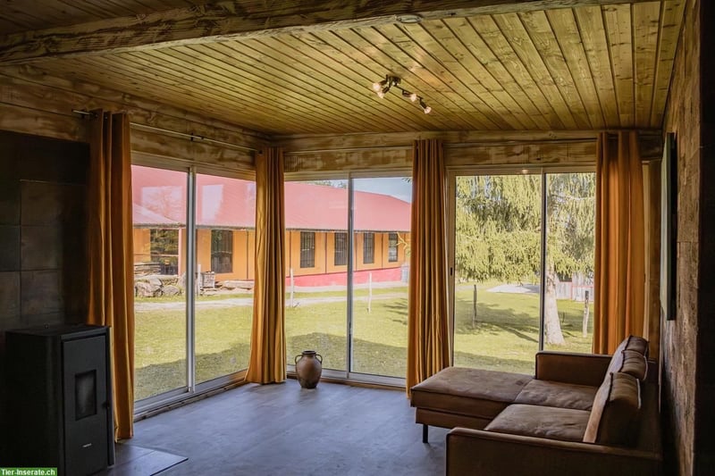 Dieses Reitanwesen in den Vogesen (Elsass) verbindet grosszügige Weideflächen, eine moderne Reithalle, Gästeunterkünfte und Naturidylle. Es kann als Gestüt, Seminar- oder Ferienbetrieb genutzt werden und bietet sich ebenso als privates Domizil an. Damit eröffnet die Immobilie vielfältige Perspektiven – von der gewerblichen bis zur privaten Nutzung – und schafft Raum für individuelle Lebens- und Wohnkonzepte. Grundstück & Flächen • 5.052 m² Grundstück (Terrain Loisir) • ca. 4 ha Weidefläche mit eigenem Bachlauf & massivem Weideunterstand • Pachtoption: zusätzliche 6,5 ha Weide für ca. 500 €/Jahr • ruhige Lage, traumhafte Reitwege direkt ab Hof Gebäude & Ausstattung • Reithalle 40 × 17 m (2011), isoliert, mit großem Seminar-/Aufenthaltsraum (180m²), Sanitär, Schlafmöglichkeiten, Blick in die Halle • Gäste-/Wohnhaus (ca. 350 m², 2005) mit Aufenthaltsräumen, Küche, Kaminzimmer, Bar, Sauna, Sanitär und 5 Schlafzimmern • Blockhaus (60 m², 2024 neu erbaut) mit Naturbaustoffen (Korkisolierung), Pelletheizung; ausgestattet mit Küche, Schlafzimmer, Bad, Wohnbereich und Nebenraum • Pferdestall mit 3–4 Boxen + Offenstall/Unterstand • Voll erschlossen: Strom, Wasser, Kanalisation • Heizsystem: Pelletheizung Lage • 10 km nach Saint-Dié-des-Vosges • 80 km nach Straßburg • 110 km nach Freiburg • 120 km nach Basel • 100 km nach Offenburg Das Anwesen liegt in Étival-Clairefontaine (Vosges, Elsass), einer charmanten Gemeinde mit guter Grundversorgung: Bäckereien, Geschäfte, Apotheke und Bahnhof (TER Anschluss) sind direkt im Ort vorhanden. Grundschule und Kindergartenplätze stehen ebenfalls zur Verfügung. Weiterführende Schulen finden sich in Saint-Dié-des-Vosges. Die Region bietet eine hohe Lebensqualität mit intakter Natur und traumhaften Reitwegen ab Hof – kombiniert mit solider Infrastruktur für den täglichen Bedarf. Besonderheiten • Hochwertige Wohn- und Ferienregion mit grossem Entwicklungspotenzial • Kombination aus Reitanlage, Naturidylle, Ferienbetrieb oder privatem Anwesen. • Flexible Nutzung: Gestüt, Seminar-/Ferienbetrieb oder privates Refugium • Nebenkosten: Grundsteuer ca. 600 €/Jahr Kaufpreis & Konditionen Kaufpreis: 515.000 € Nebenkosten: ca. 7–9 % (Notar, Steuern, Eintragung in Frankreich) Provision: 3 % zzgl. MwSt., fällig bei notarieller Beurkundung Besichtigung & Exposé Dieses Objekt wird exklusiv über FUNKEN Reitsportimmobilien angeboten. Gerne senden wir Ihnen ein ausführliches Exposé zu und vereinbaren einen persönlichen Besichtigungstermin.