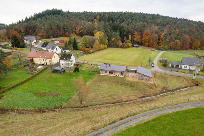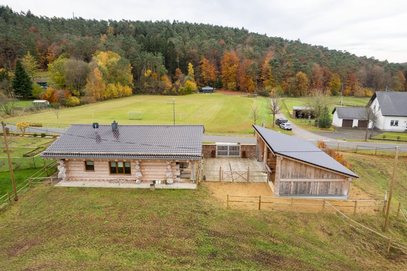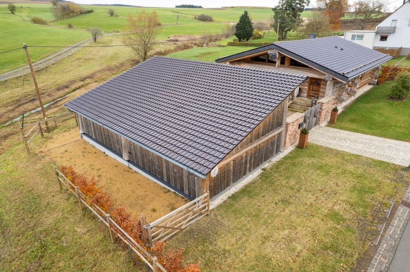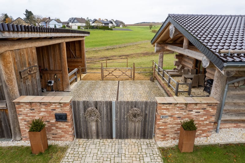 Wohnen, Reiten, Ankommen. Eingebettet in die weite, ursprüngliche Landschaft der Eifel präsentiert sich dieses außergewöhnliche Anwesen als wahres Paradies für Pferdeliebhaber. Hier verbinden sich kanadische Handwerkskunst, natürliche Materialien und moderner Wohnkomfort zu einem harmonischen Gesamtbild – geschaffen für Menschen, die Naturverbundenheit nicht nur schätzen, sondern leben. Das Wohnhaus – Authentisch, warm, einzigartig. Das in hochwertiger Holzbauweise errichtete Haus strahlt Geborgenheit und Charakter aus. Großzügige Fensterflächen öffnen den Blick in die umliegenden Wiesen und Wälder und lassen Licht und Landschaft Teil des Wohngefühls werden. Natürliche Materialien, sichtbare Holzbalken und eine durchdachte Raumaufteilung schaffen eine Atmosphäre von Ruhe und Beständigkeit. Moderne Haustechnik und zeitgemäßer Komfort verbinden sich dabei stilvoll mit rustikalem Charme. Hier entsteht ein Lebensraum, der entschleunigt – und gleichzeitig inspiriert. Das Pferdeanwesen – Freiheit direkt von der Haustür. Für Reiter und Pferdehalter bietet das Anwesen ideale Voraussetzungen: • Weitläufige, arrondierte Weideflächen • Direkter Zugang zu traumhaften Ausreitmöglichkeiten in der Natur • Platz für Offenstallhaltung oder individuelle Stallkonzepte • Kurze Wege zwischen Wohnen und Pferdebereich Natur & Lage – Ruhe in ihrer schönsten Form Abseits von Hektik und Lärm genießen Sie hier absolute Privatsphäre. Die klare Luft, das weite Grün und der Blick über sanfte Hügel machen dieses Anwesen zu einem Rückzugsort mit Seltenheitswert. Ob morgendlicher Weidegang, ein Ausritt bei Sonnenuntergang oder gemütliche Abende auf der Terrasse - dieses Zuhause schenkt Momente, die bleiben. Fazit: Ein außergewöhnliches Anwesen für Menschen, die das Authentische suchen – eine seltene Kombination aus kanadischer Handwerkskunst, Eifeler Natur und modernem Komfort. Ideal für: Naturliebhaber, Reiter, Ruhesuchende, Familien oder Individualisten mit Sinn für das Besondere. „Hier wohnt man nicht – hier lebt man im Einklang mit der Natur.“ Auf Wunsch senden wir Ihnen gerne ein ausführlicheres Exposé. Bitte per eMail anfordern: thoennes-daun@gmx.de