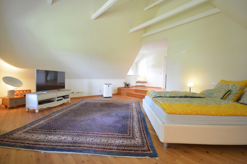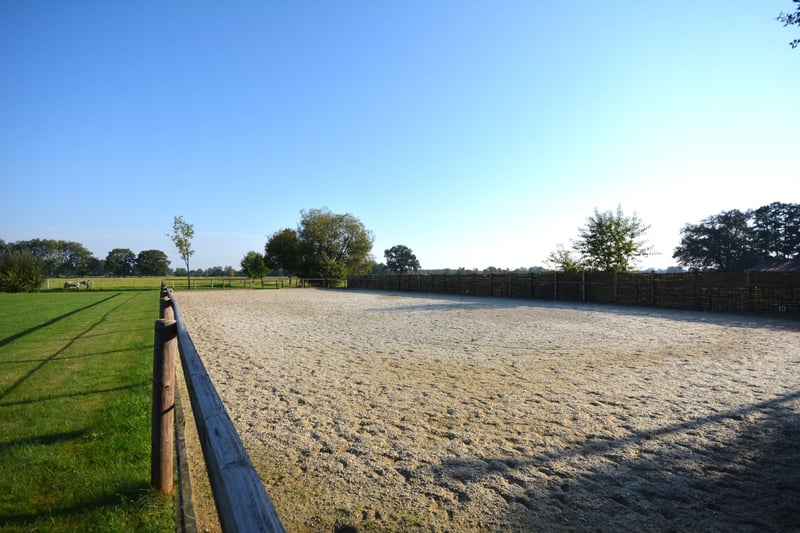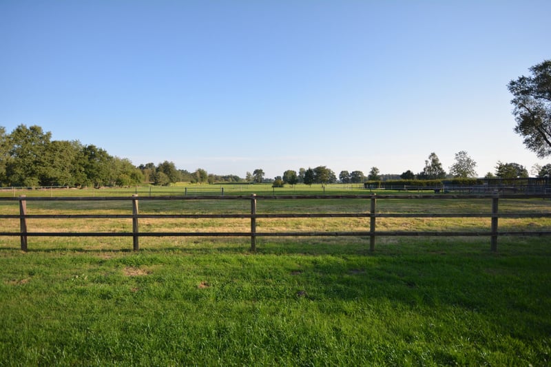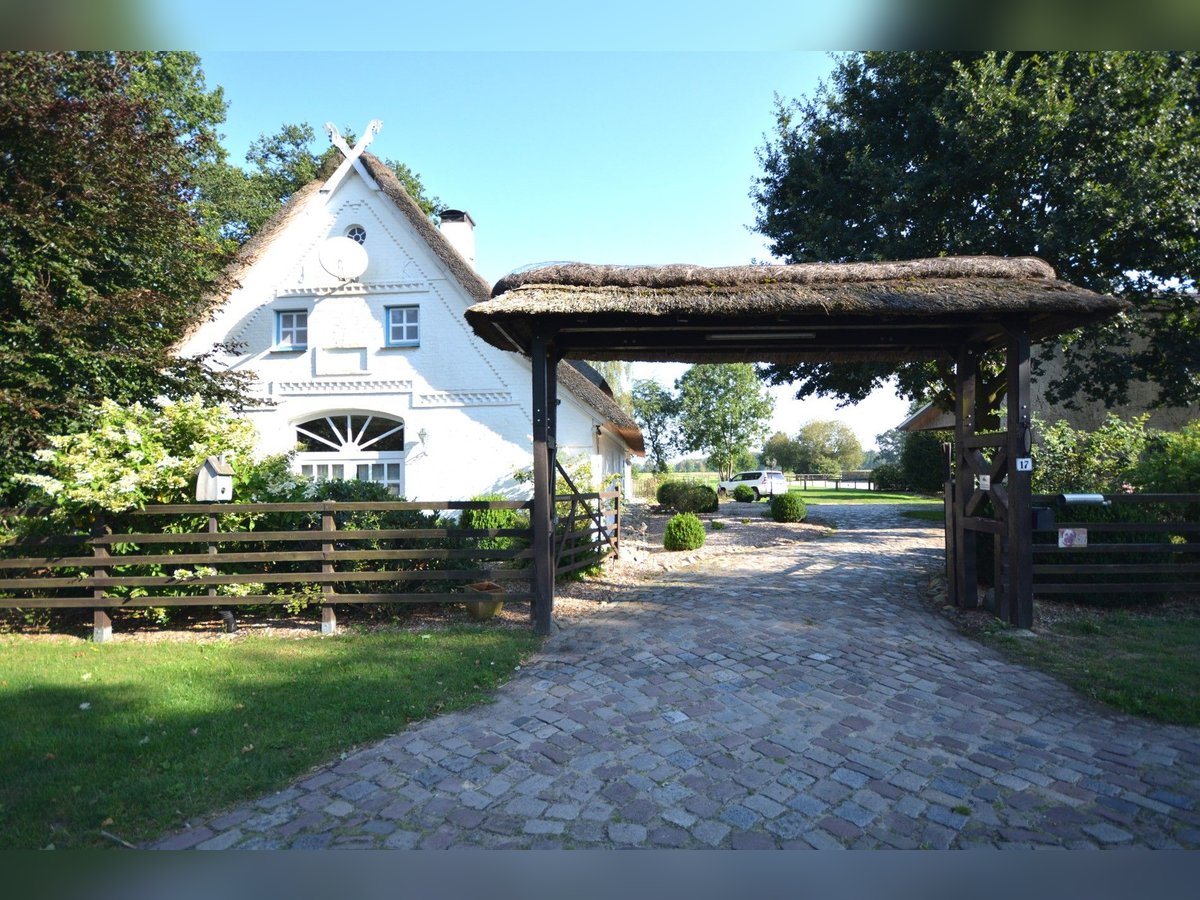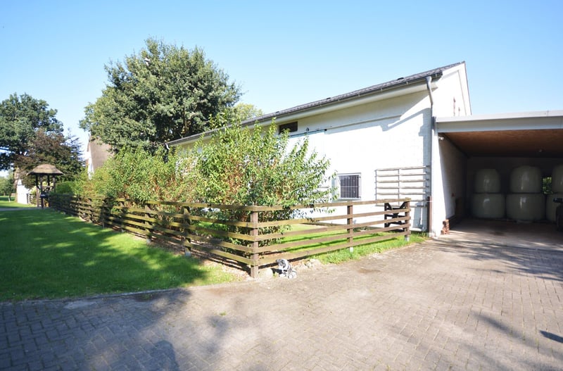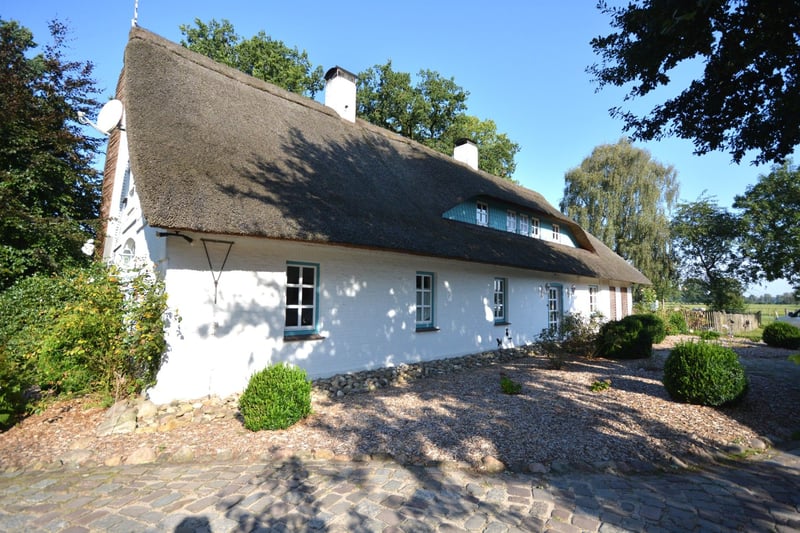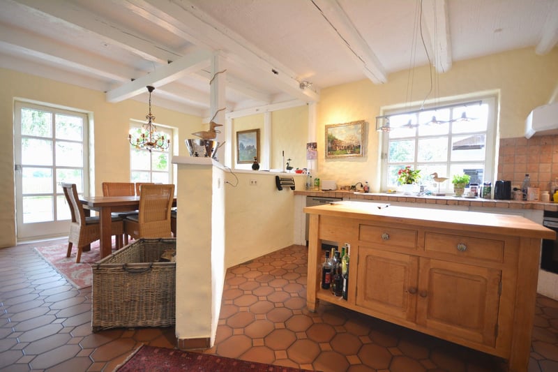 We are delighted to present this exceptional country estate for horse enthusiasts, nestled in the picturesque Lüneburger Heide. The property spans approximately 5.7 hectares and offers ideal conditions to realize your dream of living with professional equine facilities. The charming thatched-roof house (320 m² living space) impresses with an unmistakably warm and inviting atmosphere. The country-style kitchen flows seamlessly into the welcoming dining area, which features large windows offering a stunning view of the garden and horse pastures. The spacious living room, with visible ceiling beams, invites convivial gatherings. An Italian stove in the living room and a tiled stove in the open-plan kitchen provide cozy warmth during the colder months. The elegantly designed bathrooms combine functionality with stylish design. The living space is complemented by a practical utility kitchen, a generous entrance hall, an office, and two large bedrooms. Additional rooms offer flexible use options, such as a children’s room, dressing room, or reading nook. A separate guesthouse (approximately 79 m²) with two bedrooms, a bathroom, and an open-plan living/dining/kitchen area, including its own garden and terrace, provides perfect accommodation for guests or multi-generational living. The estate is superbly equipped for horsekeeping: a stable with nine boxes, a tack room and hay barn, a professional riding arena with irrigation system, as well as sand paddocks, pastures, and a grass gallop track, ensure optimal conditions. This property could soon become your new home! Request your brochure now and schedule a viewing appointment! We look forward to meeting you in person.