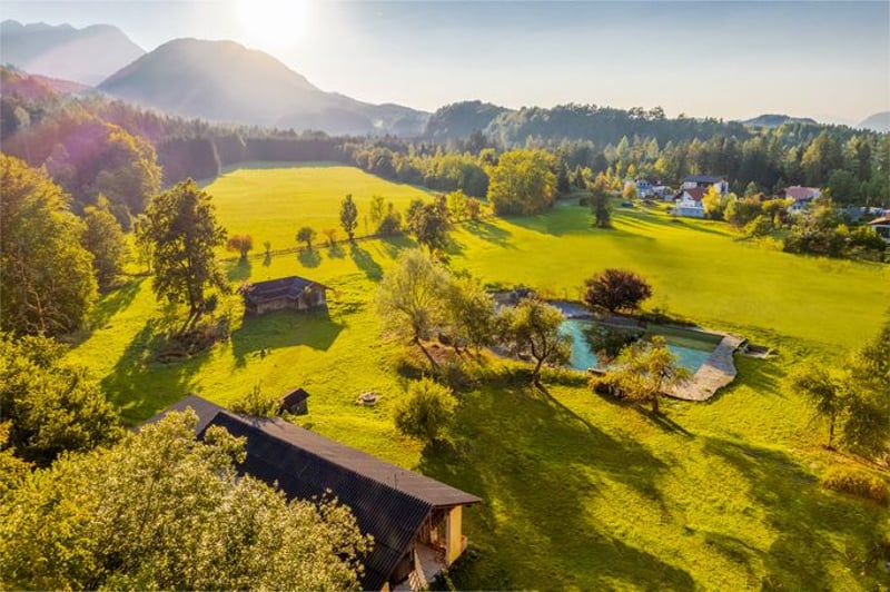 For sale is an idyllic country estate at the foot of the Karawanken mountains, between the Carinthian centers of Klagenfurt and Villach not far from Lake Wörthersee, consisting of a manor house, residential building, barn, stable, natural pool, meadows with old fruit trees, forest and pastureland. There are plans for a top equestrian facility including apartments.