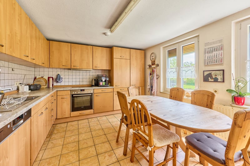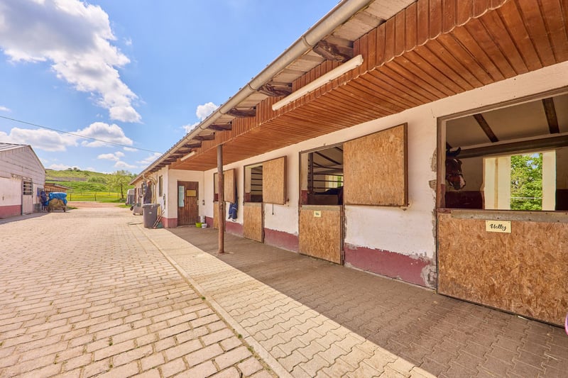 Große gewerblich geführte Reitanlage in Baden-Württemberg mit zwei Reithallen, Photovoltaikanlage inmitten herrlicher Natur! Objektbeschreibung: Diese gepflegte Reitanlage im Schwarzwald-Baar-Kreis bietet auf rund 19.630 m² Grundstücksfläche ideale Voraussetzungen für professionelle Pferdehaltung, Schulbetrieb oder private Nutzung mit Entwicklungspotenzial. Weitere Pachtwiesen sind vorhanden. Zuzüglich für 350.000 € würden Sie eine leistungsstarke Photovoltaikanlage erwerben, die noch einen enormen Ertrag erwirtschaftet – eine solide Kapitalanlage. Das Wohnhaus aus dem Jahr 1955 verfügt über ca. 140 m² Wohnfläche und ist voll unterkellert. Es wurde in Massivbauweise errichtet, das Dach 2008 erneuert und die Heizung 2017 modernisiert. Das Haus befindet sich insgesamt in sanierungsbedürftigem Zustand, bietet aber durch den großen Garten und den direkten Zugang zum Stalltrakt viele Gestaltungsmöglichkeiten. Herzstück der Anlage sind zwei Reithallen: Eine Halle von 1975 mit ca. 54 x 17 m Reitfläche, Tribüne, beheiztem Reiterstübchen, Küche und Sanitäranlagen sowie eine moderne Halle aus 2007 mit ca. 63 x 20 m. Beide Hallen verfügen über einen Sand-Hackschnitzelboden. Ein Reitplatz (54 x 25 m, drainiert), eine Führmaschine für vier Pferde und mehrere Koppelflächen runden das sportliche Angebot ab. Insgesamt können 53 Pferde untergebracht werden – in 21 Paddockboxen, einer Innen- und einer Fensterbox sowie 30 Offenstallplätzen mit Liegehalle und Fressständern. Die Offenställe sind ideal für Schulpferde, die zusätzlich über einen kleinen Trail Auslauf erhalten. Ergänzend verfügt die Anlage über eine große Bergehalle (ca. 350 m²), eine genehmigte Mistplatte, eine Werkstatt, Anhänger- und Pkw-Stellplätze sowie eine 25.000-Liter-Zisterne. Die Reitanlage ist vollständig an das öffentliche Strom-, Wasser- und Abwassernetz angeschlossen. Mit ihrer soliden Struktur, vielseitigen Nutzungsmöglichkeiten und wirtschaftlich attraktiven Photovoltaikanlage (514 kWp) bietet diese Immobilie ein stimmiges Gesamtpaket für Pferdemenschen und engagierte Betreiber. Ausstattung: Wohnhaus: - Baujahr: 1955 - Wohnfläche: ca. 140 m² - Zustand: sanierungsbedürftig, Heizung jedoch bereits erneuert - Heizung: Öl aus 2017 (Rohre aus 1978) - Fenster: Kunststoff, Doppel-Verglasung teils erneuert, Rollläden außenliegend - Keller: voll unterkellert - Mit Zugang zum Stallgebäude - In der Verlängerung vom Stall und Wohnhaus gelangt man auch in ein Büro. Hinweis: Die Reitanlage ist vollständig an das öffentliche Wasser,- und Abwassernetz angeschlossen, ebenso an die öffentliche Stromversorgung. Reithalle 1: - Baujahr: 1975 - Reitfläche: 54 x 17 Meter - Boden: Sand-/Hackschnitzel - Konstruktion: Holz (Nagelbinder) und Trapezblech - Tribünenbereich für Zuschauer / Abstellfläche - Beheiztes Reiterstübchen mit Blick in die Reithalle - Gasheizung aus 2018 für Reiterstube - Sanitäranlagen für Kunden & Küche vorhanden Reithalle 2: - Baujahr: 2007 (Wiederaufbau) - Reitfläche: 63 x 20 Meter - Boden: Sand-/Hackschnitzel - Konstruktion: Stahlhalle mit Blechverkleidung Unterbringung der Pferde: - Es gibt ein Stallgebäude, welches direkt an das Wohnhaus grenzt: - Baujahr Ursprung 1955 - Umbau zum Pferdestall 1972 - Weitere Pferdeställe wurden auf dem Hof in 1997 erbaut - In allen Boxen bzw. Ställen finden Sie beheizte Selbsttränken und Futtertröge Insgesamt können 53 Pferde untergebracht werden, davon: - 21 Paddockboxen - 1 Innenbox - 1 Fensterbox - 30 Offenstallplätze (Liegehalle und Fressständer) Die Liegehalle dient vor allem den Schulpferden des Betriebs, diese haben außerdem einen kleinen Trail, für genügend Auslauf und Bewegung. Die Reitschule könnte bei Interesse weitergeführt werden. Reitplatz: - Baujahr 1991 - Maße: 54 x 25 Meter - Boden: Sand-/Hackschnitzel, drainiert - Einzäunung vorhanden Führmaschine: - 4 Pferde - Hersteller: Molenkonig Weiteres: - Bergehalle für rund 500 Rundballen aus 1998 mit 350 m² Grundfläche - Genehmigte Mistplatte - Werkstatt - Anhängerparkplatz, PKW Stellplätze - 25.000 Liter Zisterne PV-Anlage (zusätzlich zu erwerben): - Kaufpreis: 350.000 € (soll vom neuen Käufer der Reitanlage ebenfalls erworben werden) - Ertrag: ca. 110.000,-€/Jahr - Jahr der Inbetriebnahme: März 2012, Laufzeit bis Dezember 2032 - Größe in kWp: 514 Lage: Die Ortschaft liegt im Landkreis Schwarzwald-Baar in Baden-Württemberg und zeichnet sich durch seine verkehrsgünstige und dennoch ruhige Lage aus. Die Gemeinde befindet sich nur wenige Kilometer südlich von Villingen-Schwenningen und bietet eine hervorragende Anbindung an die A81 (Stuttgart–Singen), wodurch sowohl der Großraum Stuttgart als auch die Schweiz schnell erreichbar sind. Der nächstgelegene internationale Flughafen Zürich ist in etwa einer Stunde Fahrzeit erreichbar. Alternativ liegt der Flughafen Stuttgart rund 90 Minuten entfernt. Ein besonderes Plus ist die Nähe zum Bodensee: Der beliebte Erholungs- und Tourismusraum rund um Konstanz, Überlingen und Friedrichshafen ist in weniger als einer Stunde bequem erreichbar. Der Schwarzwald-Baar-Kreis bietet eine gelungene Kombination aus ländlicher Ruhe, naturnaher Umgebung und guter Anbindung an zentrale Wirtschafts- und Kulturstandorte der Region. Im Ort selbst finden sich eine Grundschule, Kindergarten, Apotheke, eine ärztliche Praxis sowie kleinere Läden für den täglichen Bedarf. Größere Einkaufszentren, Supermärkte, Fachärzte, Apotheken, Banken und gastronomische Angebote sind in der nahegelegenen Stadt Villingen-Schwenningen in wenigen Fahrminuten erreichbar. Auch Krankenhäuser, Fachkliniken und weitere medizinische Versorgungsangebote befinden sich im Umkreis von 10 bis 15 Kilometern. Im Bildungsbereich überzeugt die Region durch ein breites Angebot: Weiterführende Schulen wie Realschulen, Gymnasien und Berufsschulen stehen in Villingen-Schwenningen, Bad Dürrheim oder Tuttlingen zur Verfügung. Natur