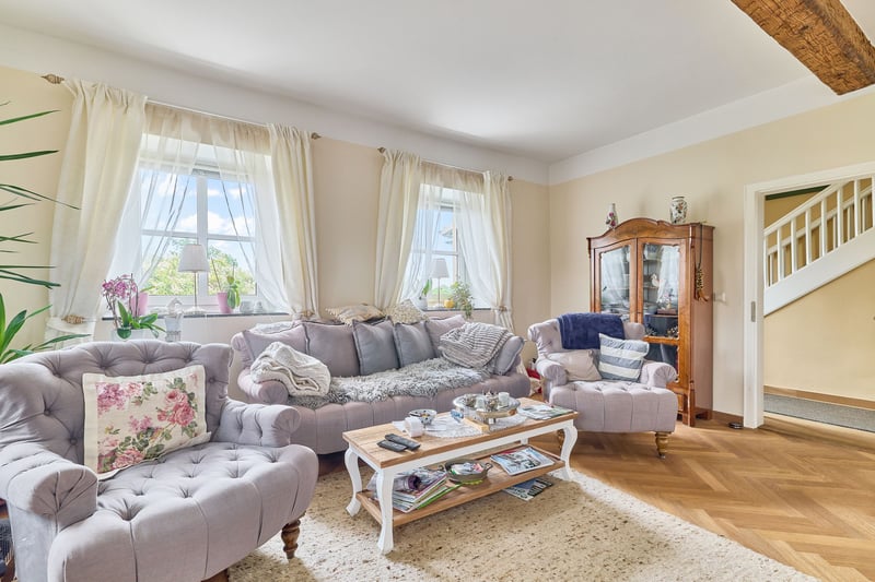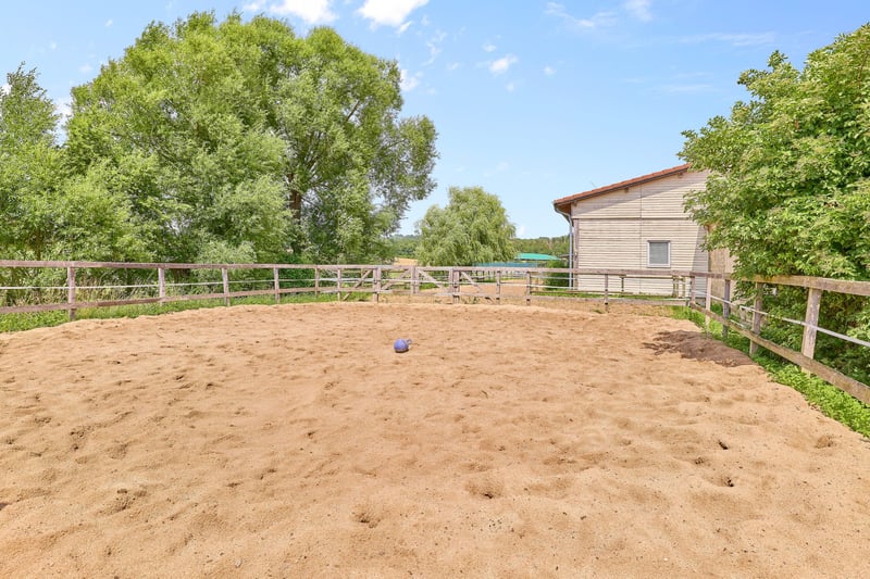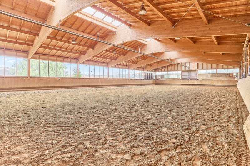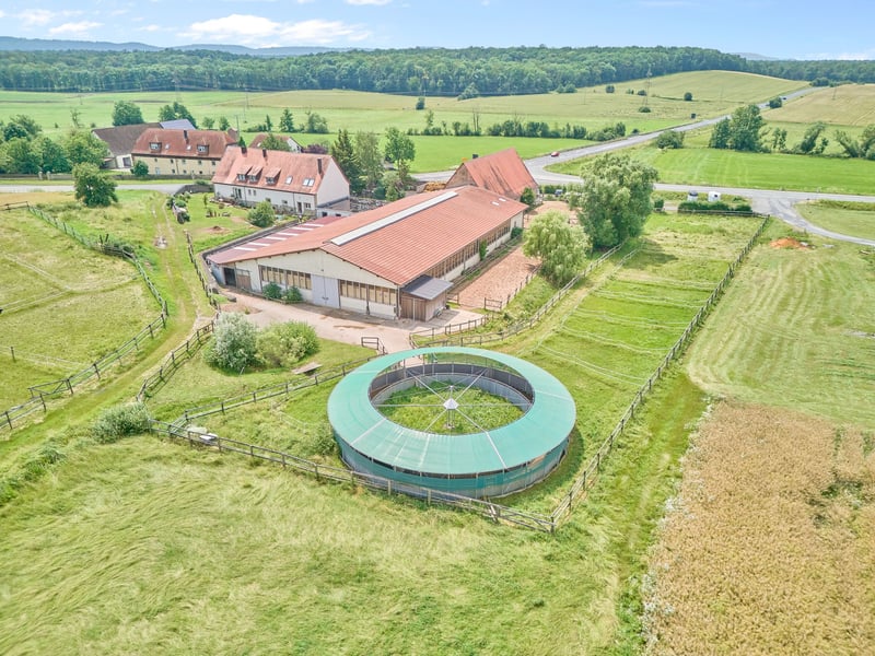 Please complete the contact form below before calling us by phone. Thank you for your understanding! Property Description: A dressage facility that will make your heart race – professional infrastructure meets historic charm and an exceptionally well-maintained ambiance. We are pleased to present this high-quality equestrian estate in Bavaria, which caters to both demanding riders and horse enthusiasts with a taste for historic elegance. The property features a spacious indoor riding arena measuring 20 × 40 meters, equipped with a modern sprinkler system, integrated storage areas, seating, and even a staff apartment. The training facilities are complemented by a covered, mud-free lunging ring for six horses – ideal for thoughtful and gentle exercise management. Directly on the estate are sand paddocks and grass pastures where horses can enjoy free movement. There is also an open stable with its own sand paddock. Additionally, approximately 1.8 hectares of leased pastureland are available, directly adjoining the property – a significant advantage for daily management. The equestrian estate offers space for approximately 21 horses, distributed across two stable blocks. The private area with seven boxes and a dedicated tack room can be perfectly separated from the operational section with fourteen additional boxes. A large part of the facility consists of spacious paddock boxes, combining species-appropriate housing with comfort. The total area of the courtyard is 9,796 m²; further areas are leased long-term. The estate’s special charm is enhanced by the historic main house, which has been extensively renovated and could be divided into two residential units if desired. A partially cellared vaulted basement and the impressive cross-vaulted banquet hall, connecting the residential house with the stable area, create a unique ambiance and offer versatile usage options. This dressage facility combines professional standards with historic flair, providing ideal conditions for ambitious riders, trainers, businesses, or horse lovers. We invite you to arrange a viewing and experience the quality of this exceptional estate firsthand. Features: Main House: - Built: 1863/1865 - Living and utility space: approx. 485.40 m² (10 rooms) - Dividable into 2 residential units (kitchen and bathroom on each floor) - Partially basemented (vaulted cellar including wine cellar) - Well pump in the cellar, biogas treatment plant available - Soapstone stove from approx. 2016 in the living room - Genuine hardwood parquet floors - Windows: double-glazed - Ceiling height: 2.70 meters The house’s cross-vaulted banquet hall, already extensively renovated, features high-quality stone flooring. It is equipped with a Bullerjan stove for heating (ideal as a courtyard café or similar). Currently used as storage, it offers the possibility to access the stable building on foot from here. Indoor Riding Arena: - Built: 2006 - Riding surface: 20 x 40 meters - Floor: sand/fleece mixture from Söder - Sprinkler system using well water (Rega GmbH filter) - Fully glazed, with mirrors - Storage space / guest apartment on the upper floor of the main building or usable as a groom’s room with shower and WC - Ground floor: riding lounge or staff apartment (kitchen, bathroom, bedroom, living area) Stabling: - Private stable with 7 boxes (3 indoor boxes with windows & 4 paddock boxes), measuring 3.90 x 3 meters, including wash area with solarium and private tack room (lockable) - Additional stable: 14 boxes (8 indoor, 6 paddock), measuring 3.40 x 3.60 meters, paddock 5.50 x 3.40 meters, also with tack room, wash area, and solarium Barn Building: - Built: 1859 (listed building), already renovated - Storage for hay & straw (approx. 170 bales, local supplier) - Machinery shelter - Feed area with oats silo Lunging Ring: - Built: 2016/2017 - Diameter: 20 meters, for 6 horses - Covered hoof path - Floor: Ridcon mats with wood chip base Additional: - Approved manure storage area - Parking spaces and paved access road - Trailer parking Location: Market Bibart is a municipality in the Neustadt an der Aisch-Bad Windsheim district in Middle Franconia, situated in the Steigerwald between Nuremberg and Würzburg along the Bibart river. The town is part of the Greater Nuremberg transport network and has a train station on the Fürth–Würzburg line, served hourly by regional express RE 10 (Würzburg–Nuremberg). The surrounding area is accessible via several bus lines. The federal road B8 runs through Market Bibart, with B286 connecting to B8 at Enzlar. The municipality belongs to the administrative community of Scheinfeld and has approximately 2,500 inhabitants. In Market Bibart, there are elementary schools, kindergartens, a middle school, and a music school. All essential daily amenities (shopping, medical services, pharmacies, kindergartens, primary and secondary schools, banks, restaurants) are sufficiently available. The area offers a high quality of life away from city noise, with many recreational opportunities. Excellent transport links allow easy access to Würzburg and Nuremberg. The community comprises six districts, including Enzlar, where the estate is located. The property is situated outside the residential area with access to the federal road, making shopping quick and straightforward. The rural surroundings are perfect for cycling, walking, and scenic riding adventures with your equine partner. Energy Certificate: Main energy source: heating oil Energy consumption certificate End energy demand: 139.78 kWh/(m²*a) Energy efficiency class: E Built: 1863, heating system from 1998 Additional Information: Unauthorized access to the equestrian estate outside of scheduled viewings with the responsible broker Fetter Immobilien is strictly prohibited by the owners. A commission of 3.57% of the purchase price including VAT applies upon notarization and is payable upon signing the notarized purchase agreement. A detailed exposé in