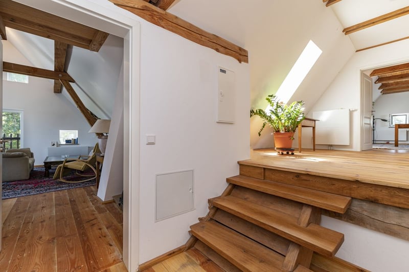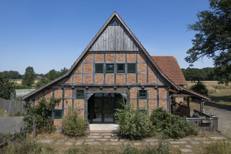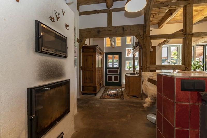 Grundstücksgröße: ca. 48.975 qm Wohnfläche: ca. 335 qm Gewerbliche Nutzfläche: ca. 450 qm Anzahl Zimmer: 8 Baujahr: 2015 neu aufgebaut, neben Gebäuden um 1890 (Scheune), ca. 1950 (Garage, Pferdestall) Stellplätze: 10 Freiplätze Heizungsart: Fußbodenheizung Energieausweis: Energieausweis: bedarfsorientiert // Endenergiebedarf: 19,5 kWh // Energieeffizienzklasse: A+ // wesentlicher Energieträger: Erdwärme Auch eine Aufteilung der Immobilien nebst Grundstücken denkbar. Sollte diese Option für Sie interessant sein, sprechen Sie uns hierzu gern an! Das nach alter Technik, aber auf dem aktuellen Stand bis 2019 neu aufgebaute Fachwerkhaus liegt idyllisch an einem kleinen Wald und ist umgeben von Feldern und Wiesen. Lediglich die Mauern des Ursprungshofes im heutigen Wohnzimmers sind stehen geblieben, der um 1876 erbaut wurde. Über zwei Einfahrten haben Sie die Möglichkeit, auf das Grundstück zu gelangen. Durch eine auf neuestem Stand gebaute Gewerbeeinheit mit Photovoltaik- (Leistung: ca. 29,7 kWh) sowie Solarthermieanlage, einem ehemaligen Rinderstall sowie ein Doppel-Carport und weitere Gebäude wird dieses Ensemble für die Umsetzung von Arbeiten und Leben auf dem Land ergänzt. In dem großzügigem Garten befinden sich ein Teich und diverse Obstbäume. Ausreichend Platz für die große Familie findet sich im Wohnhaus, dass im Zentrum des Hauses (im Deelenbereich) die Küche angesiedelt hat. Von hier aus gelangen Sie in die weiteren Räume wie Esszimmer mit angrenzendem Wohnzimmer, Schlafzimmer, Speisekammer, Hauswirtschaftsraum sowie das Bad oder Gäste-WC. Im Obergeschoss befinden sich weitere Schlafräume, Wohnzimmer mit Anschlüssen für eine Küchenzeile, Badezimmer sowie ein großzügiges Büro. Auch der Spitzboden wurde ausgebaut und bietet so eine gute, weitere Nutzfläche. Das Wohnhaus wurde so aufgebaut, dass der Bereich im Obergeschoss mit wenigen Baumaßnahmen als zweite Wohneinheit mit separatem Zugang genutzt werden könnte. Der Gewebeteil wird aktuell als Wildmetzgerei genutzt und umfasst eine Nutzfläche von ca. 450 qm, inklusive Ladenfläche, Lagerräumen und WC. Eine Umnutzung z. B. in eine Arzt-, Tierarzt- oder Physiotherapiepraxis ist denkbar. Das Dachgeschoss ist gedämmt und bereits teilweise mit Rigips verkleidet. Die Kühlräume sind so angelegt, dass eine Wärmerückgewinnung durch Abwärme der Kühlkammern stattfindet. Auch eine Oldtimer-Sammlung würde auf diesem Areal ausreichend Platz finden. Ebenso könnten weitere Wünsche erfüllt werden -wie zum Beispiel ein Freisitz nahe dem Reitplatz mit Blick in die Weite der Natur böte sich geradezu perfekt als Sommerküche an. Die bereits gedämmte und geflieste Garage könnte aufgrund der Anschlüsse zur Sauna umgebaut werden oder aus dem ehemaligen Rinderstall wird ein Café mit Ladenbereich ... . Auf den umliegenden Flächen (ca. 35.920 qm Landwirtschaft/Grünland sowie ca. 6.670 m?? Wald/Grünfläche) finden sich: l Offenstall mit Paddock und angrenzender Weide l Reitplatz (ca. 25 x 50 m) l weitere Gebäude (u.a. Schuppen, Carport) l kleiner Wald mit altem Baumbestand l Weidefläche, arrondiert Das Herzstück des einladendes Wohnhauses stellt die offene Küche dar, die als Bonbon mit einem Grundofen ausgestattet ist, der für eine wohlige Wärme sorgt und die im Erdgeschoss befindliche Fußbodenheizung sehr gut ergänzt. So wird das Haus bei Betrieb auch über Nacht in einer angenehmen Temperatur gehalten. Ein Backfach zum Warmhalten von Speisen rundet den Grundofen ab. Im Erdgeschoss sorgt das offene Gefache für eine gemütliche Atmosphäre, wobei im Obergeschoss die Wände glatt gespachtelt hell und modern sind, jedoch den ländlichen Charme durch die Vollholz-Lärchedielen sowie -balken beibehalten. Im Erdgeschoss hingegen besteht die Decke sowie das Gebälk aus Eiche. Die Küche ist ausgestattet mit Geräten von NEFF (Kombigerät: Dampfgarer und Ofen) sowie jeweils zwei Kühlschränken, Induktionsplatten und Gaskochfeldern. In dem ursprünglich gedachten Stallbereich liegt der gemütliche Essbereich mit Zugang zur Glas überdachten Ost-Terrasse. Windgeschützt und überdacht lässt sich die Mittagssonne mit Blick zur Hofeinfahrt genießen. Das Esszimmer befindet sich angrenzend zur Küche, von dem aus Sie über die Nord-Terrasse in den großzügigen Garten mit Teich oder über wenige Stufen in das mit Naturstein gemauerte, etwas tieferliegende Wohnzimmer gelangen. Etwas separat liegt das Schlafzimmer zum Norden hin ausgerichtet nahe dem Tageslichtbad mit Dusche und Badewanne. Der gesamten Fußboden im Erdgeschoss ist mit unbehandelten Sandsteinfliesen ausgelegt, ebenso die Wandfliesen in den Badezimmern. Lediglich das Gäste-WC ist mit gemusterten Steinfliesen in dezenter Farbgestaltung ausgestattet. Sonstiges: Dieses Objekt bieten wir in Kooperation mit einem unserer Netzwerk-Makler an. Mit Ihrer Kontaktanfrage akzeptieren Sie, dass Sie sich für dieses Objekt interessieren und ein Expose von unserem Netzwerk-Makler anfragen. Ebenso bestätigen Sie die Provisionsvereinbarungen zwischen unserem Netzwerk-Makler und Ihnen, die im Falle eines notariell bestätigten Kaufvertrages rechtskräftig werden. Ebenso bestätigen Sie, dass wir berechtigt sind, Ihre Kontaktdaten an den Netzwerk-Makler weiterzuleiten.