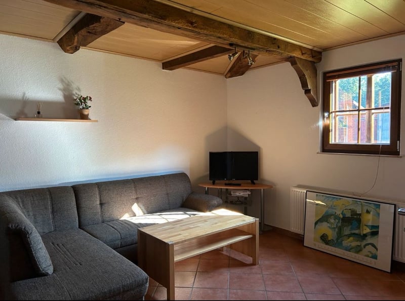 Location & Surroundings: We are renting a cozy apartment on our breeding and boarding horse farm. The central location as well as the close proximity to important daily necessities such as shopping facilities, doctors, or pharmacies can be reached within a few minutes. Apartment: - Open living and dining area with fitted kitchen - Bathroom with shower - Quiet location, rural ambiance - Pets not allowed Special Features: - Possibility to bring your own horses (for an additional fee, by arrangement) - Living directly on a well-maintained horse farm Costs: Cold rent: €500 Additional costs: €150 Deposit: €1500 Miscellaneous: The apartment is suitable for individuals who value a quiet and animal-friendly environment. Contact: If you are interested or have any questions, we look forward to your call! Tel: 01759167174