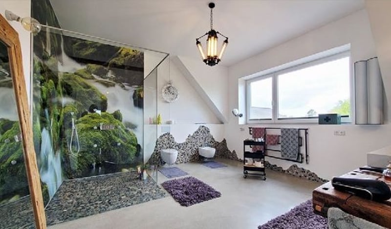 Privatangebot ohne Makler: Exklusiver, hochwertig sanierter Vierkanthof mit einem großen Haupthaus und vier weiteren Wohneinheiten, optimal zur privaten oder gewerblichen Tierhaltung geeignet Welcher Pferdefreund träumt nicht davon, mit seinen Tieren zusammen inmitten der grünen Natur zu leben? Dieser exklusive Vierkanthof in einer tollen Naturlage von Niederkrüchten macht es möglich. Das einmalige Anwesen besteht aus einem luxuriös sanierten Haupthaus, 4 hochwertig eingerichteten Wohnungen/ Appartements sowie Stallungen mit 10 Pferde-Boxen und einer großen Remise. Zusammen bilden die Gebäude aus dem Ursprungsjahr 1910 die vier Schenkel eines typisch niederrheinischen Vierkanthofes. Eingebettet in die idyllische niederrheinische Landschaft des Naturparks Schwalm-Nette bietet der äußerst anspruchsvolle und luxuriös ausgestattete Wohnsitz auf einem nahezu 42.000 m² großen Grundstück mit weitläufigen Weideflächen und einem eigenen Reit- und Trainingsplatz alle Voraussetzungen für die private oder gewerbliche Tierhaltung. Hier können Sie Ihren Traum vom Wohnen mit Pferden verwirklichen! Das repräsentative Haupthaus wurde in den vergangenen Jahren unter Verwendung hochwertigster Materialien umfangreich und mit viel Liebe zum Detail saniert und bietet seinen Bewohnern auf einer Wohnfläche von ca. 300 m² exklusiven Lebensraum auf höchstem Niveau. Exklusives Interior-Design, ein edler Gas Kamin, polierter Estrichboden gepaart mit historischen Dachbalken, freiliegendem Klinker und einer imposanten Deckenhöhe von bis zu 6,4 m werden höchsten Ansprüchen gerecht und bilden eine stilvolle Symbiose aus Tradition und Moderne. Im großzügig bemessenen Wohnbereich, welcher sich in Küche, Wohn- und Essbereich gliedert, sorgt eine offene Raumgestaltung für weite Sichtachsen. Große Fenster Elemente füllen den gesamten Raum mit reichlich Tageslicht und geben von jeder Position den Blick auf die Weideflächen hinter dem Haus frei. Ein gasbetriebener Kamin im Wohnbereich sorgt nicht nur zur kälteren Jahreszeit für eine behagliche Wohlfühl-Atmosphäre. Die offene, Küche samt großer Kücheninsel integriert sich perfekt in den Raum und ist mit hochwertigen Neff-Elektrogeräten ausgestattet. An den Wohnbereich schließt sich linker Hand ein großer Schlaftrakt an, der durch eine große Diele vom Wohnbereich abgetrennt ist und somit eine hohe Privatsphäre ermöglicht. Das Schlafzimmer ist mit stilvollen Einbauten ausgestattet, drei große Fenster geben den Blick auf die Weiden und die Tiere frei. Ein stilvoll eingerichtetes Duschbad am Ende der Diele komplettiert das Erdgeschoss. Über eine moderne Stahltreppe im Industrial-Look gelangen Sie in das Obergeschoss mit Galerie. Hier befindet sich ein weiteres Schlafzimmer mit begehbarem Ankleideraum sowie einem Zugang zu einer Dachterrasse mit einem traumhaften Ausblick über die Weideflächen. Das gegenüber befindliche Masterbad ist besonders großzügig angelegt und bietet samt Regendusche und Doppelwaschtisch einen hohen Wohlfühlfaktor. Des Weiteren steht auf der Etage ein weiteres Zimmer zur individuellen Nutzung bereit. Ein Arbeitsbereich auf der Diele rundet das Raumangebot im Obergeschoss ab. Darüber hinaus stehen Ihnen in den restlichen Gebäudeteilen 4 weitere, voll eingerichtete Wohneinheiten zur Verfügung, welche sich zur privaten Nutzung (Mehrgenerationswohnen), zur Unterbringung von Bediensteten oder als Ferien- oder Einliegerwohnungen nutzen lassen. + naturnahe und familienfreundliche Lage direkt an einem Landschaftsschutzgebiet + exklusives Haupthaus mit ca. 300 qm Wohnfläche und hochwertigem Design-Interieur + vier weitere, sehr hochwertig ausgestattete Wohneinheiten (ca. 400 qm) + große Remise (ca. 210 m²) + Stallungen mit 10 großen Boxen (ca. 150 m²) + Aufenthaltsraum / Reiterstübchen mit Dusche und WC + großer Dachgeschossspeicher (gesamt ca. 287 m²) als Lager oder Ausbaureserve + weitläufige Weideflächen + Reit- und Trainingsplatz 40 x 20 Meter + Komplettsanierung 2014 - 2020 + Energieausweis vorhanden Zur Zeit wird ein Teil des Anwesens als exklusives Gästehaus betrieben. Die hierzu erforderlichen Genehmigung liegen natürlich vor. Makleranfragen ausdrücklich nicht erwünscht.