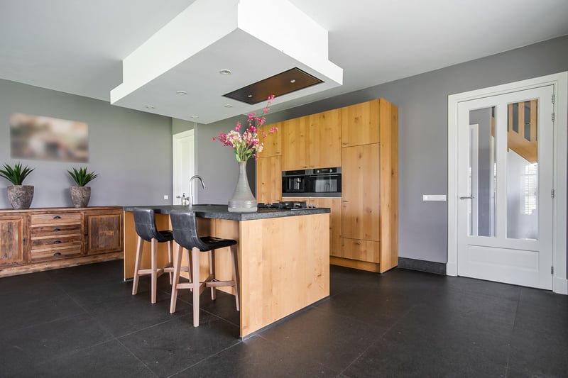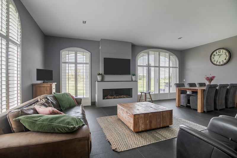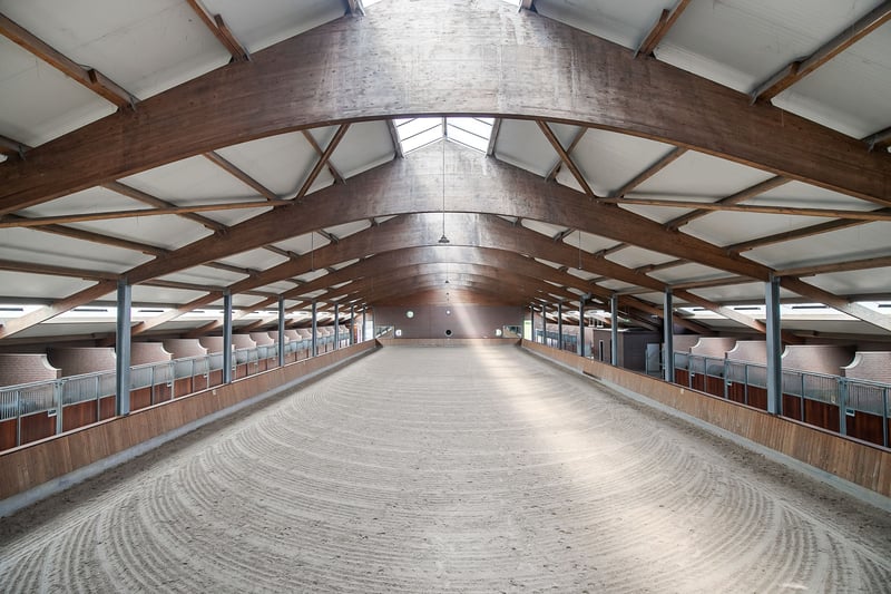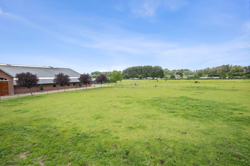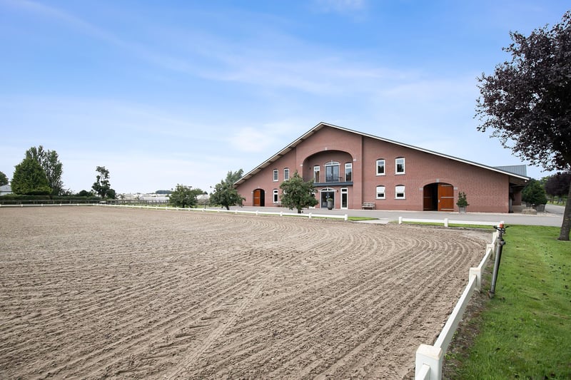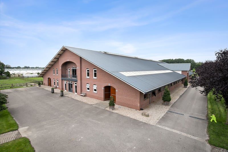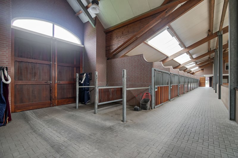 This beautiful, complete and well-maintained equestrian accommodation offers plenty of possibilities due to the presence of a beautiful luxuriously finished detached house, a total of 39 horse stables, a spacious indoor and outdoor arena (approx. 21x61 metres), a reception area, two flats which are perfect for groom's quarters, a covered horse walker and various meadows. All this is situated on a generous plot of no less than over 10 ha in an excellent, central location in the middle of the Netherlands. HOUSE The detached house has a front and back house, making it perfect for use, for example, as a main house with an extra-care residence. The front house can be reached from the hall. On the ground floor, the front house includes a living room, spacious kitchen and a utility room. The 1st floor comprises 3 bedrooms, a bathroom and a toilet. The attic space is also accessible from the front house. The back house is equipped with a living room with open kitchen, bedroom, guest room, bathroom, scullery and a toilet room. All this is situated on the ground floor. On the 1st floor, a very generous attic space is situated. THE FRONT HOUSE Ground floor: The covered entrance with a double sliding front door, gives this villa an attractive appearance. The spacious reception hall with imposing wooden staircase provides access to the living room and the 1st floor. The hall has a natural stone tiled floor, stucco walls and a stucco ceiling. The spacious living kitchen with dining area has a natural stone tiled floor, stucco walls and a stucco ceiling with recessed lighting. The kitchen features a wall-mounted unit with appliance wall and a cooking and rinsing island. The appliance wall is further equipped with an oven, coffee maker, steam oven and fridge. The island features a 5-burner gas hob with built-in extractor fan in the ceiling, a sink and a dishwasher. Various cupboards and drawers provide plenty of storage space. A large bay window/extension with French doors provide access to the garden. The many windows provide plenty of natural light. A fireplace adds atmosphere and warmth to the room. From the living room there is a nice view of the horse pastures. And here, too, large windows and double doors provide a sea of light. In addition, there is a beautiful, large fireplace with a gas fire that provides even more atmosphere and warmth in the room. Sliding doors close off the living room from the kitchen/dining area. Semi-circular French doors in the side wall of the house provide access to the front house. The spacious entrance hall provides access to the utility/laundry room, living room, toilet room and the meter cupboard. The utility/laundry room is equipped with a sink. Also located here are the connections for the washing equipment. From here, there is access to the office/workroom. The office space is a fine room which is obviously suitable for various purposes, such as a playroom or chill room. 1st floor: The spacious landing with loft provides access to 3 spacious bedrooms, the bathroom, toilet room and the attic. There is also access to a charming French balcony which offers nice views of the surrounding area. The landing and all bedrooms have the same finish, natural stone floor, stucco walls and a stucco ceiling. The master bedroom is equipped with a practical closet and air conditioning. French doors provide access to the roof terrace from here. The fully tiled bathroom is equipped with a bathtub, a bathroom unit with 2 nice washbasins and a walk-in shower. The separate toilet room has a floating toilet and a hand basin. The very generous attic space is currently mainly used as storage, but can of course also be used and furnished for various other purposes. 4 beautiful semi-circular dormer windows provide natural light and ventilation. This room houses the set-up for the central heating combi boiler (Nefit), the mechanical ventilation unit and the underfloor heating unit. A fixed staircase provides access to the rear hallway. THE BACK HOUSE Ground floor: The hall provides access to the living room, utility room, toilet room and the fixed staircase access to the attic space on the 1st floor. The underfloor heating unit is located in the stairs cupboard. The toilet room is partly tiled and further equipped with a floating toilet and a hand basin. The practical utility room is equipped with a bespoke kitchen unit. The connections for the washing equipment are located here. There is also access to the meter cupboard from here. A wicket door provides access from the utility room to the pantry/laundry room of the front house. The cosy living room with open kitchen features a natural stone floor, stucco walls and a stucco ceiling with recessed lighting. Three double French doors and a large window with beautiful and practical shutters provide plenty of natural light. A beautiful fireplace with gas fire adds atmosphere and warmth to the room. The kitchen features a wall-mounted unit with appliance wall and a cooking and rinsing island. The appliance wall is further equipped with a combination oven, coffee maker, fridge and freezer. The island features a 4-burner gas hob with wok burner and built-in extractor fan in the ceiling, a sink and a dishwasher. Various cupboards and drawers provide plenty of storage space. From the living room, there is access to the guest bedroom. This bedroom has a natural stone floor, stucco walls and a stucco ceiling with recessed lighting. From this room, there is access to the bathroom. This bathroom is finished with the same natural stone floor as in the rest of the rooms. The walls and ceiling have stucco. The bathroom is further equipped with a spacious walk-in shower with sun shower, two washbasins with cabinet, a floating toilet and a design radiator. A window provides natural light. From the bathroom, you walk further to the master bedroom. This master bedroom is equipped with a practical closet, providing plenty of storage space. A window also provid