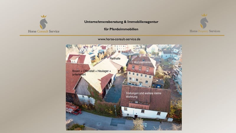 Dieses außergewöhnliche Anwesen in 74535 Mainhardt vereint eine hervorragende geographische Lage, eine solide bauliche Grundlage und eine bemerkenswerte Bandbreite an Nutzungsmöglichkeiten. Ob für private oder gewerbliche Pferdehaltung, eine professionelle Reitanlage, ein Mehrgenerationenkonzept oder – wie vom aktuellen Besitzer geplant – als zukünftige Pferdeklinik: Das Objekt bietet die ideale Infrastruktur, um anspruchsvolle Projekte im Bereich Pferdewirtschaft, Tiermedizin oder hochwertigen Wohnens zu realisieren. Objektbeschreibung: Vor rund zwei Jahren durch den heutigen Eigentümer erworben, wurde das Anwesen seither mit großem Aufwand renoviert, saniert und technisch modernisiert. Es handelt sich um eine weitläufige Hofanlage, bestehend aus einem großzügigen Fachwerk-Haupthaus, einem weiteren eigenständigen kleinen Wohnhaus, mehreren Nebengebäuden, Stallungen sowie einer großen Reithalle. Die Gesamtstruktur des Anwesens ist so konzipiert, dass Wohnen, Arbeiten und Pferdehaltung in harmonischer Weise miteinander verbunden werden können. Das Ensemble umfasst eine Grundstücksfläche von 2.708 m² und eine bereits bestehende Wohnfläche von 457 m² und 3 Wohneinheiten im Haupthaus, die durch weiteres Ausbaupotenzial im EG des kleinen Hauses sowie im Kellergeschoss des Stalles ergänzt wird. Die Gebäude präsentieren sich in einem Mix aus historischem Charme – sichtbar im Fachwerk – und moderner Funktionalität. Während das große Haupthaus voll unterkellert ist, verfügen die übrigen Gebäude über Teilunterkellerungen und bieten zusätzliche Nutz- und Lagerflächen. Der derzeitige Besitzer ist Tierarzt und hatte die Vision, das Anwesen zur Tierklinik auszubauen. Sämtliche Modernisierungen wurden bereits im Hinblick auf ein solches Nutzungskonzept ausgeführt, sodass das Objekt bestens vorbereitet ist für professionelle tiermedizinische Abläufe oder andere gewerbliche Nutzungsideen. Dank der vorhandenen Fernwärmeheizung, einem Brunnen und einer Zisterne ist der Hof auch energetisch und versorgungstechnisch zeitgemäß ausgestattet. Auf der Reithalle befindet sich zudem eine PV-Anlage mit rund 30.000 kWh Leistung und einem monatlichen Ertrag von ca. 1.000€, die den Betrieb wirtschaftlich zusätzlich attraktiv macht. ________________________________________ Ausstattung & Gebäudestruktur: Haupthaus (Baujahr ca. 1950–1960) •3 Etagen, voll unterkellert •Erdgeschoss (ca. 110 m²): vollständig saniert oNeue Elektrik oNeue Sanitäranlagen oNeue Heizung oModernisierte Raumgestaltung •Obergeschoss & Dachgeschoss im Rohbau, Leitungen bereits verlegt Ideales Ausbaupotenzial nach individuellen Vorstellungen •Traditioneller Fachwerkstil, verbunden mit moderner Haustechnik Nebengebäude & zusätzliche Wohnmöglichkeiten: •Kleines separates Wohnhaus gegenüber des Haupthauses oErdgeschoss derzeit Lager, aber leicht zu Wohnraum umbaubar oObergeschoss: aktuell vermietete Wohnung •Insgesamt 4 Wohneinheiten zzgl. weiterem Ausbaupotential auf dem gesamten Objekt Ideal für Mehrgenerationen, Personalwohnungen, Ferienvermietung oder gemischte Nutzung ________________________________________ Pferdehaltung & Reitanlage: Reithalle •Maße: 20 x 40 m •Metallkonstruktion •Dach mit Photovoltaikanlage (ca. 30.000 kWh) Stallungen •Scheune mit integriertem Stall (Fachwerk) •Aktuell 8 Pferdeboxen •Zusätzlich Offenstall für 4–6 Pferde Gesamtkapazität: 12–14 Pferde •Optionale Ausbaumöglichkeit zur 5. Wohneinheit/ zu Büroräumen mit separatem Eingang im unterkellerten Stall. Weideflächen •Fußläufig erreichbar •ca. 6.659 m² •Sehr gut nutzbar für Auslauf, Jungpferde oder Klinikpatienten •Möglicher zusätzlicher Auslauf links direkt neben der Reithalle. ________________________________________ Nutzungsmöglichkeiten: Durch die Kombination aus moderner Infrastruktur, vielseitigen Gebäudeformen und viel Platz eröffnen sich für Käufer zahlreiche Nutzungskonzepte: •Pferdeklinik oder Tierarztpraxis •Reitanlage / Pensionsstall •Ferienhof / Reiterferien •Mehrgenerationenwohnen •Pferdegerechter Hof für ambitionierte Freizeitreiter oder Profis •Seminar- und Ausbildungszentrum •Arbeiten & Wohnen auf einem Gelände •Investitionsobjekt mit bestehenden und ausbaubaren Mietflächen Die vorhandenen vier Wohneinheiten bieten große Flexibilität – vom Einsatz als Mitarbeiterwohnungen über Ferienapartments bis hin zur Großfamilien-Lösung. ________________________________________ Faktenübersicht: Grundstück & Gebäude •Grundstücksfläche: 2.708 m² •Wohnfläche aktuell: 457 m² •4 Wohneinheiten •Haupthaus: 3 Etagen, voll unterkellert •Nebengebäude teilweise unterkellert •Fachwerkstil bei Haupthaus und Scheune •Nebengebäude in Massivbauweise •Reithalle in Metallbauweise •Baujahr Haupthaus: ca. 1950–1960 Technik & Energie •Fernwärme •Brunnen und Zisterne •PV-Anlage (Reithalle): ca. 30.000 kWh Pferdehaltung •Reithalle: 20 x 40 m •8 Boxen + Offenstall für 4–6 Pferde •Gesamtkapazität: 12–14 Pferde •Weidefläche: ca. 6.659 m² Modernisierung •In den letzten 2 Jahren umfassend saniert •EG im Haupthaus komplett erneuert •Leitungen in den oberen Etagen bereits vorbereitet •Fokus auf tiermedizinischen bzw. pferdewirtschaftlichen professionellen Betrieb ________________________________________ Fazit: Dieses Objekt ist eine seltene Gelegenheit: Eine solide sanierte, technisch modernisierte und vielseitig nutzbare Hofanlage in einer der schönsten Regionen Baden-Württembergs. Die Kombination aus Wohnraum, professioneller Pferdehaltung und dem Potenzial für eine Tierklinik macht es zu einem idealen Kaufobjekt für Tierärzte, Pferdeprofis, Investoren oder Familien, die das Leben auf dem Land mit vielfältigen Möglichkeiten verbinden möchten. LAGE: Das Anwesen befindet sich in 74535 Mainhardt, einer landschaftlich reizvollen und zugleich infrastrukturell gut angebundenen Gemeinde im Naturpa