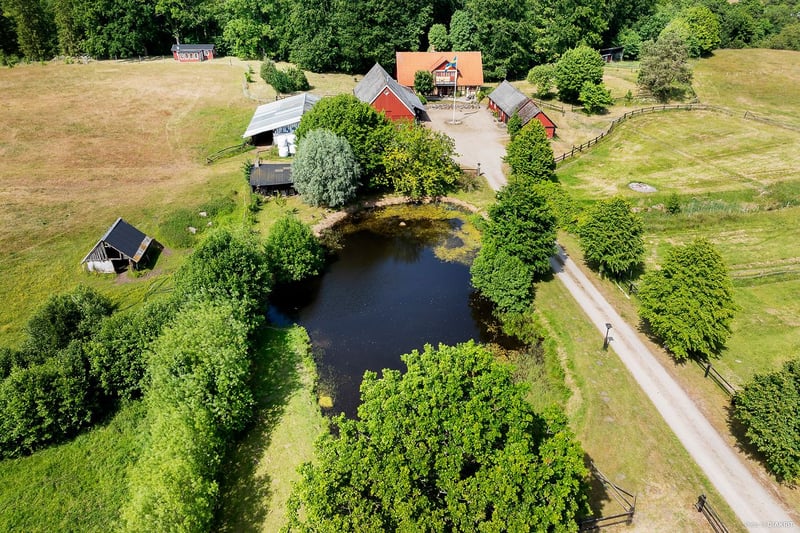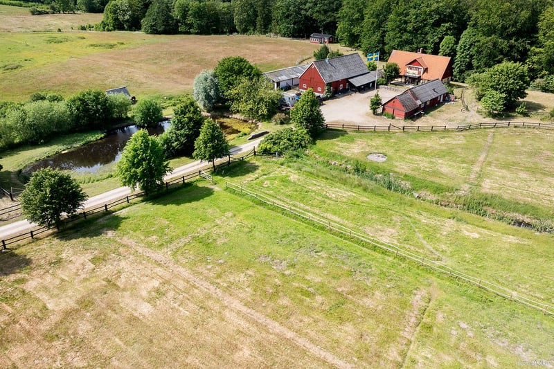 At the gateway to Österlen – one of Sweden’s most sought-after and scenic regions – lies Bäckolmen, an extraordinary equestrian estate that embodies dreams, quality of life, and endless possibilities. Just outside Brösarp, you will live surrounded by one of Sweden’s most beloved landscapes, where rolling heaths, vast nature reserves, and a profound sense of peace invite you to harmony and relaxation. Brösarp is the village where the landscape opens up – here, gentle hills, blossoming slopes, and the village’s small-scale charm meet with a vibrant array of farm shops, cafés, and local delicacies. With proximity to the salty waves of the sea and the golden sands of Haväng, surrounded by picturesque villages, beautiful hiking trails, and authentic culinary experiences, this location offers an unrivalled combination of breathtaking nature, vibrant culture, and a quality of life beyond the ordinary – perfect for those seeking a harmonious and inspiring place to call home. For hunting enthusiasts, Bäckolmen presents a rare opportunity. The property features an impressive deer enclosure, formerly used for hunting operations, with well-designed and well-maintained facilities – a unique and valuable asset for anyone wishing to realize their dream of a rural lifestyle where hunting, nature conservation, and wildlife management play a natural role in daily life. The estate comprises approx. 16 hectares of land and a well-kept 1,500 sqm plot – ideal for both professional equestrian activities and a countryside family lifestyle in beautiful surroundings. The modern, fully equipped stable offers 9 stalls, a spacious tack room, feed room, and practical wash area. In addition, there are two open barns, outdoor stalls, and a large shelter – perfect for breeding, with dedicated facilities for mares and foals. The property also hosts an established insemination station, operated by the renowned breeders at Stuteri K2, making the facility particularly attractive for those with ambitions in horse breeding and training. Everything is in place for you to immediately resume or further develop a professional operation in an inspiring and motivating environment. The residence was carefully and tastefully rebuilt in 2001 following a fire. Inside, you are welcomed by a warm, inviting home full of character, featuring an open-plan ground floor, a charming fireplace, and generous living areas that create a cosy and welcoming atmosphere – equally perfect for everyday life and festive occasions. Large windows provide sweeping views over the estate’s green pastures and the tranquil landscape – a place to truly live, be inspired, and enjoy all year round. Additionally, a separate, charming apartment and a cosy hunting cabin offer great flexibility – whether for rental, multi-generational living, housing for stable staff, or guest accommodation. Ideal for those wishing to combine rural living with income-generating opportunities, or simply to create space for family and friends in a beautiful and welcoming environment. A river meanders along the property boundary, leading to a private little island with a bridge – a magical setting for long summer evenings, peaceful mornings with coffee and birdsong, or memorable dinners under the open sky. The surroundings offer rich wildlife, untouched silence, and stunning views in every direction – a truly unique environment for peace, inspiration, and freedom. The Brösarp area and Drakamöllans väg 24 provide an irresistible combination of natural beauty, proximity to the sea, charming neighbouring villages, and a generous range of shops, restaurants, cafés, and accommodation. Here, you get the best of both worlds – rural idyll with close access to services, schools, playgrounds, shopping, culture, and excellent transport connections. This is a place equally suited for permanent living or recreation, where the apartment and hunting cabin can provide extra income – a place to create a life in harmony with nature, while still having everything you need within reach. Welcome to the viewing – simply search “Bäckolmen’s insemination station” in your GPS.