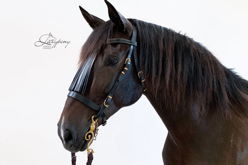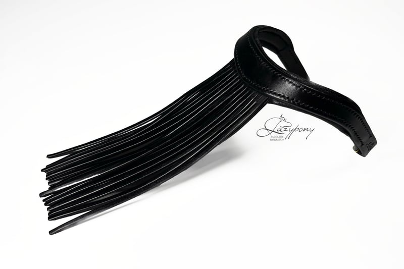 Elegante frontalera Vaquero confeccionada artesanalmente por el taller de talabartería Lazypony. Está confeccionado en suave cuero genuino y cosido a mano mediante técnicas tradicionales de talabartería. Esta acogedora y cómoda frontalera también está equipada con una almohadilla suave y decorada con un mosquero, un adorno tradicional y repelente de insectos. Beneficios: – Fabricada en cuero genuino española de primera calidad. – Cosido a mano utilizando técnicas tradicionales de talabartería. – Pintado a mano. ¡Cada artículo es único! – Hecho a mano en España! Stylish browband Vaquero handcrafted by the saddlery workshop Lazypony. It is made of soft genuine leather and hand-stitched using traditional saddlery techniques. This cozy and comfortable browband is also equipped with a soft pad and decorated with a mosquero – a traditional decoration and insect repellent. Benefits: – Made of top quality Spanish natural leather; – Hand stitched using traditional saddlery techniques; – Hand painted. Every browband is unique! – Quality handcrafted in Spain.