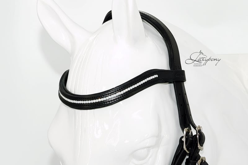 Frontalera Crystal Lazypony White Opal con acolchado suave. Esta frontalera de cuero con forma ondulada, decorada con cristales Preciosa, está hecha de cuero natural de primera calidad: suave pero resistente. Los elegantes cristales color White Opal le quedan bien a cualquier caballo y se verán increíbles tanto en la pista de concurso como en casa. Utilizamos cristales Preciosa, una de las marcas de cristales más reconocidas del mundo, conocida por su calidad excepcional y sus colores impresionantes. Esta frontalera de cristales hecha a medida está cuidadosamente cosida a mano con técnicas tradicionales de guarnicionería, lo que la hace increíblemente fuerte y duradera. ¡La Frontalera Crystal Lazypony también es un regalo ecuestre perfecto! ⭐ ¡Cualquier talla que necesites! ¡También a medida! ⭐ ¡Gran variedad de colores de cuero, relleno e hilos! ⭐ ¡Hecho a mano con cuero natural suave y macizo! _________________ Crystal Browband Lazypony White Opal with soft padding. This wave leather horse bling browband with preciosa crystals is made of soft and solid natural top-quality leather. Elegant White Opal color crystals suits every horse and will look amazing both in the show and at home! Preciosa crystals we use for this browband are one of the world’s most renowned crystals known for exceptional quality and stunning colors. Custom crystal browband Lazypony made of strong, soft and durable solid natural leather – is will last you for many years! We carefully hand-stitch it using traditional saddlery techniques – it is incredibly strong and durable. Crystal Browband Lazypony also makes a perfect equestrian gift! ⭐ Any size you need! Incl. made-to-measure! ⭐ A lot of leather/padding/threads colors! ⭐ Handmade of soft solid natural leather!