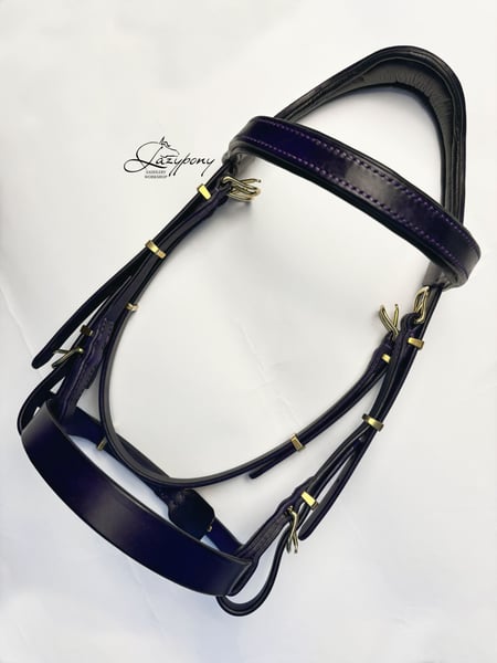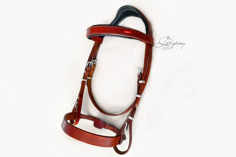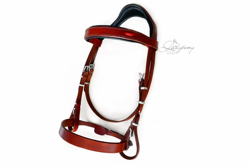 Cabezada anatómica Ranger hecha a mano por el taller de talabartería Lazypony. Esta cabezada de cuero está hecha de suave cuero genuino y cosida a mano utilizando técnicas tradicionales de talabartería. Este bonito artículo tiene la testera de forma anatómica y acolchada para mayor comodidad y estilo. La frontalera también está equipada con una almohadilla suave y decorada con un inserto en contraste. Esta cabezada inglesa es ideal para montar a diario. ¡Además, quedará genial en concursos, sesiones de fotos y espectáculos! El hardware de alta calidad es duradero y resistente a la corrosión. ¡Esta brida de cuero para caballo te servirá durante muchos años! Beneficios: – Fabricada en cuero genuino española de primera calidad. – Cosido a mano utilizando técnicas tradicionales de talabartería. – Herrajes de alta calidad: elegantes, resistentes y duraderos. – Pintado a mano. ¡Cada artículo es único! – Hecho a mano en España! Se puede fabricar como cabezada sin bocada. ¿Interesado? ¡Escríbenos para más detalles! Anatomical bridle Ranger handmade from the saddlery workshop Lazypony. This leather horse bridle is made of soft genuine leather and hand-stitched using traditional saddlery techniques. The wide anatomical headpiece has a soft pad for the comfort of your horse. The browband is also equipped with a soft pad and decorated with a contrasting insert. This bridle is great for daily riding and hacking. In addition, it will look great at competitions, photo shoots and shows! The top-quality hardware is durable and resistant to corrosion. This leather horse bridle will serve you for many years! Benefits: – Made of top quality Spanish genuine leather; – Hand stitched using traditional saddlery techniques; – High-quality hardware: elegant, strong and durable; – Hand painted. Each bridle is unique! – Quality handcrafted in Spain Can be made as bitless bridle. Interested? Write us for details!