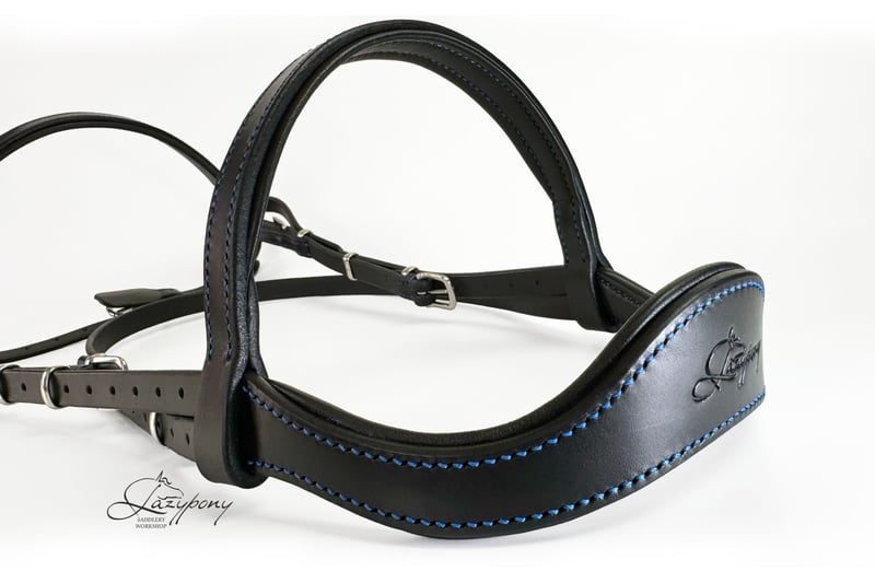 Cabezada artesanal Working Equitation del taller de talabartería Lazypony. Elaborado en auténtica cuero española de primera calidad y cuidadosamente cosido a mano mediante técnicas tradicionales de talabartería. El hardware es elegante, resistente y duradero. Esta hermosa brida de cuero tiene tiene la testera de forma anatómica y acolchada para mayor comodidad y estilo. En la muserola se cosen anillos para sujetar las riendas. ¡Esta hermosa cabezada de cuero es perfecta para el entrenamiento de doma clásica, paseos diarios, así como sesiones de fotos y espectáculos! Beneficios: – Fabricada en cuero genuino española de primera calidad. – Cosido a mano utilizando técnicas tradicionales de talabartería. – Herrajes de alta calidad: elegantes, resistentes y duraderos. – Pintado a mano. ¡Cada artículo es único! – Hecho a mano en España! Se puede fabricar como cabezada sin bocada. ¿Interesado? ¡Escríbenos para más detalles! Functional handcrafted bridle Working Equitation from saddlery workshop Lazypony. Made of top-quality genuine Spanish leather and carefully hand-stitched using traditional saddlery techniques. The hardware is elegant, strong and durable. This beautiful leather bridle has anatomic shaped and padded headpiece for comfort and style. Rings are sewn into the noseband here for attaching the reins. This beautiful leather bridle is perfect for classical dressage training, everyday ride, as well as photo sessions and shows! Benefits: – Made of top quality soft natural leather; – Hand stitched using traditional saddlery techniques; – High-quality hardware: elegant, strong and durable; – Hand painted. Each bridle is unique! – Quality handcrafted in Spain. Can be made as bitless bridle. Interested? Write us for details!