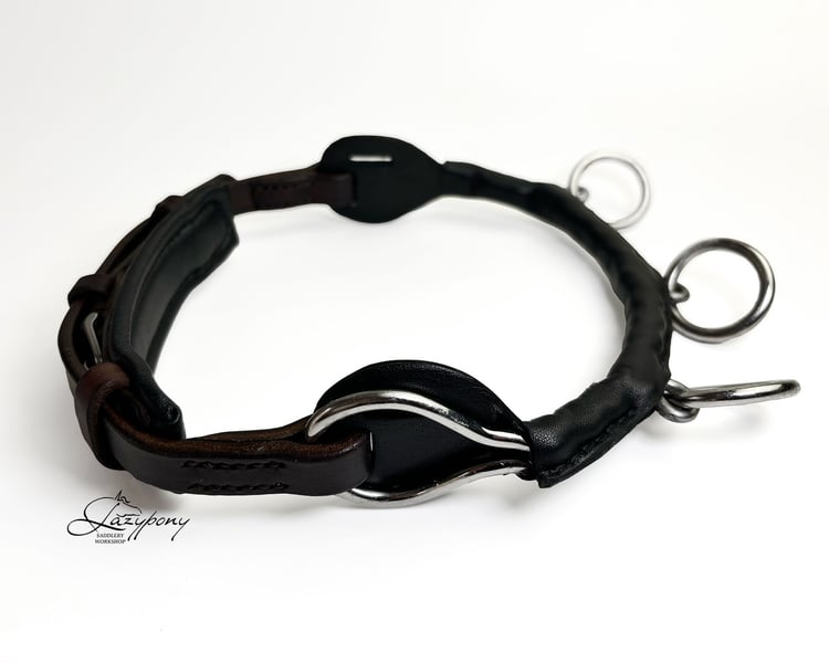 Muserola serreta elegante con cadena Lazypony para trabajos pie a tierra y equitación. Esta muserola serreta con cadena está fabricada en cuero genuino de primera calidad y cuidadosamente cosida a mano utilizando técnicas tradicionales de talabartería. Esta muserola Lazypony es compatible con muchos tipos de serretas y cabezadas. ¡Se ve exclusivo y a la moda! Hecho a mano por el taller de talabartería Lazypony. Beneficios: – Fabricada en cuero genuino española de primera calidad: – Cosido a mano utilizando técnicas tradicionales de talabartería: – Herrajes de latón/acero inoxidable de alta calidad: elegantes, resistentes y duraderos: – Pintado a mano. ¡Cada artículo es único! – Hecho a mano en España! Elegant noseband with chain Lazypony for groundwork, lunging and riding. This cavesson noseband with chain manufactured of top-quality genuine leather and carefully hand-stitched using traditional saddlery techniques. This noseband Lazypony compatible with many types of cavessons and bridles. It looks exclusive and fashionable! Handmade by saddlery workshop Lazypony. Benefits: – Made of top-quality Spanish genuine leather; – Hand stitched using traditional saddlery techniques. Durable and long-lasting; – High-quality stainless steel\ brass hardware: elegant, strong and durable; – Quality handcrafted in Spain.