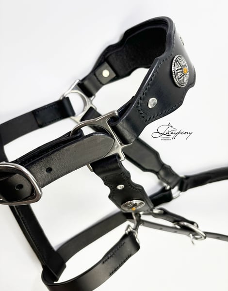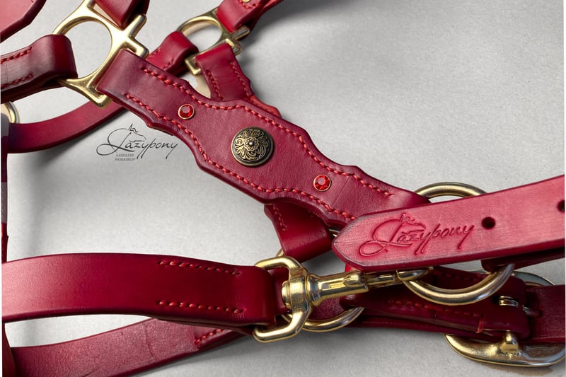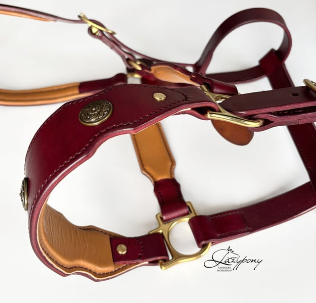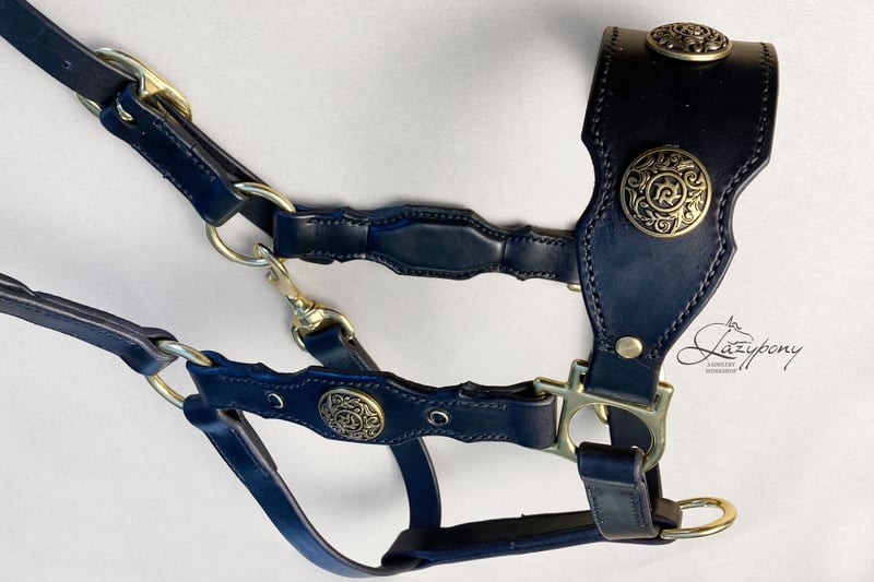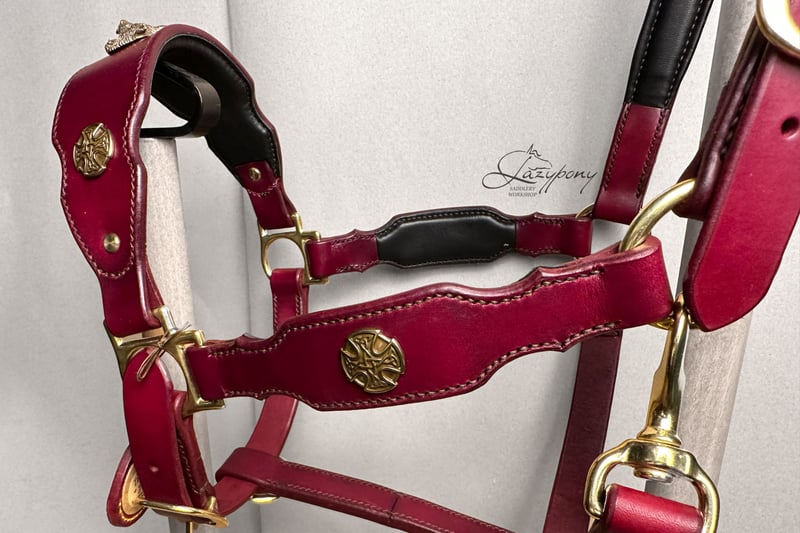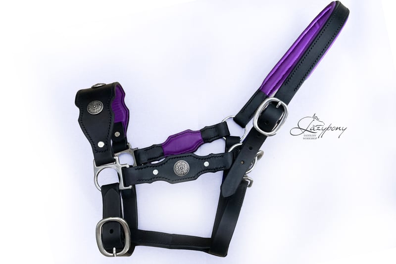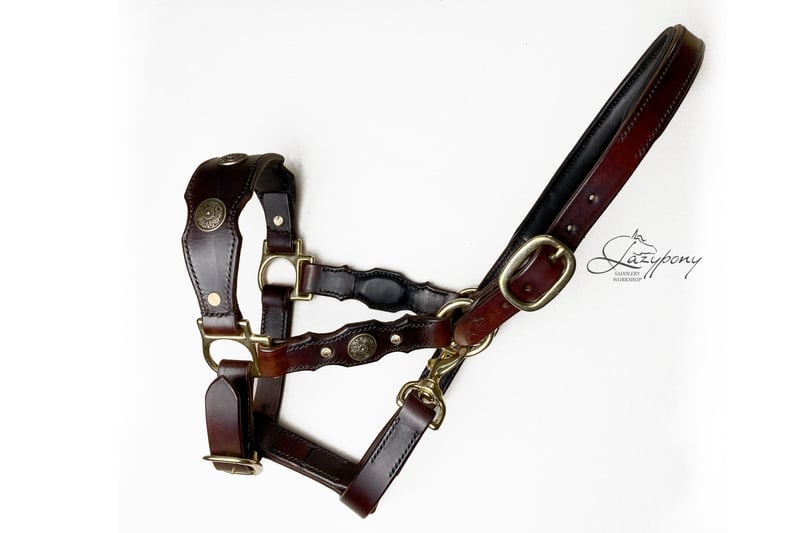 Cabezada cuadra Barroca Lazypony para caballos. Esta cabezada de cuero hecho a mano Lazypony decorado con elegante concho y remaches. Tiene una testera, muserola y carrilleras acolchados suaves para la comodidad de su caballo. La cabezada Barroca Lazypony está fabricado en cuero auténtica de primera calidad y cuidadosamente cosido a mano utilizando técnicas tradicionales de talabartería. ¡El diseño único resaltará la belleza de su caballo! ¿Te gustas las artículos barrocas para caballo? Taller de talabartería Lazypony puede fabricar un juego completo las artículos barrocas para tu caballo! Beneficios: – Fabricada en cuero natural español suave y duradero de primera calidad; – Herrajes de acero inoxidable/latón de alta calidad: elegantes, resistentes y duraderos; – Cosido a mano utilizando técnicas tradicionales de talabartería; – Ajustable en nariz y garganta; – Pintado a mano. ¡Cada cabezada de cuadra es única! – Calidad elaborada artesanalmente en España. Handcrafted leather baroque horse halter Lazypony decorated with elegant concho and rivets. It has a soft padded headpiece, noseband and cheekpieces for comfort of your horse. The halter manufactured of top-quality saddle leather and carefully hand-stitched using traditional saddlery techniques. Unique design of the item with will emphasize beauty of your horse! Any size you need! A lot of colors! Do you like baroque tack? Lazypony saddlery workshop Lazypony can make a full set of baroque tack for your horse! Benefits: – Made of top quality Spanish saddle leather – High-quality stainless steel\brass hardware: elegant, strong and durable – Hand stitched using traditional saddlery techniques – Adjustable at nose and throat – Hand painted. Each halter is unique! – Quality handcrafted in Spain