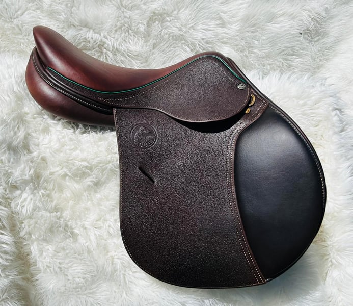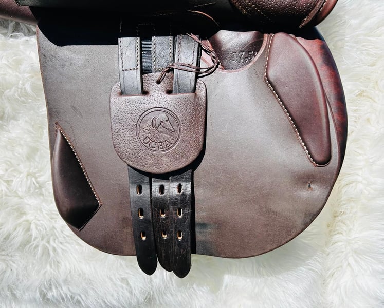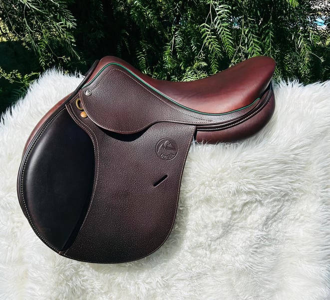 Vendo una silla de salto Ucha con poco uso, hecha de cuero argentino. Estas sillas impresionan por su alta calidad y cumplen con los más altos estándares. http://ucha-saettel.de/about-us/ Cualquiera que conozca Ucha sabe de su excepcional calidad y su magnífica artesanía. De color marrón. La silla está en perfecto estado. Nunca ha saltado, solo se ha montado brevemente al paso y al trote. 17,5 , Deflector mediano; el sillín puede ser instalado en frío por un talabartero. Los paneles del sillín son de estilo francés. Las fotos muestran el estado actual. Precio negociable. Excepto errores. No se admiten devoluciones ni cambios. Se aplican gastos de envío y se ofrece seguro previa solicitud.